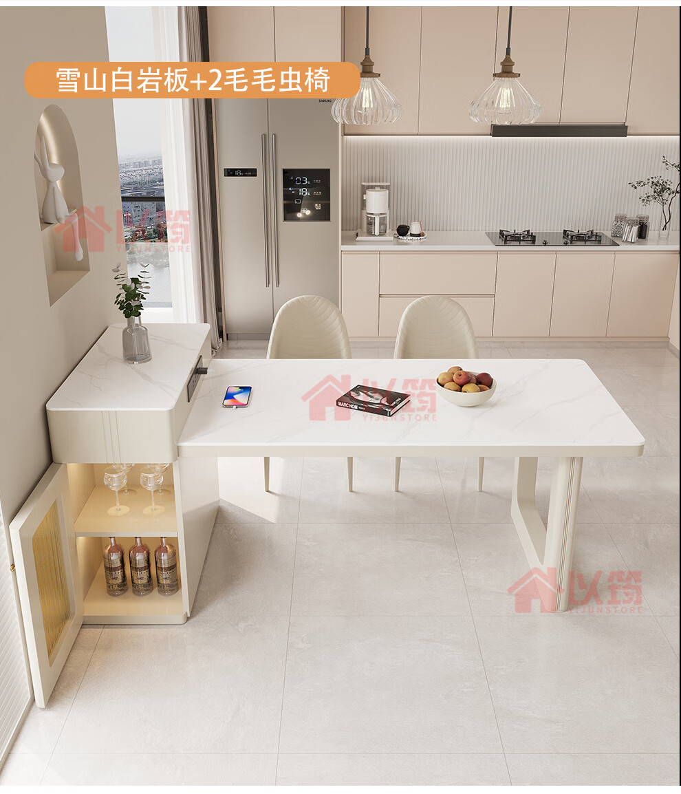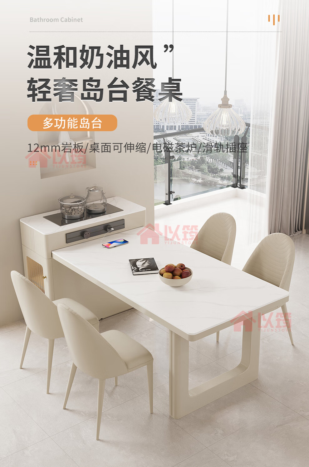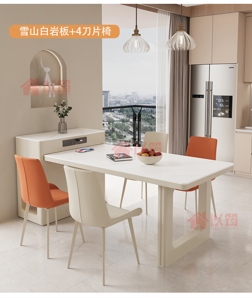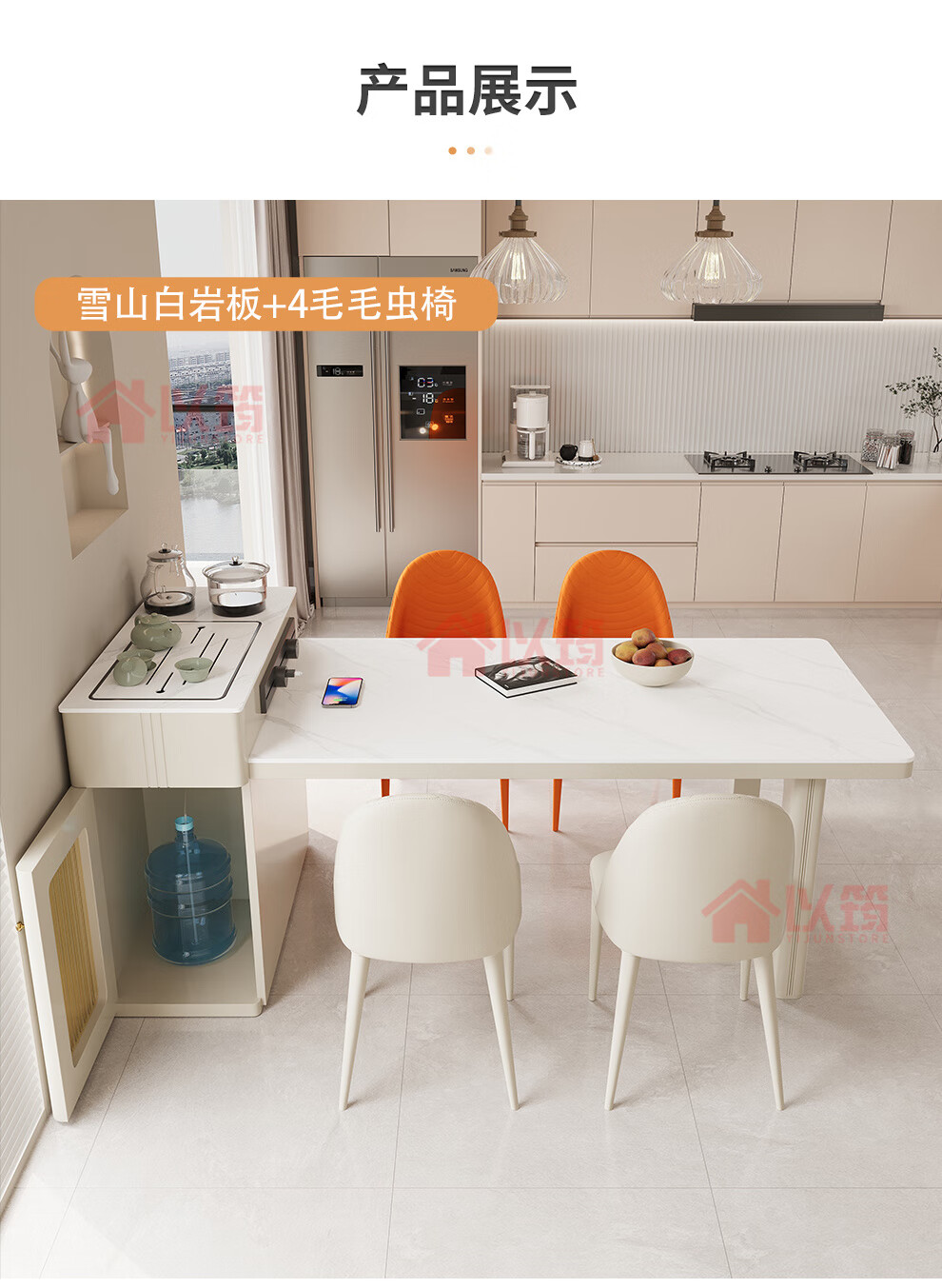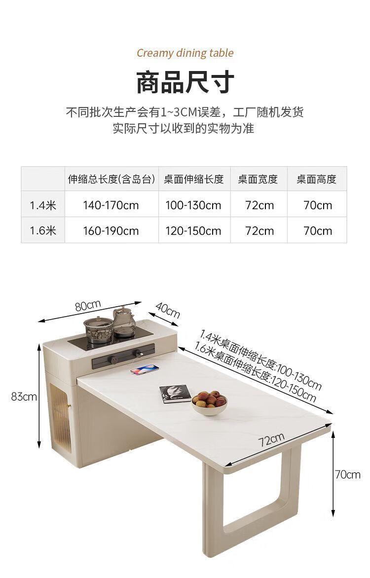 Jun cream-style slate island dining table integrated retractable small-sized dining table high-end home light luxury restaurant center table two-hole electric tea stove + tea tray type - fixed socket 1.4 meters one table 4 chairs caterpillar chair