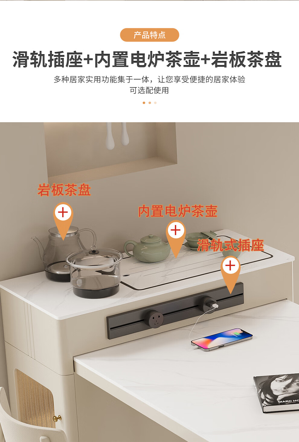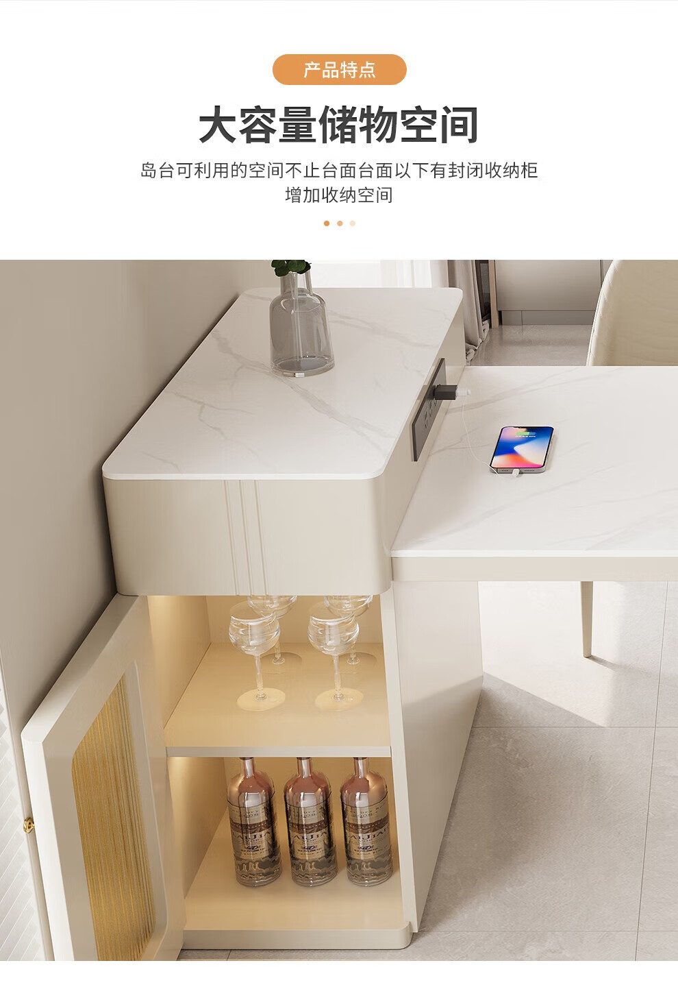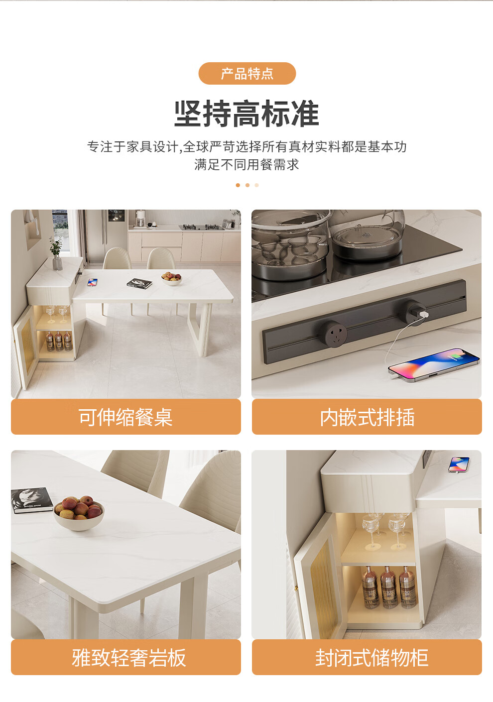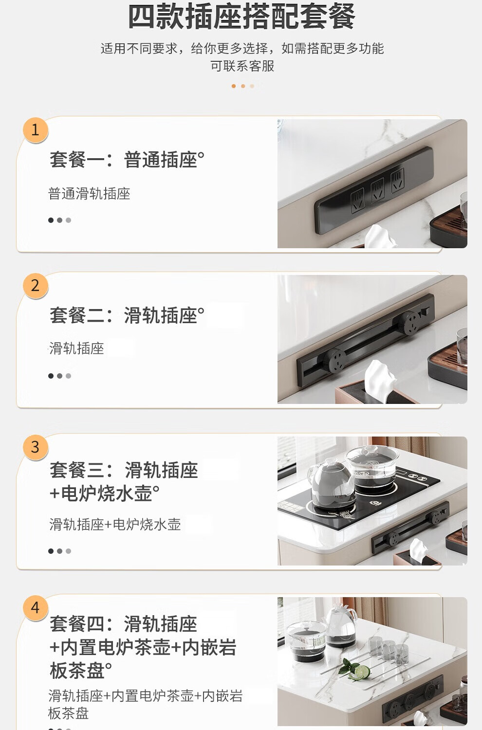 Jun cream-style slate island dining table integrated retractable small-sized dining table high-end home light luxury restaurant center table two-hole electric tea stove + tea tray type - fixed socket 1.4 meters one table 4 chairs caterpillar chair
