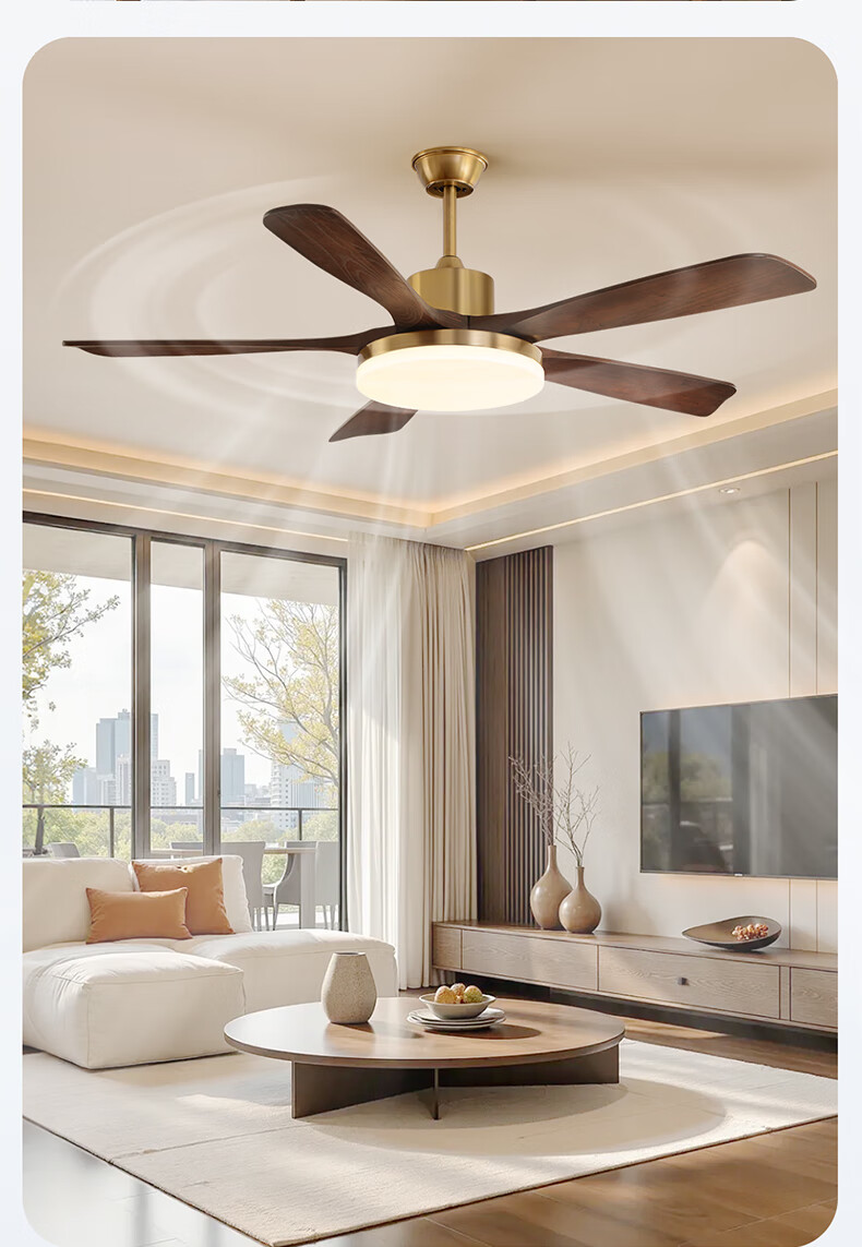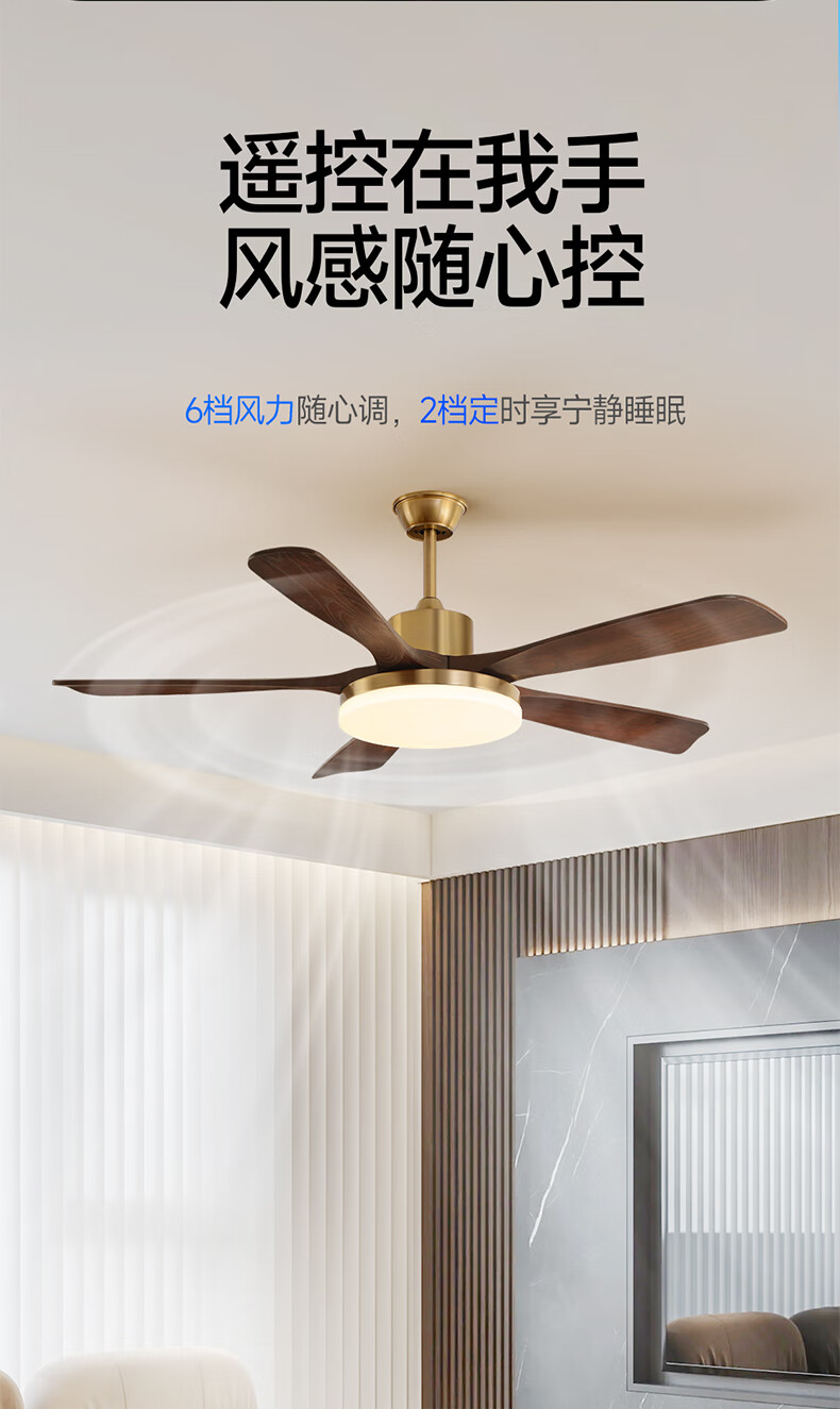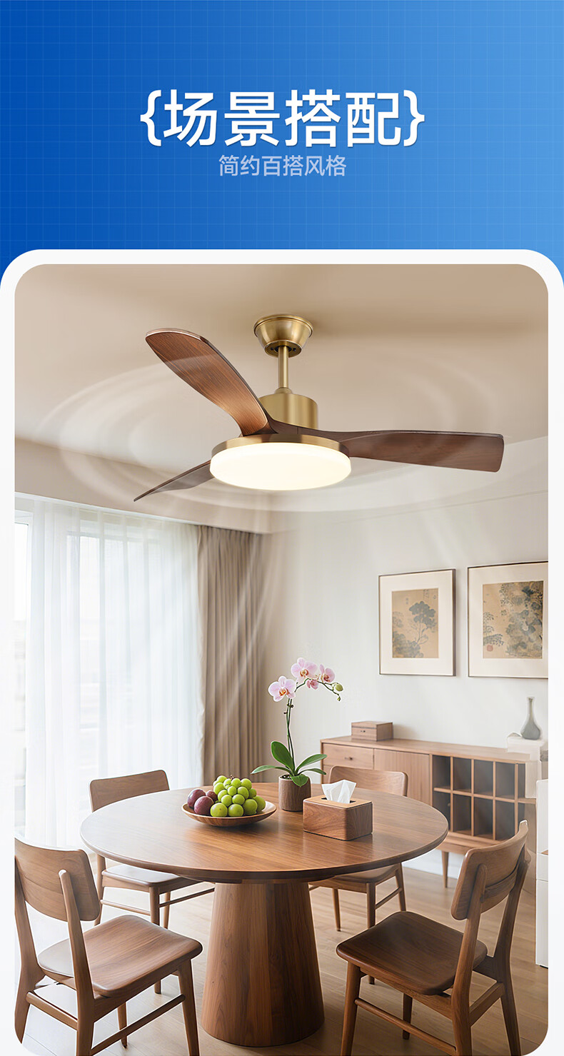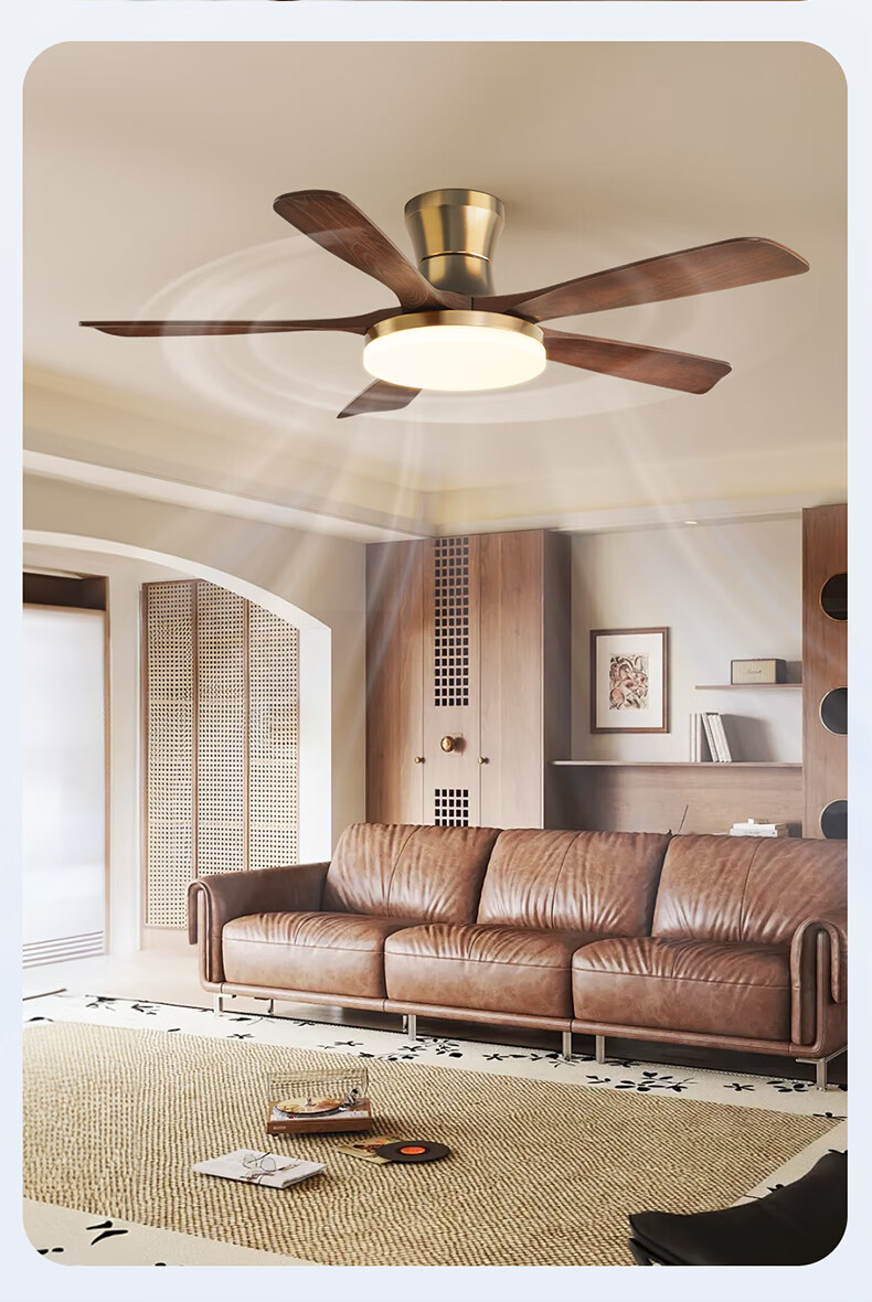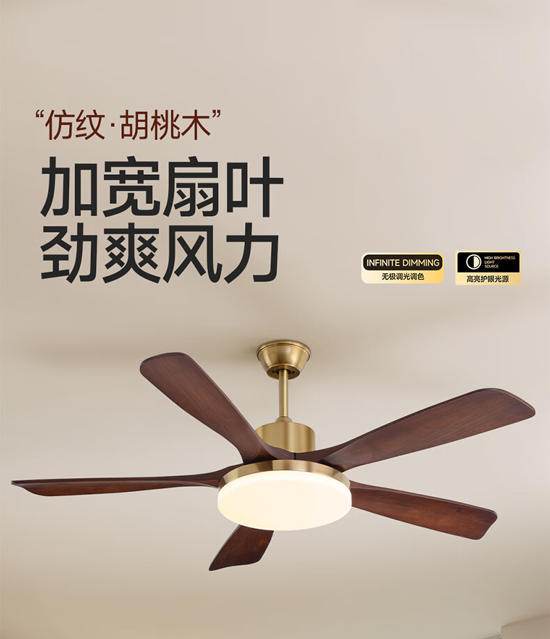 HP medieval fan lamp 2025 new style atmospheric retro ceiling fan lamp living room and dining room walnut color fan chandelier with light Level 1 energy efficiency - 3 leaves 36 inches - stepless dimming