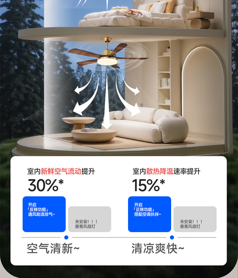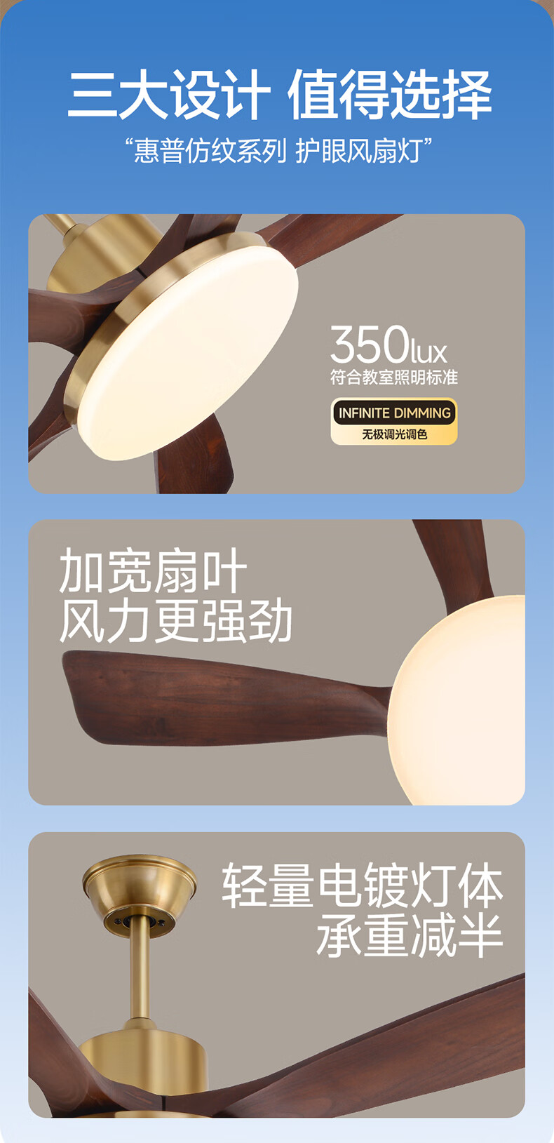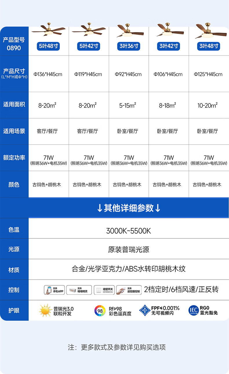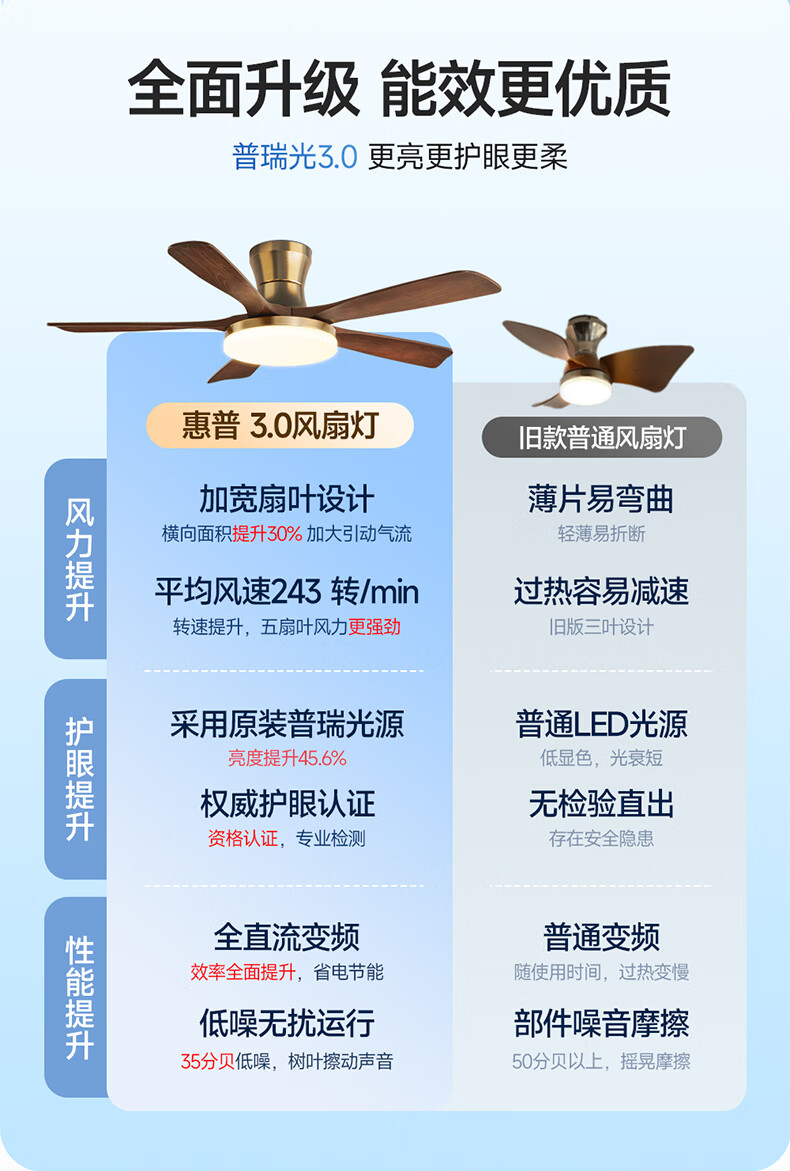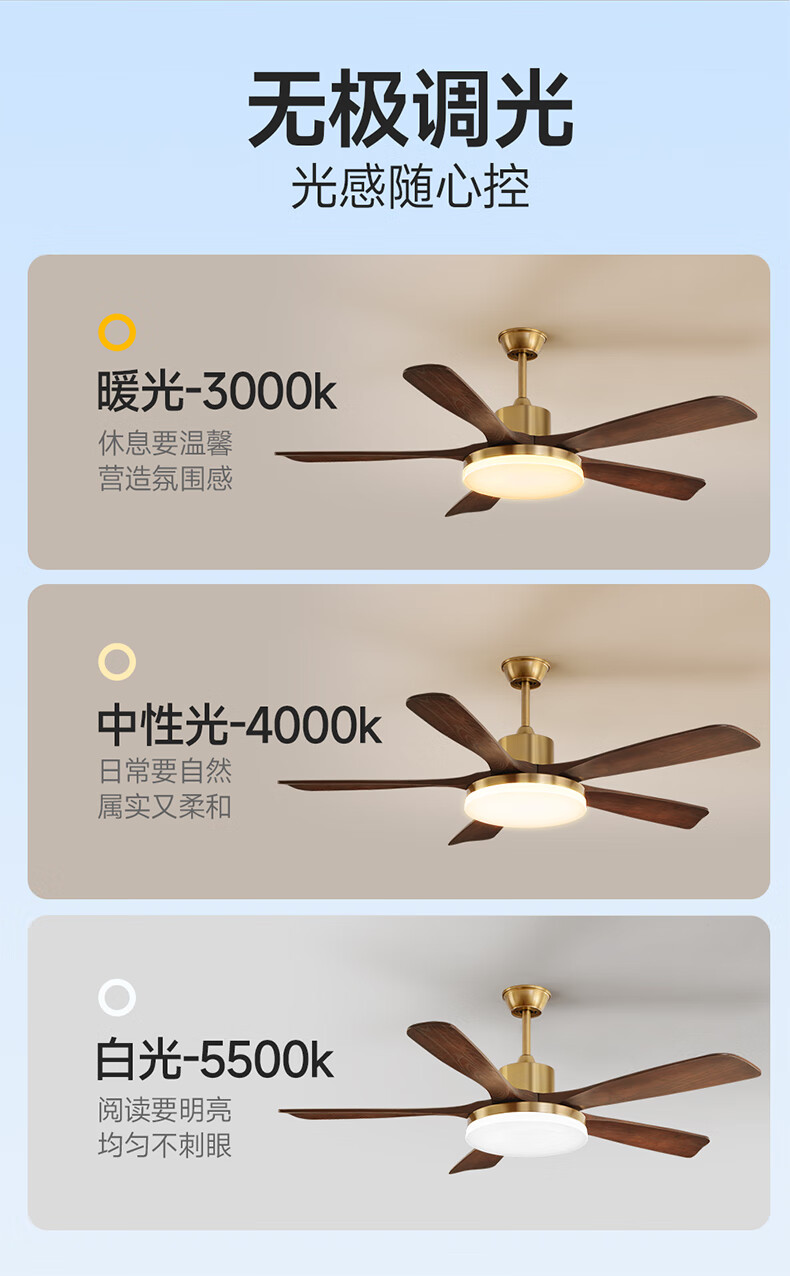 HP medieval fan lamp 2025 new style atmospheric retro ceiling fan lamp living room and dining room walnut color fan chandelier with light Level 1 energy efficiency - 3 leaves 36 inches - stepless dimming