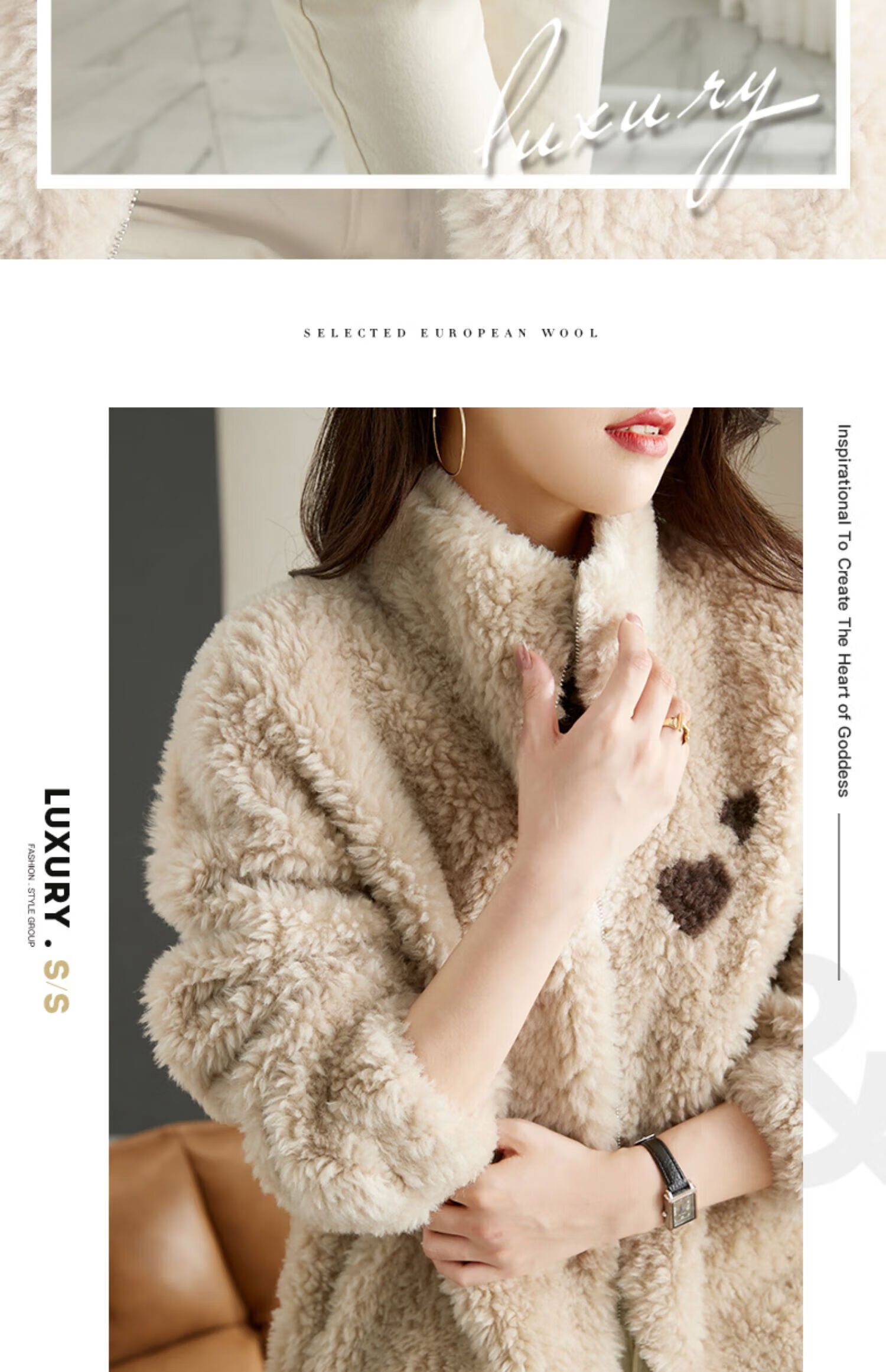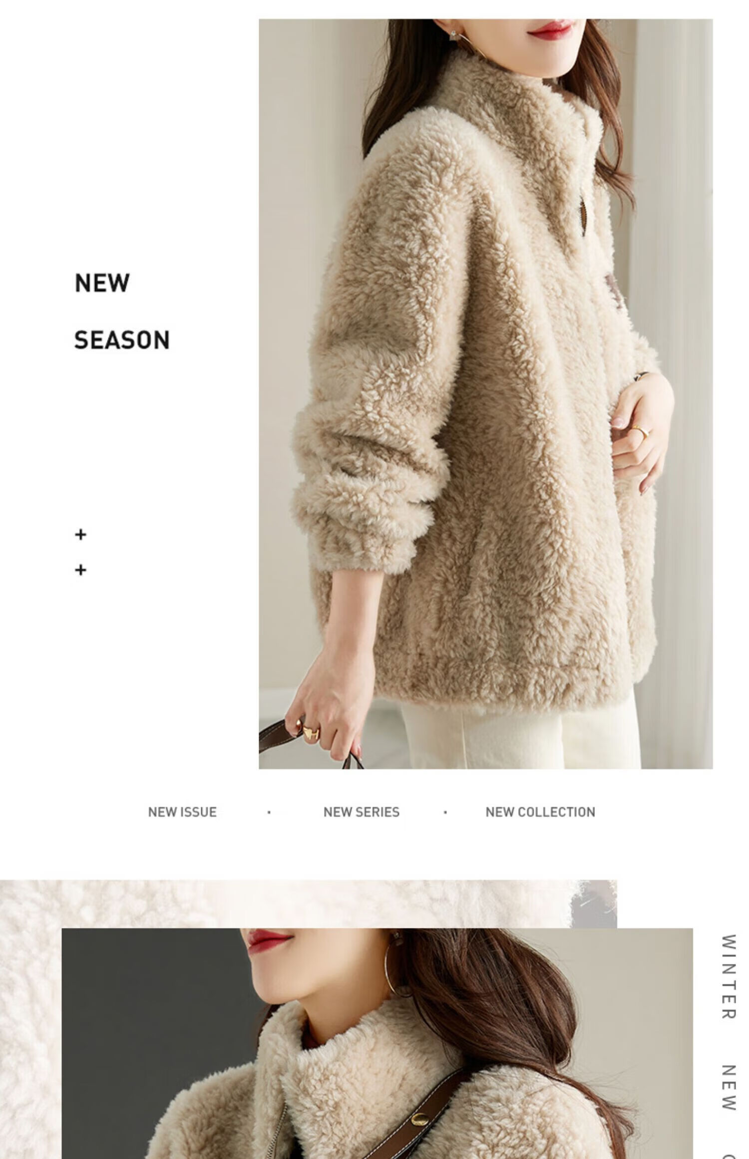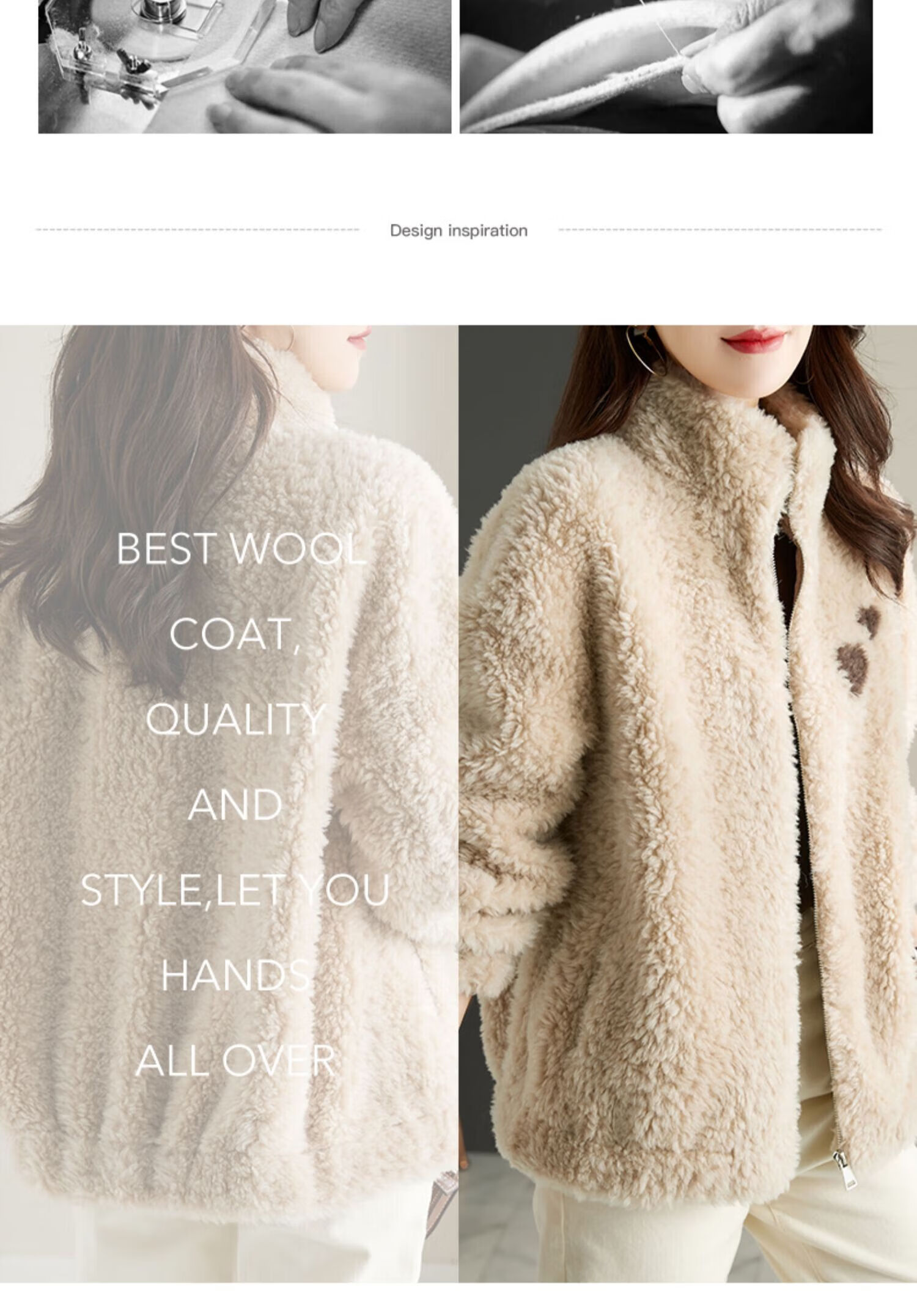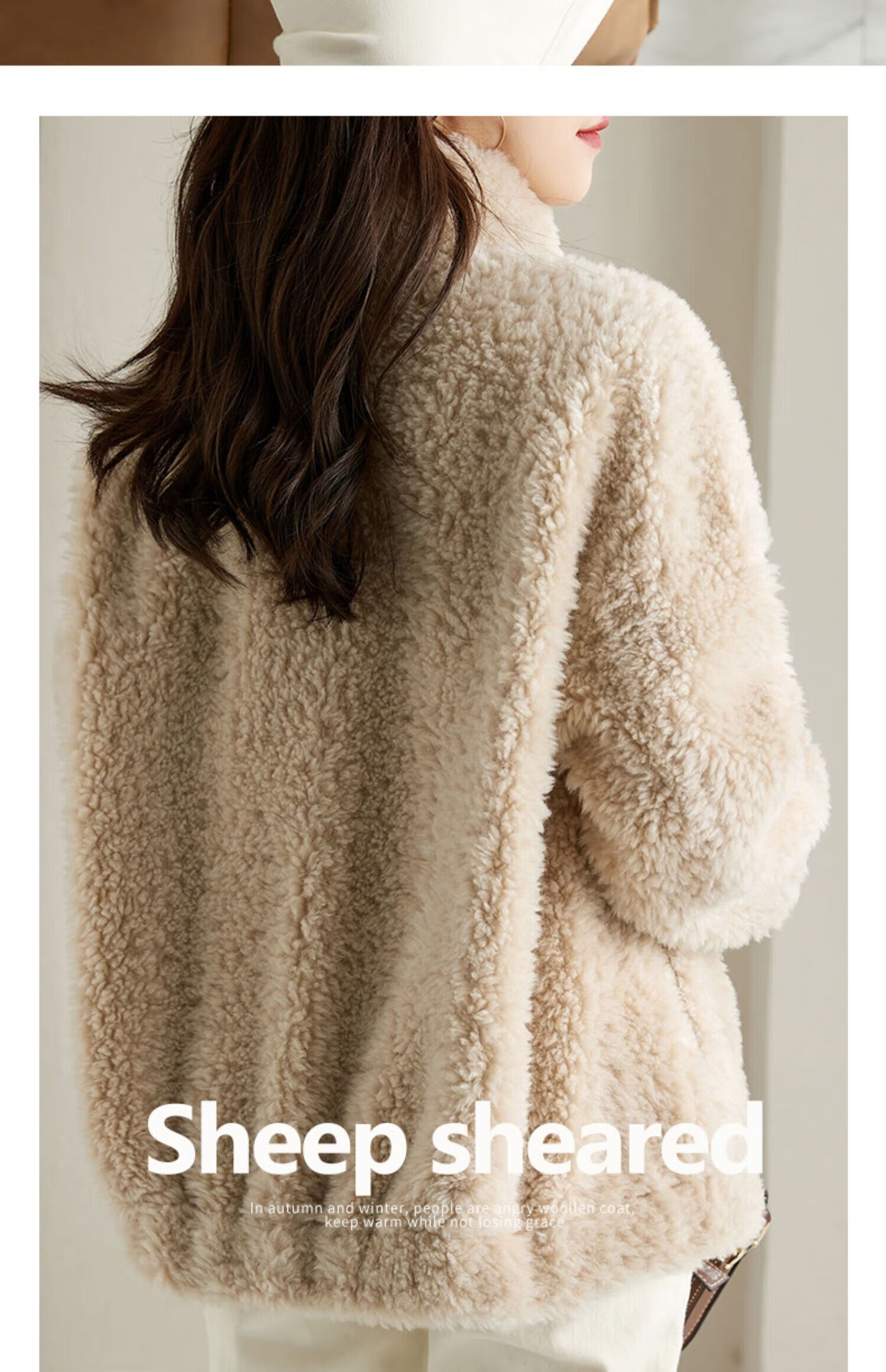 Ehangy light luxury brand regular coat for women 2025 winter new temperament commuter turtleneck lamb wool coat tribute beige S (90-110Jin Jin equals 0.5 kg)