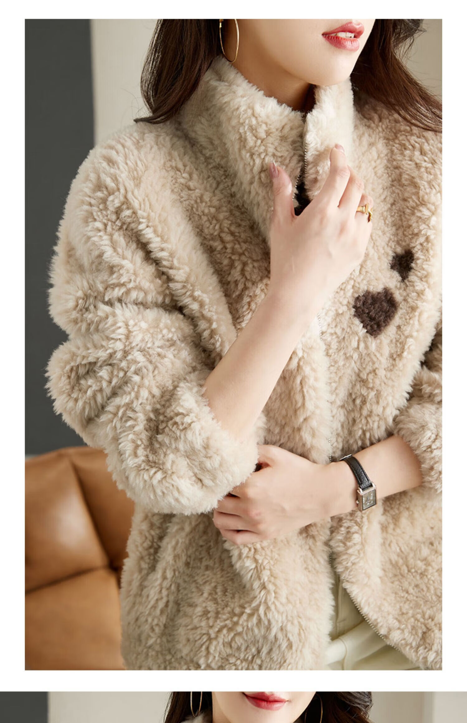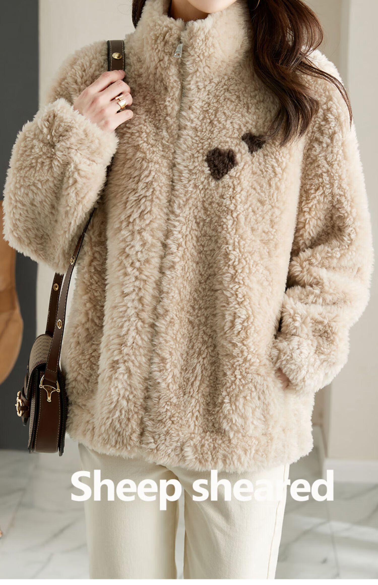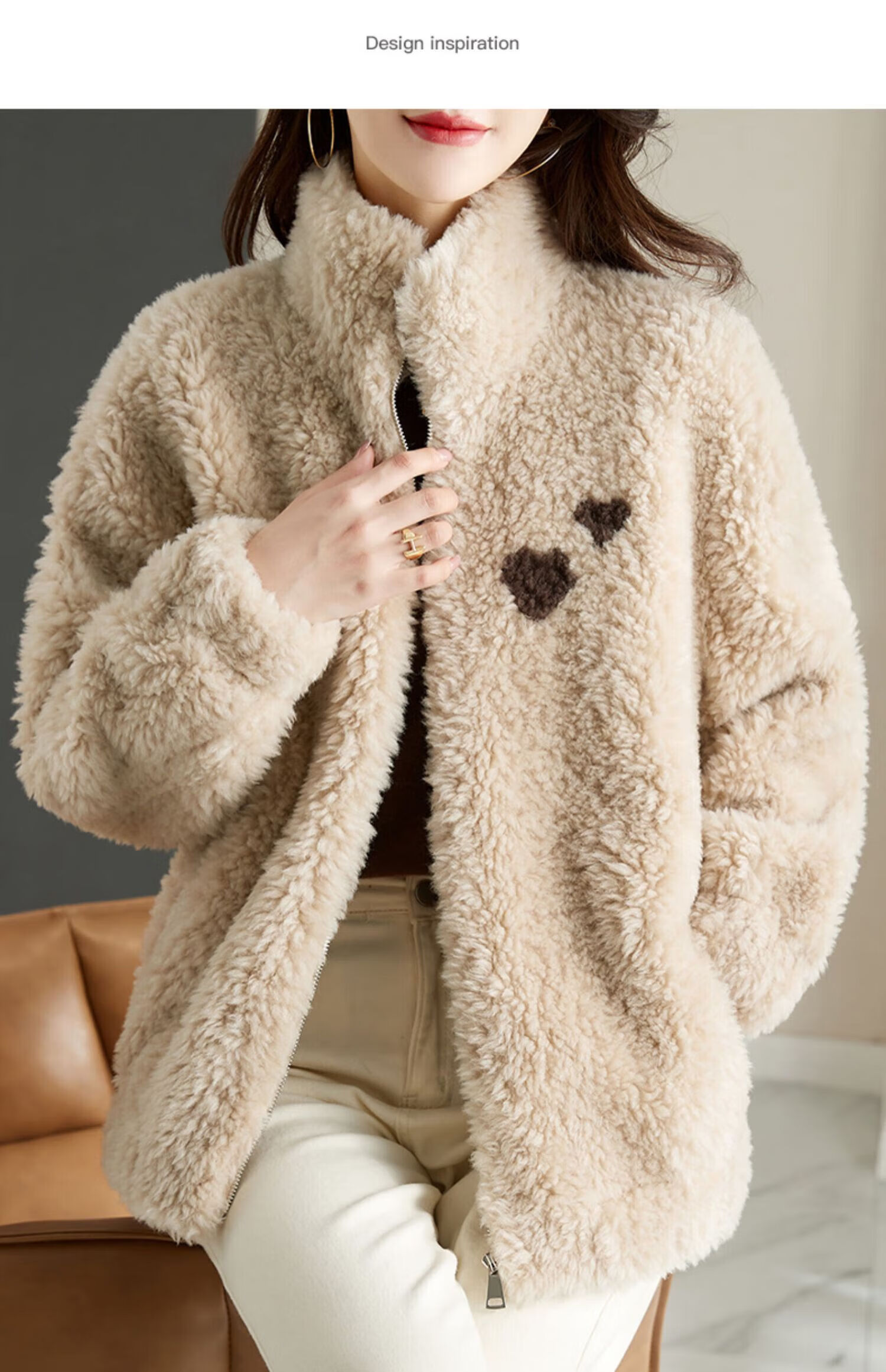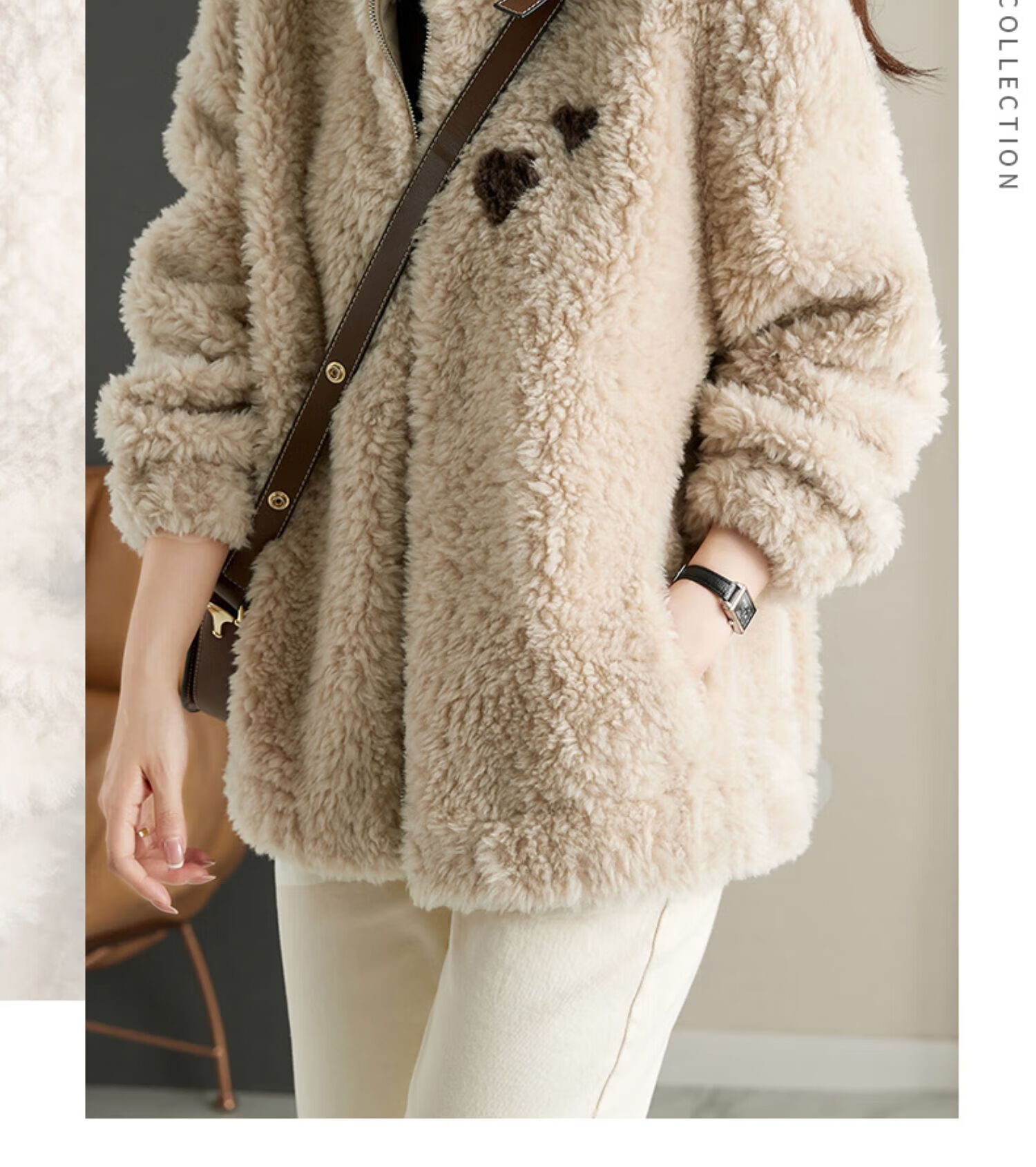 Ehangy light luxury brand regular coat for women 2025 winter new temperament commuter turtleneck lamb wool coat tribute beige S (90-110Jin Jin equals 0.5 kg)