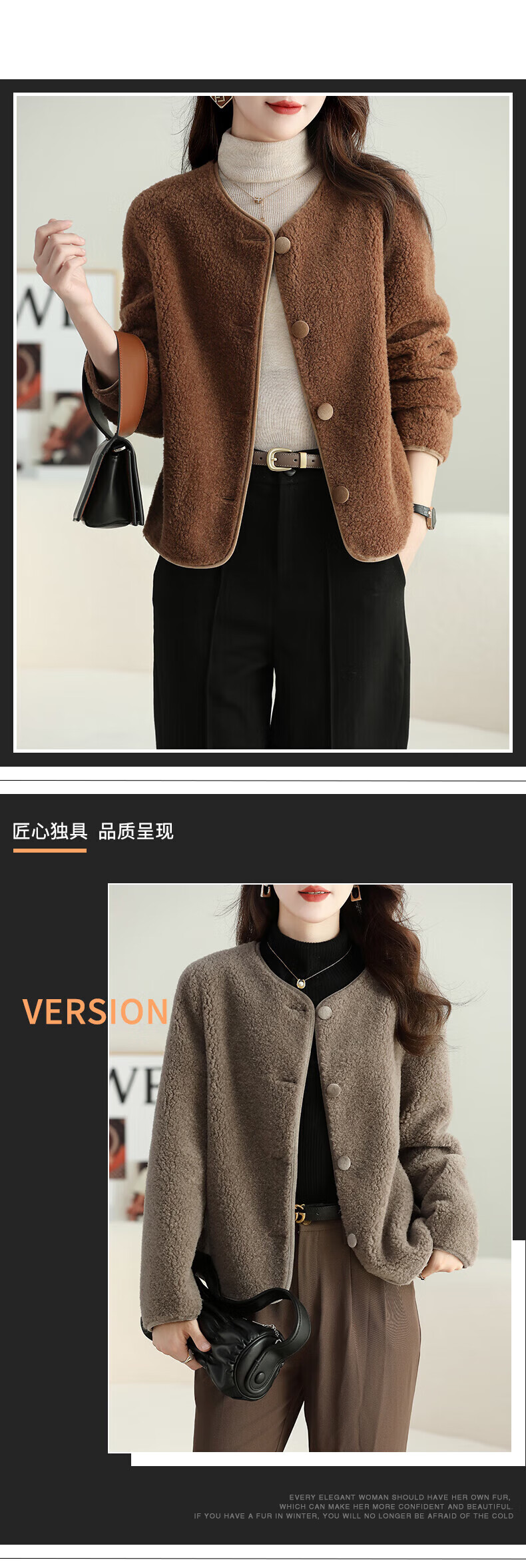 Ehangy Light Luxury Brand Short Coat Women's 2025 Winter New Style Elegant Lamb Wool Jacket Brown XS 80-99Jin Jin is equal to about 0.5 kg