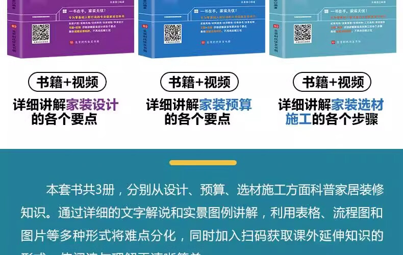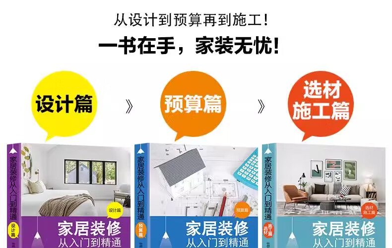 A complete set of 3 books on home decoration from beginner to proficient. Home decoration design chapter on budget construction and material selection. Interior soft decoration design book and home decoration tutorial book. A complete book on room decoration style and whole house customized home design. A complete set of three volumes on home decoration from beginner to master (special price)