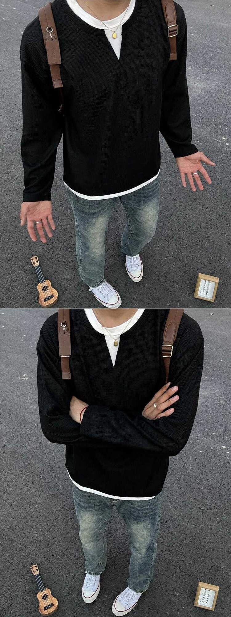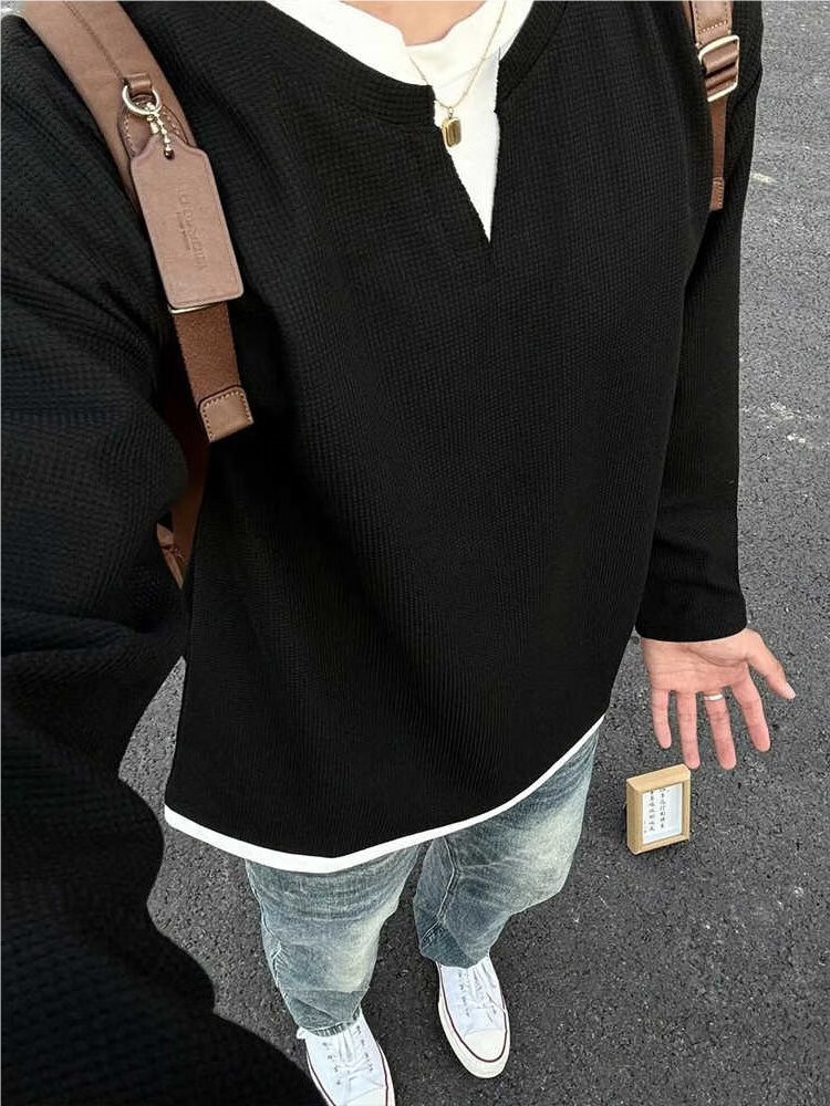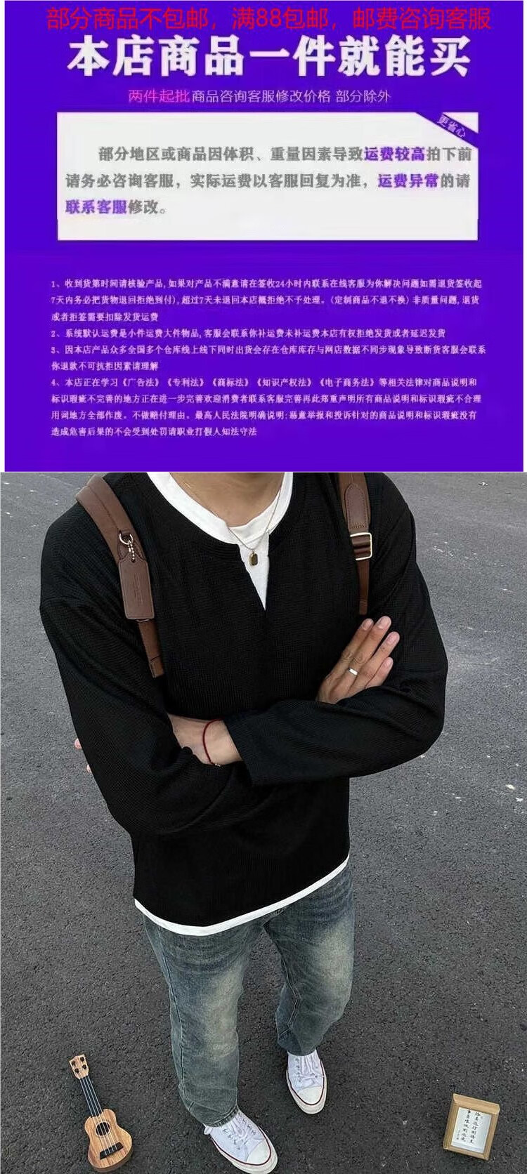 Ziweiqi collar long-sleeved shirt men's spring and autumn waffle base sweatshirt Henry shirt black 3XL 200-250Jin Jin equals 0.5 kg