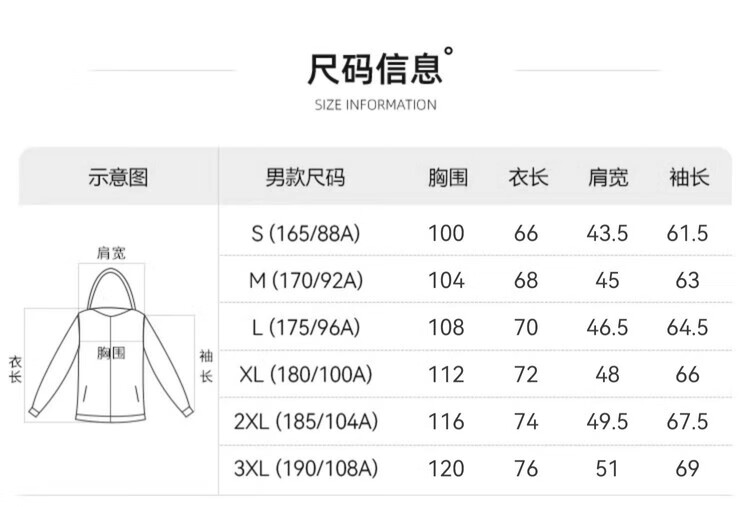 China (cm) 165 / 88-90 170 / 96-98 175 / 108-110 180 / 118-122 185 / 126-130