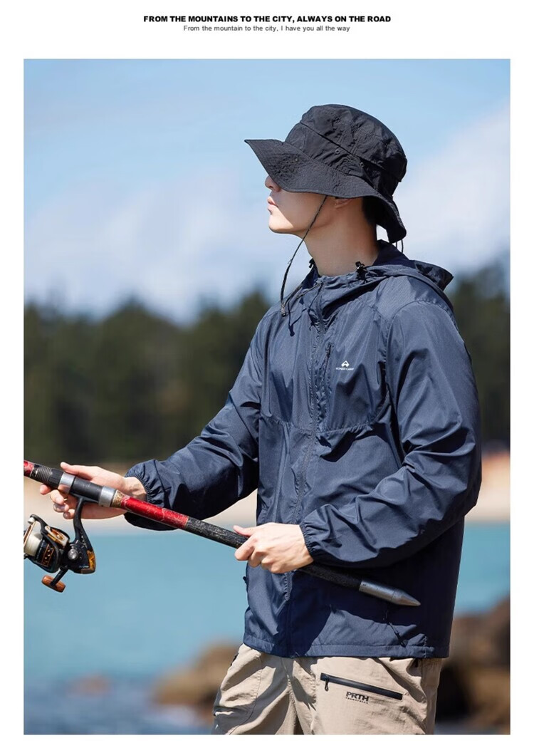 Pathfinder Summer Fishing Sun Protection Clothing Outdoor Men's Sun Protection Clothing Mountaineering Skin Clothing Ice Feel Breathable Anti-UV Men's Style - Mist Blue 2XL