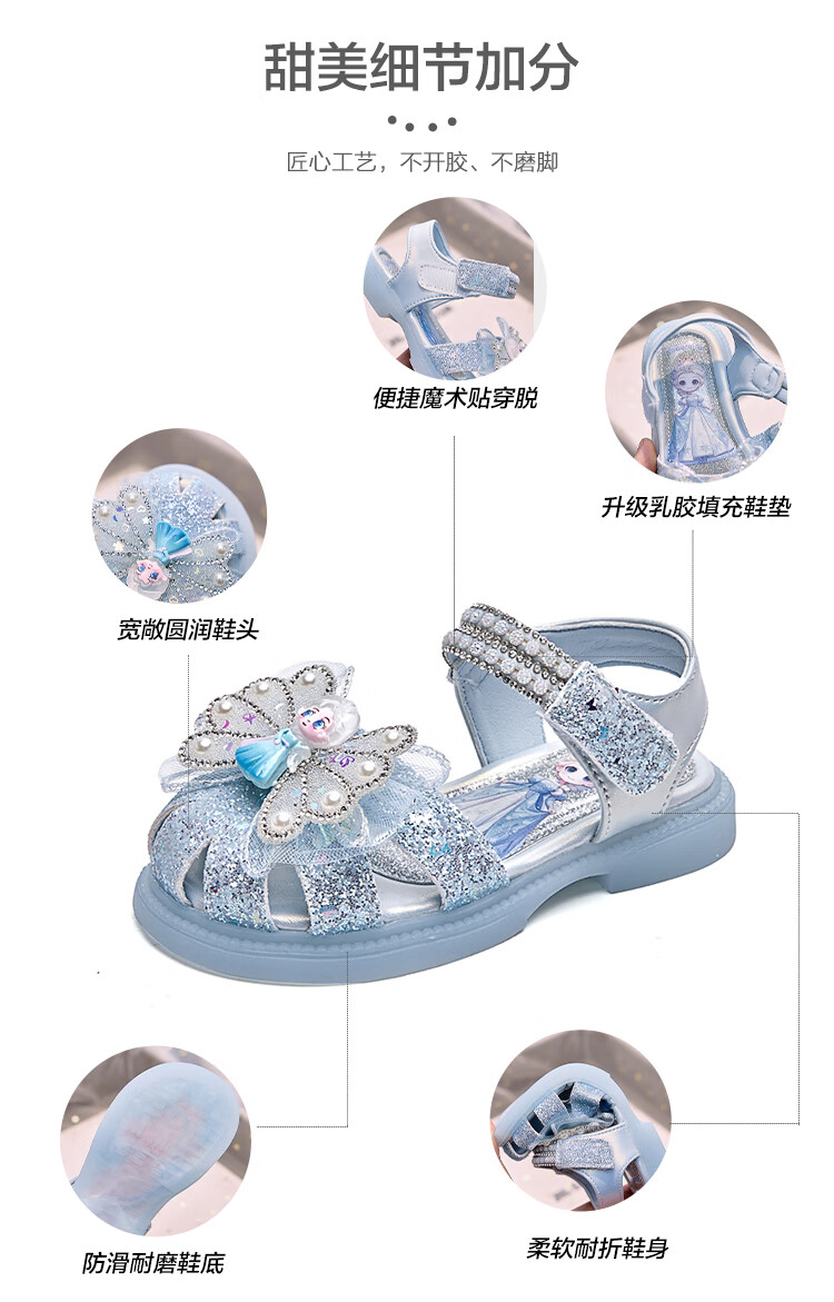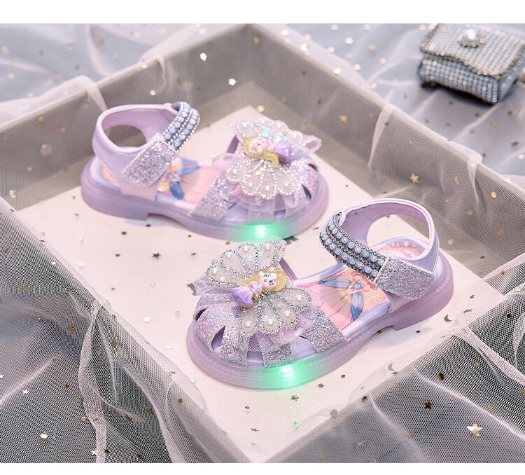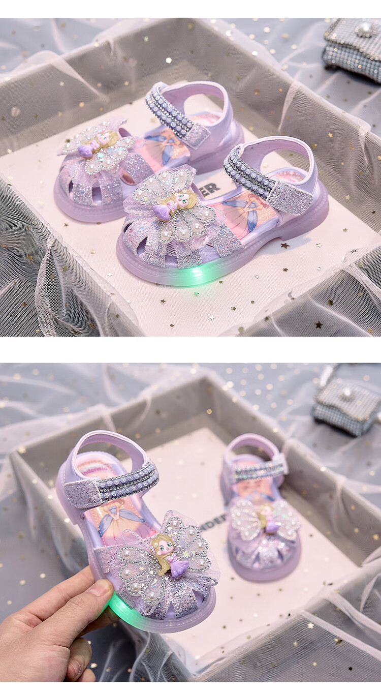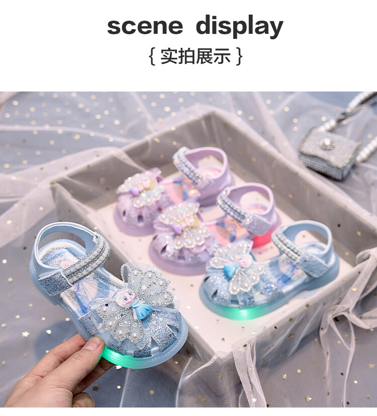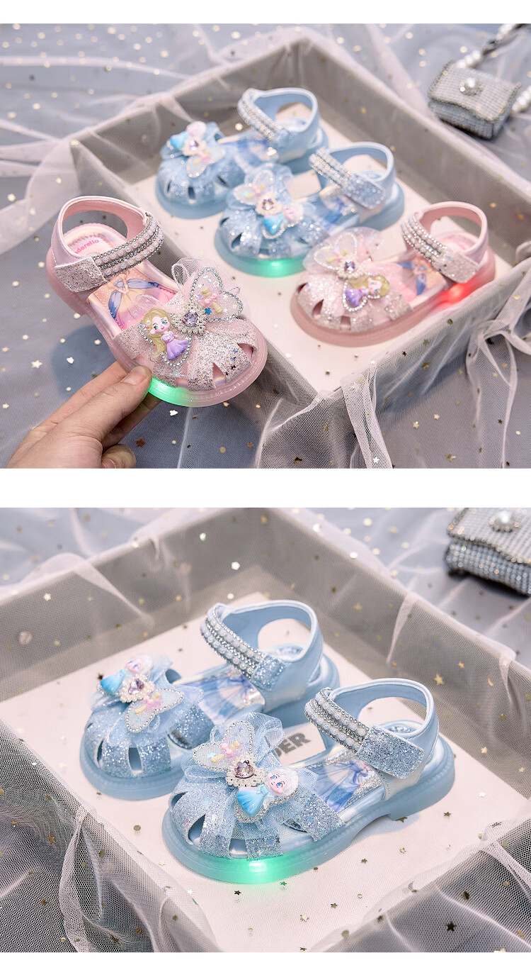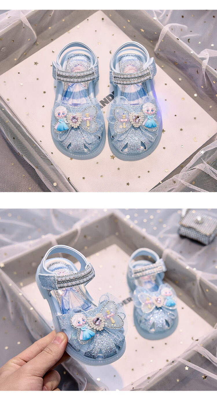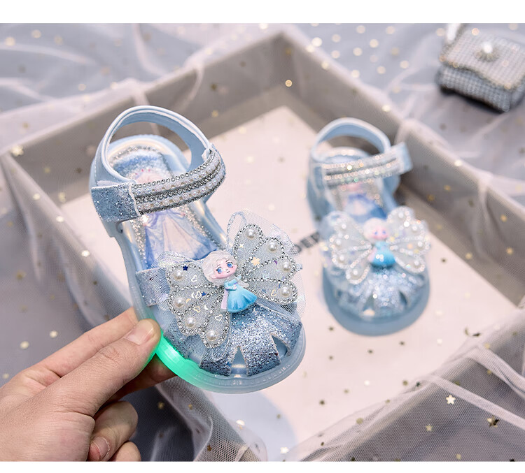 JIEMIEN Lighted Baotou Girls Sandals Crystal Shoes 2025 Summer New Elsa Princess Shoes Soft Sole Anti-Slip Baby Shoes D28. Blue 27 Shoe Inner Length 16.9CM