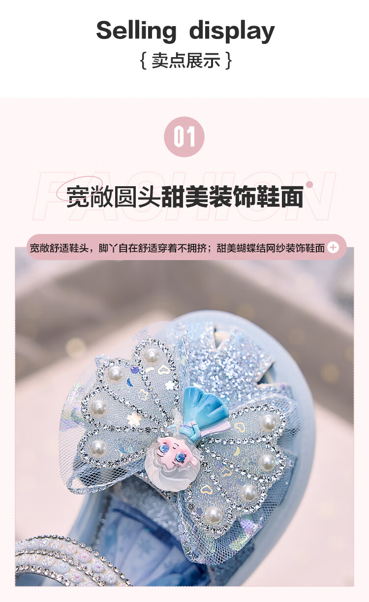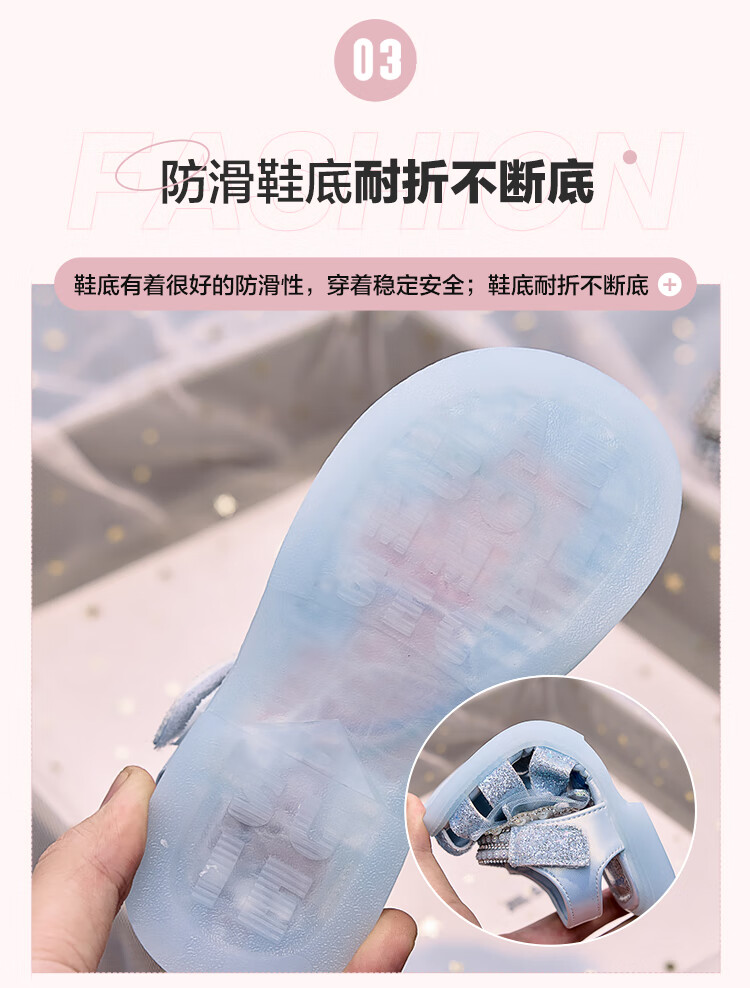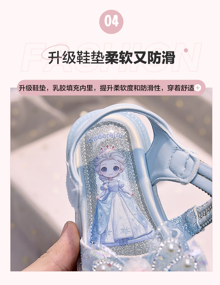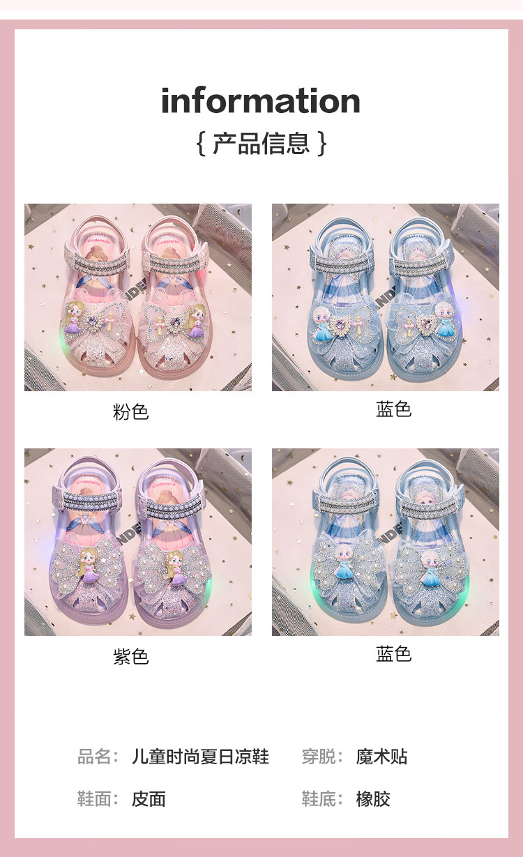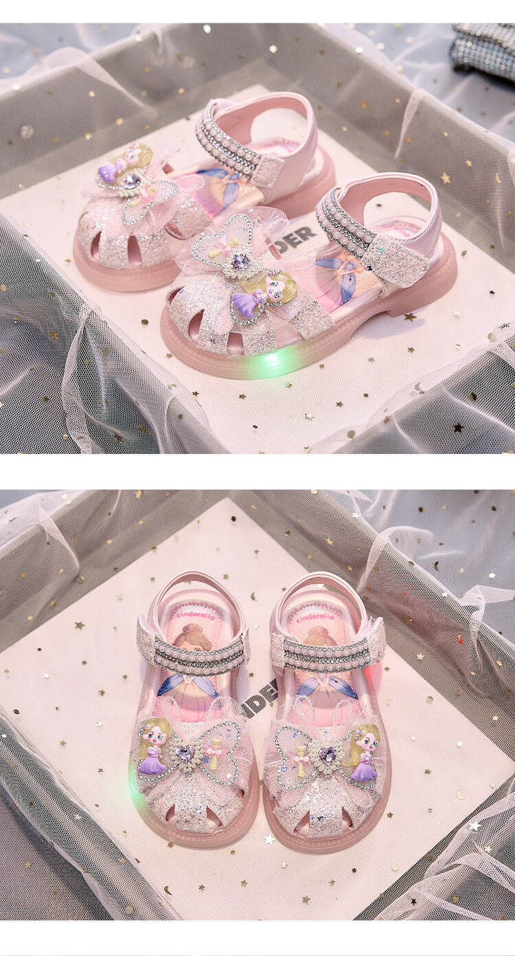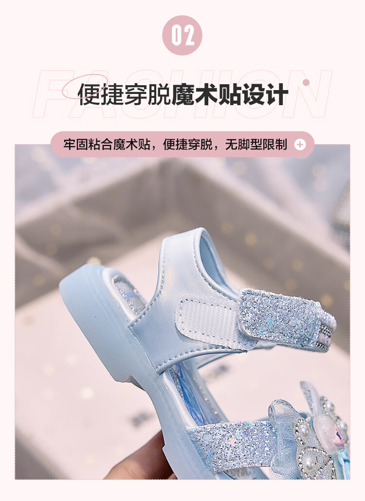 JIEMIEN Lighted Baotou Girls Sandals Crystal Shoes 2025 Summer New Elsa Princess Shoes Soft Sole Anti-Slip Baby Shoes D28. Blue 27 Shoe Inner Length 16.9CM