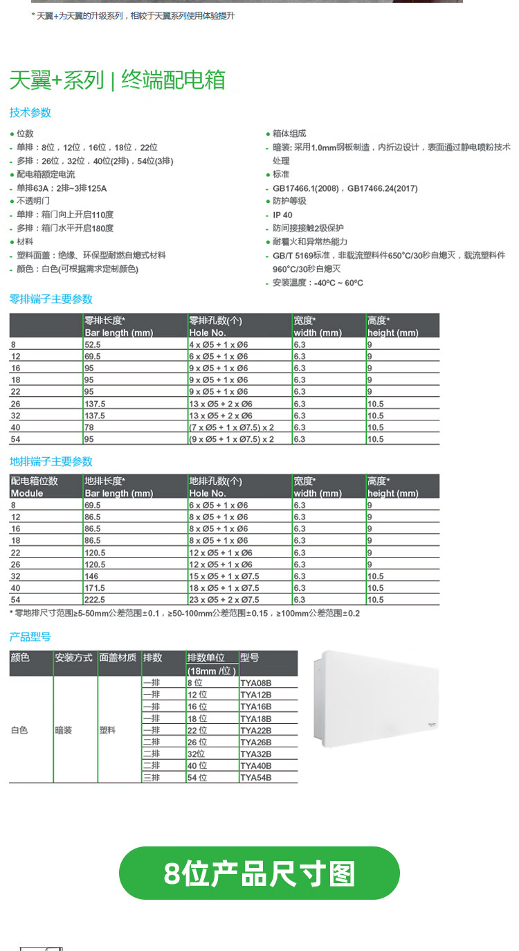 Schneider Electric Tianyi terminal distribution box 8/12/16/18/22/26/32/40/54 circuit box concealed installation Tianyi single row 8 circuit concealed installation