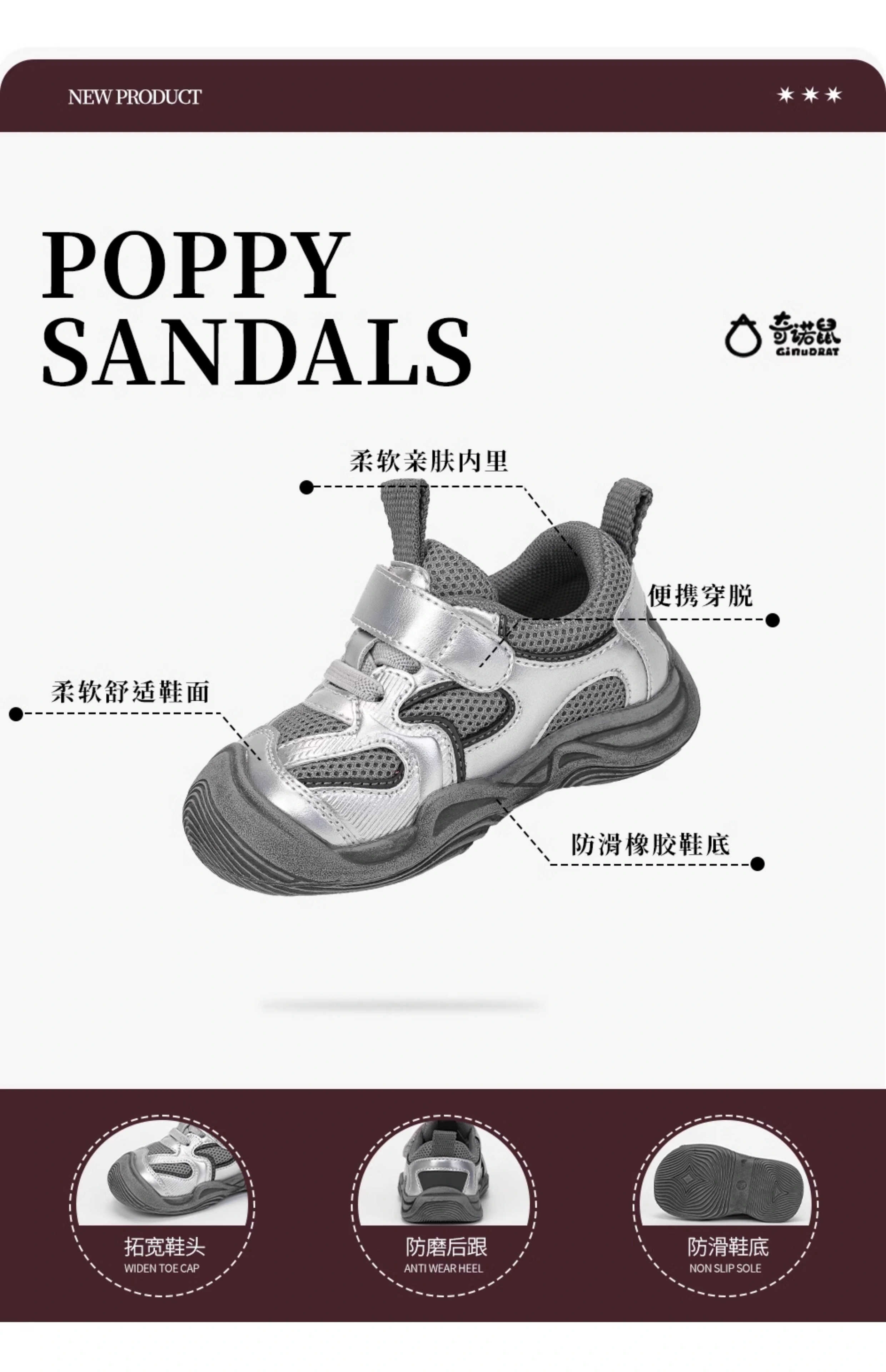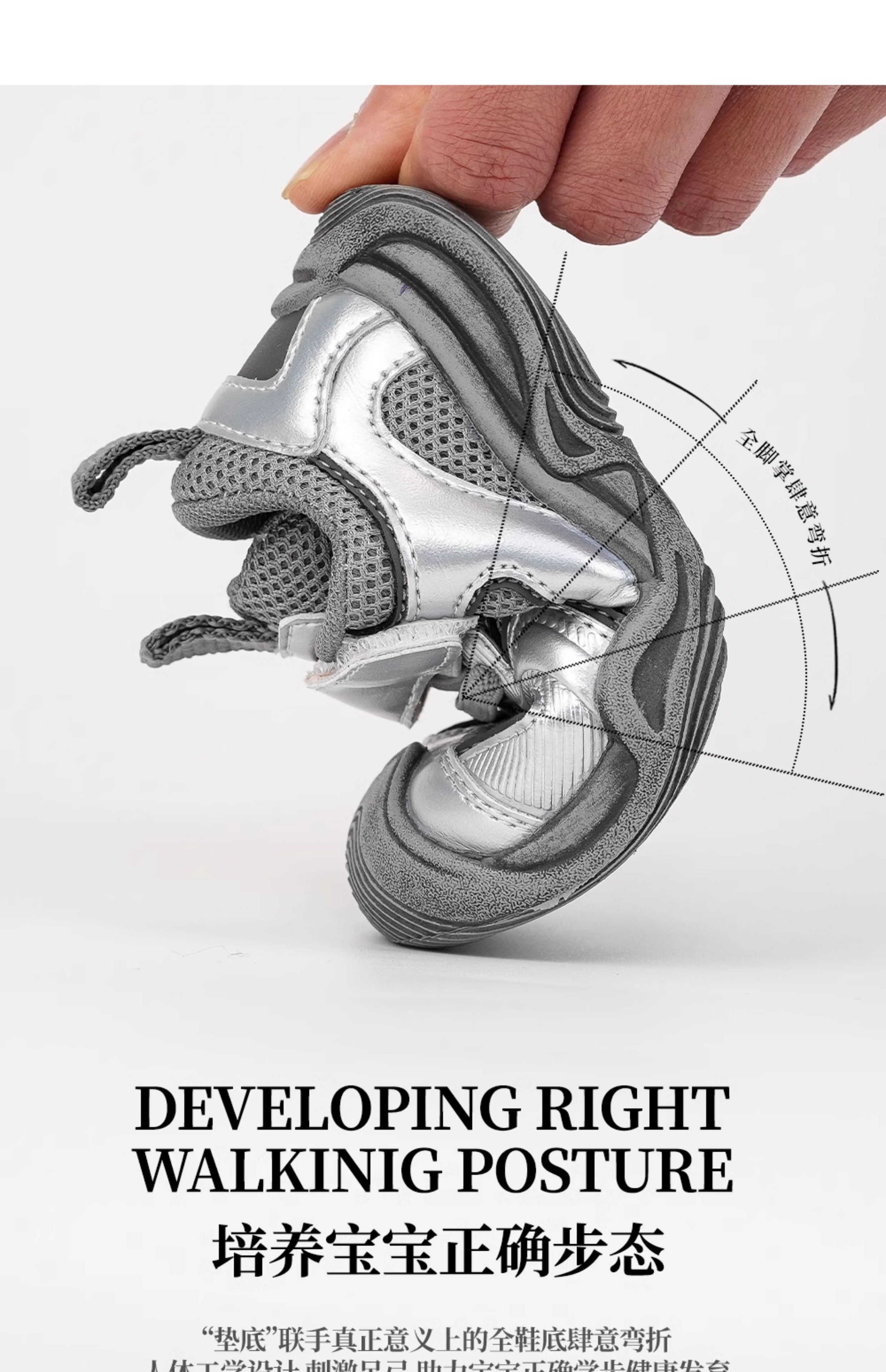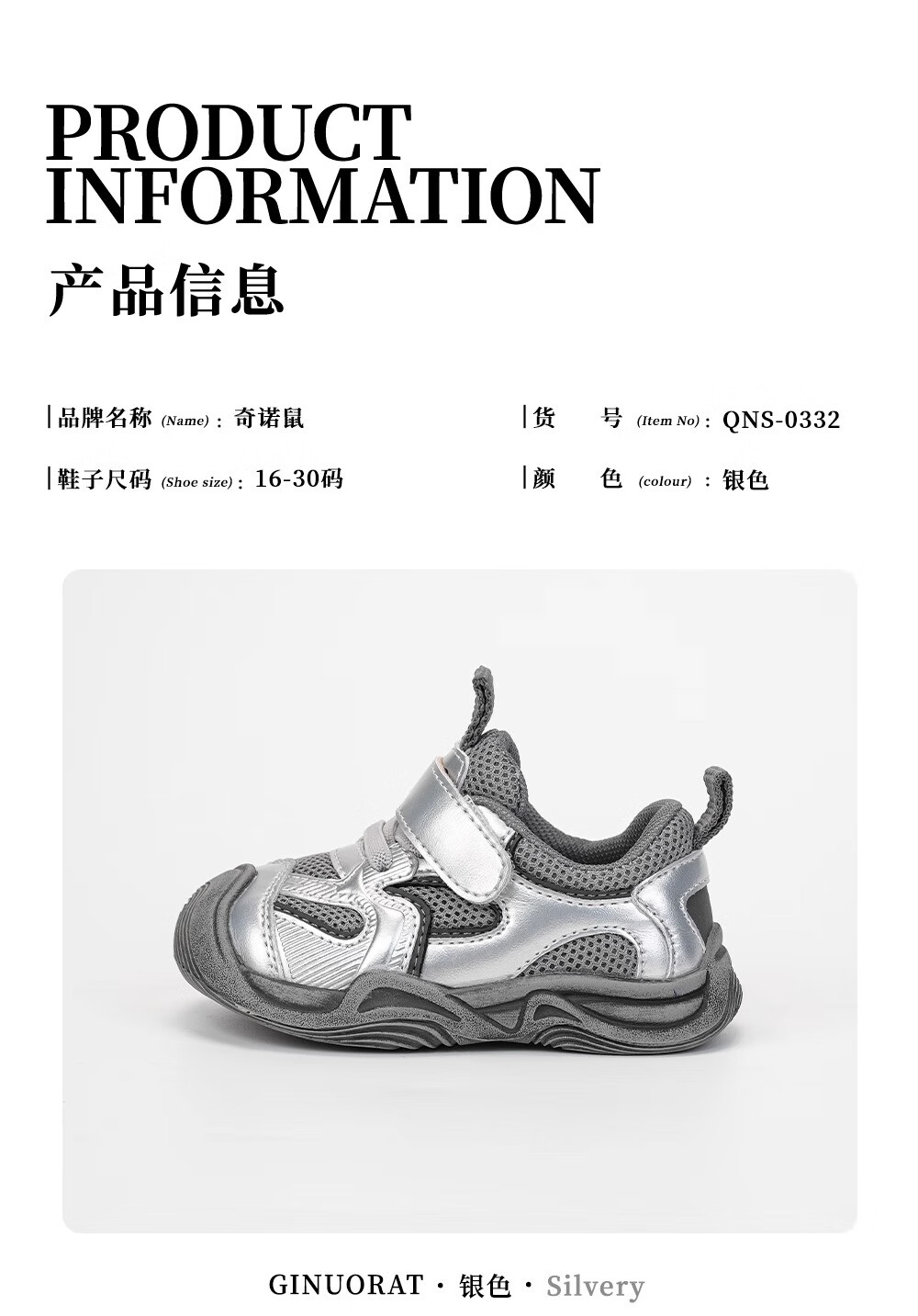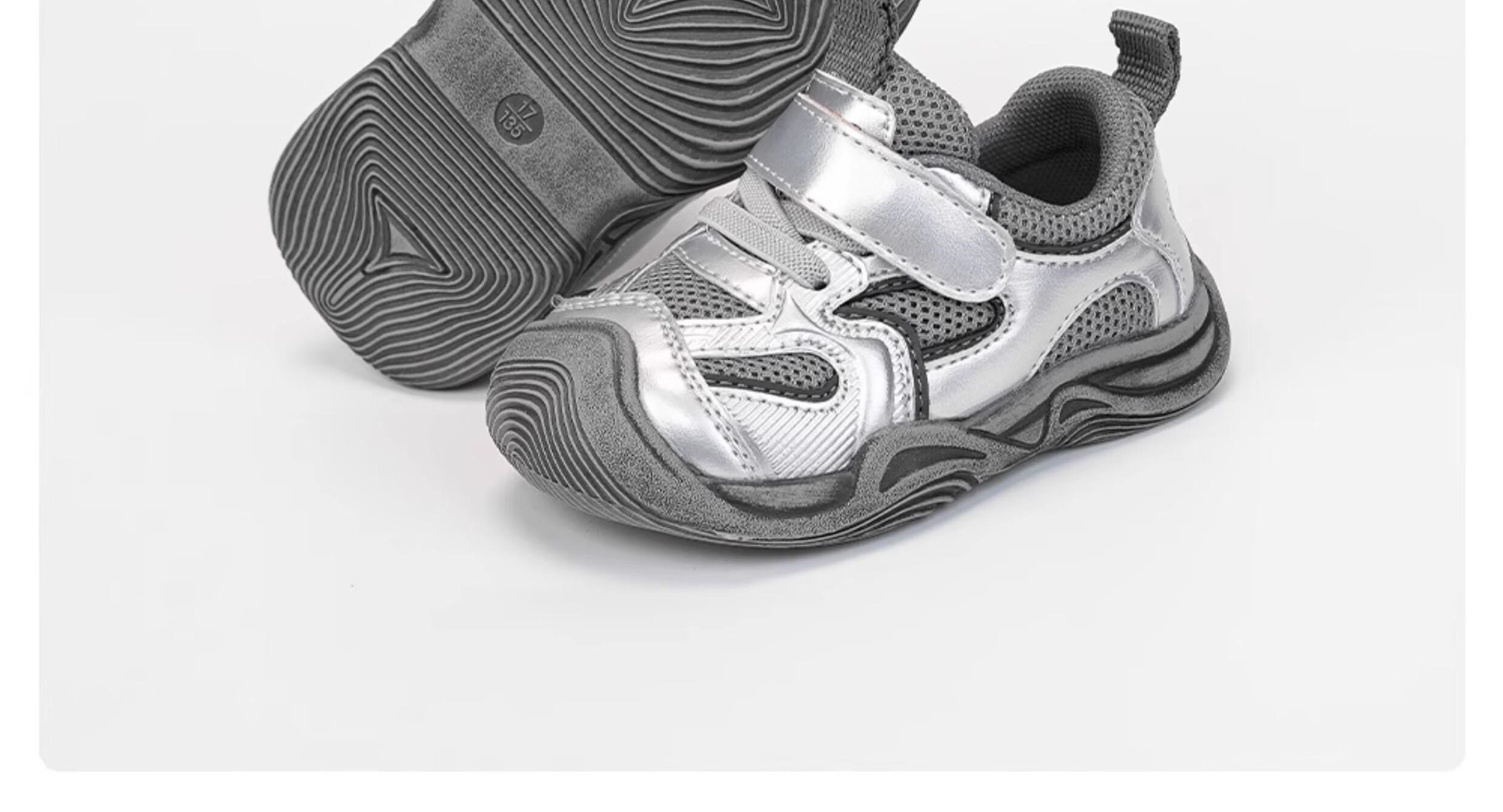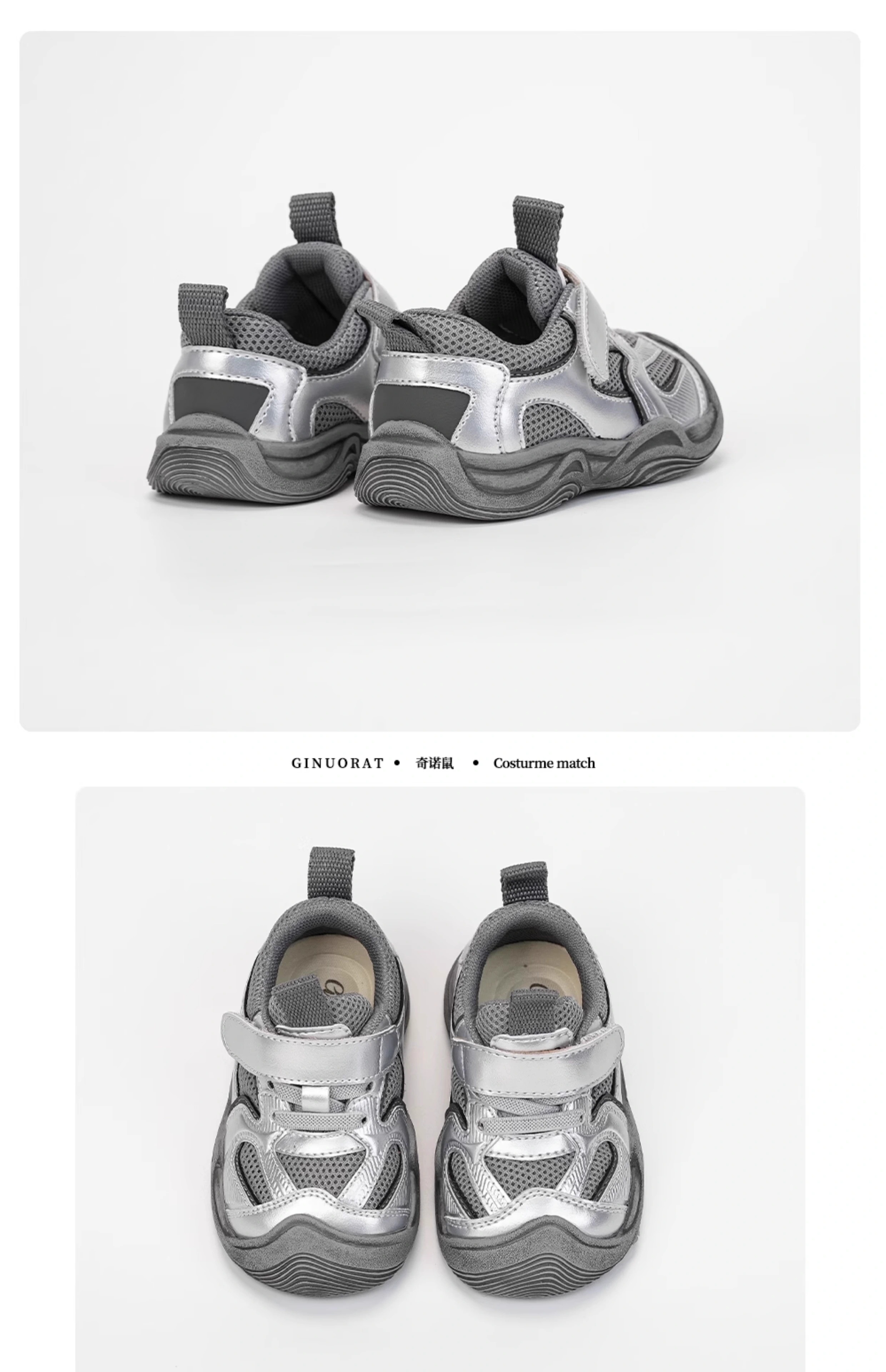Ginuorat Autumn and Winter New Mesh Men's and Women's Soft Bottom Baby Beach Shoes Outdoor Sports Shoes Toddler Shoes Non-Slip Silver (Double Mesh Spring and Autumn Style) 19 (Suitable for Foot Length 12.5-13.0)