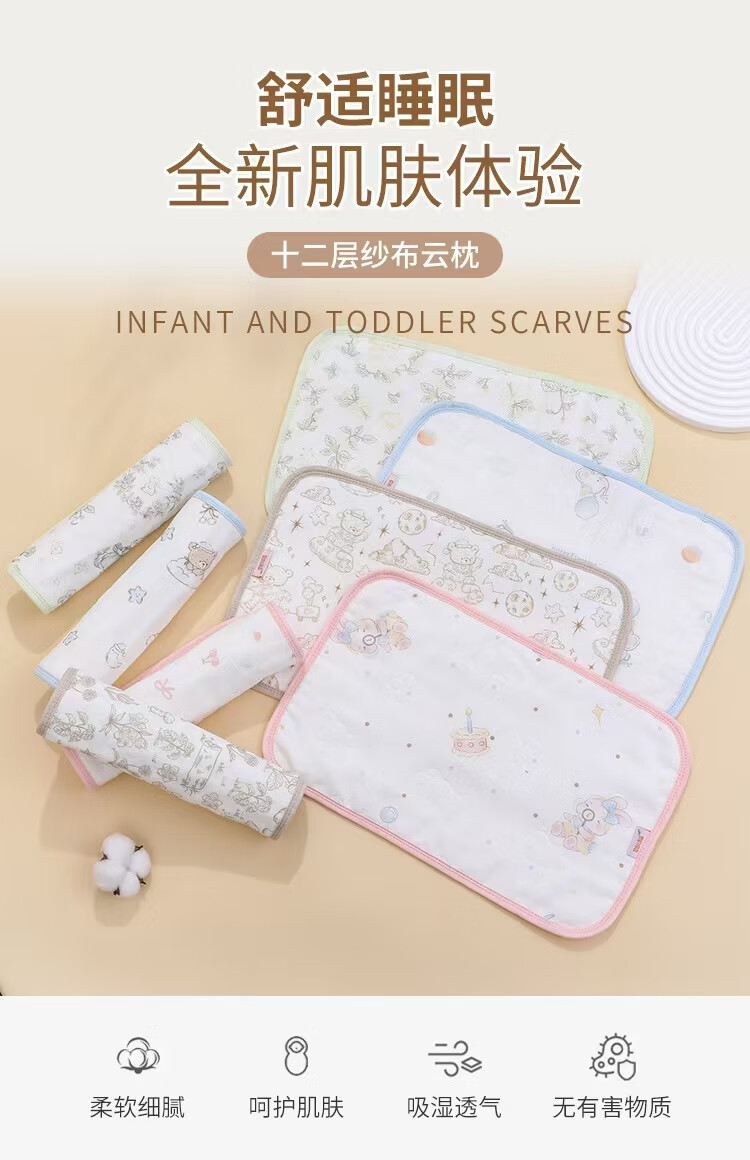 Mianjia cloud pillow newborn baby pillow 0-6 months 100 pure cotton gauze pillow towel absorbent sweat breathable anti-vomiting pillow piece 0-6 months random 2 packs nearly 0 degree neck protection
