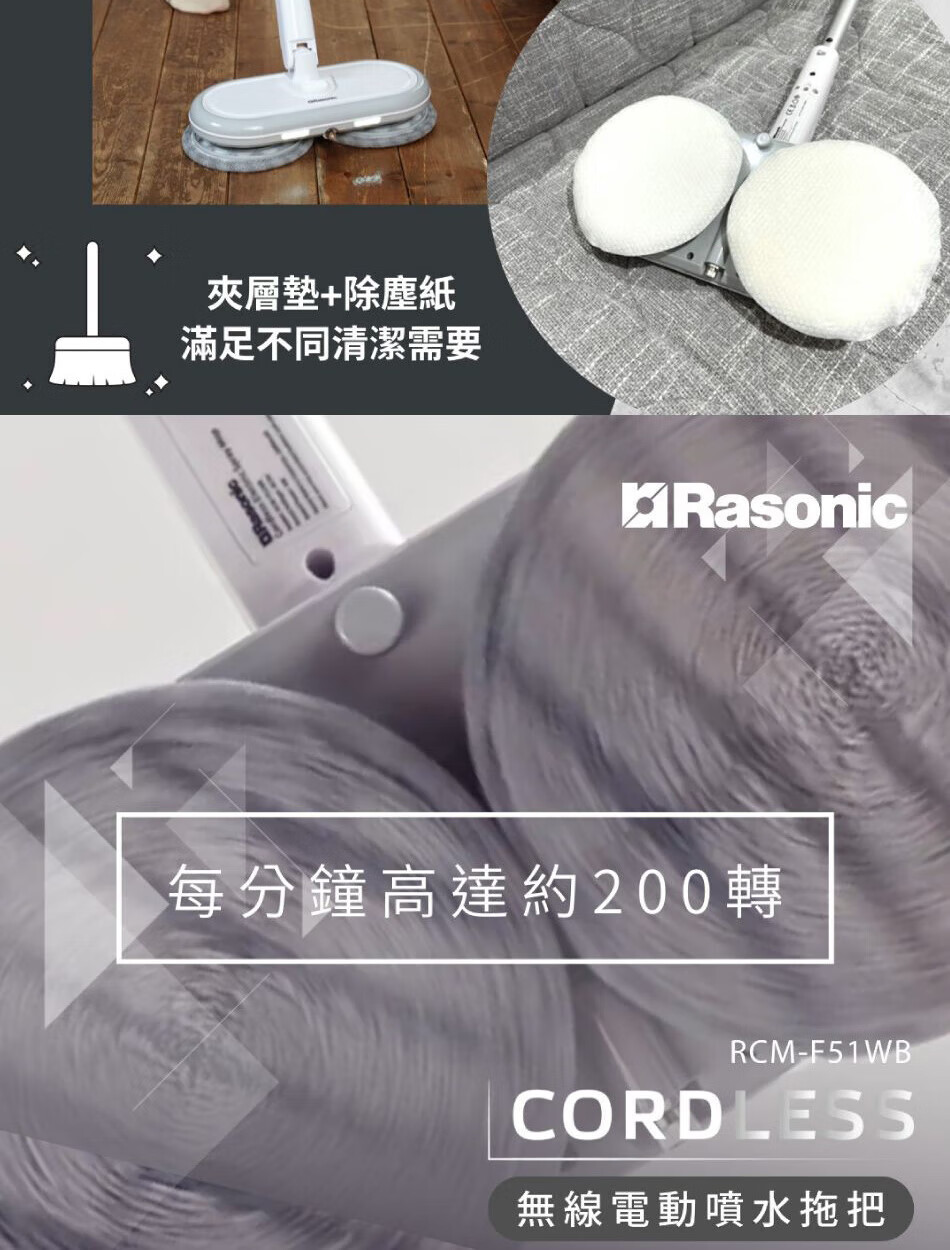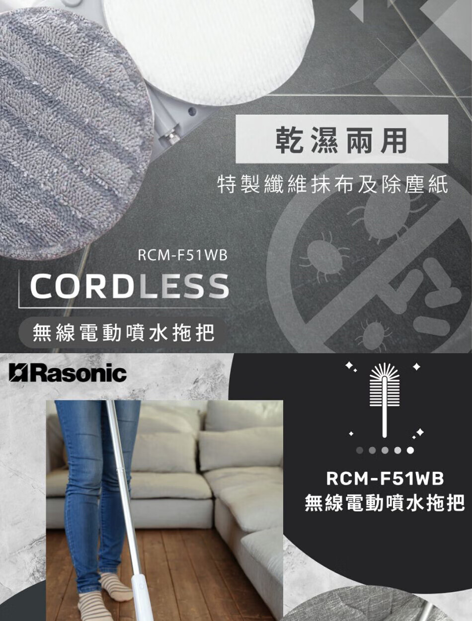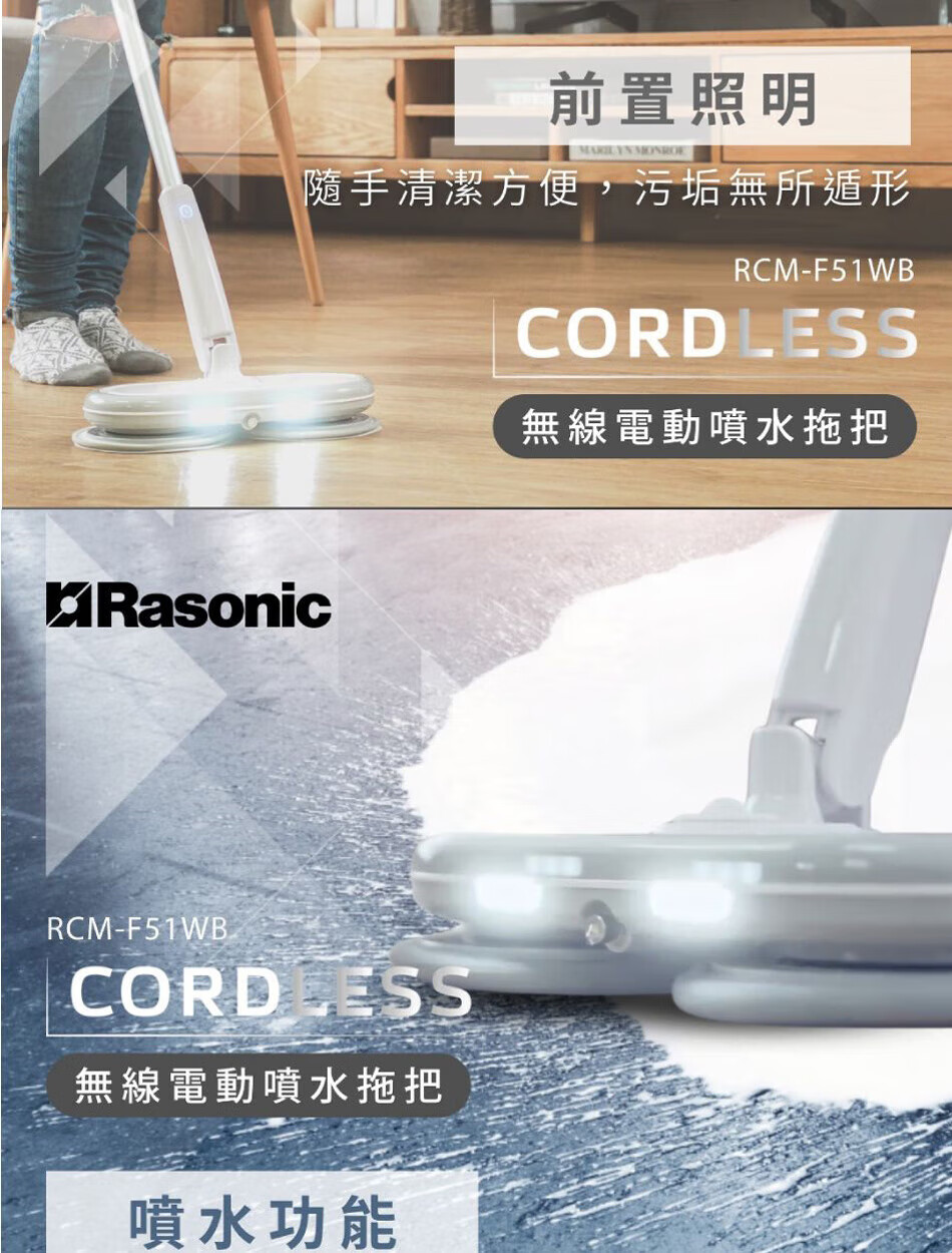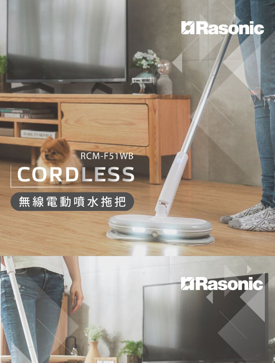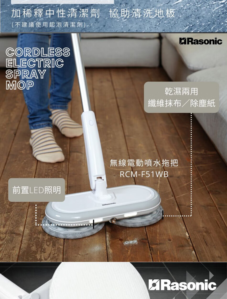 Lexin brand (RASONIC) RCM-F51WB electric mop, washing and mopping all-in-one mopping machine, floor washing machine, wireless handheld household floor water spray and humidification, floor mopping machine cleaning machine, dry mopping and wet mopping RCM-F51WB