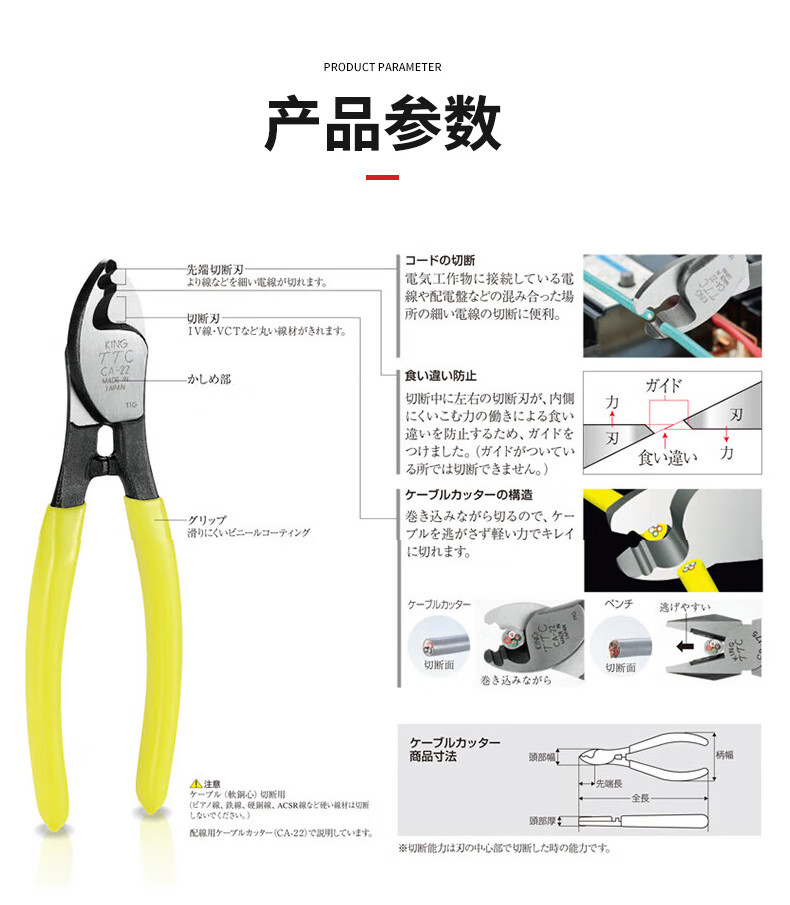 King TTC cable pliers TTC wire stripper wire scissors imported from Japan cable pliers wire cutters wire cutters 6-inch cable cutters CA-22/6 inches made in Japan