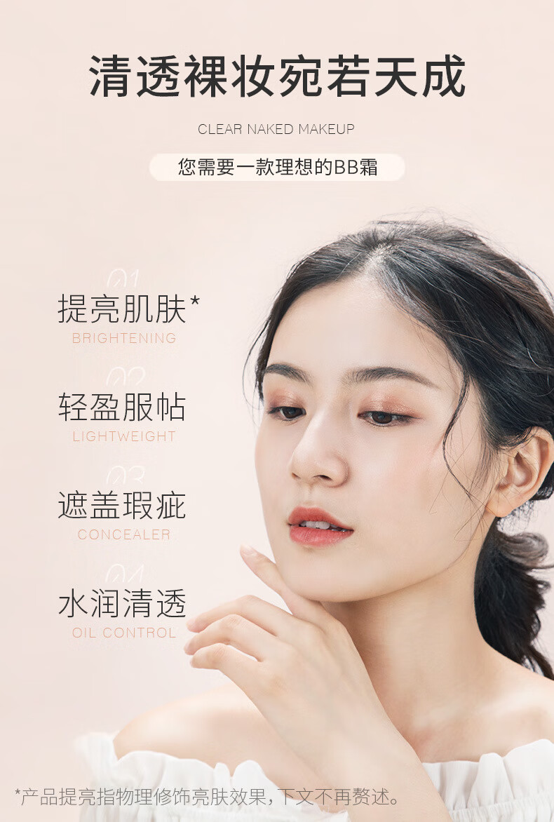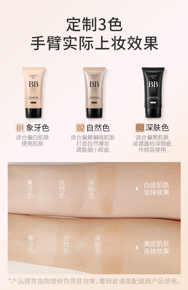 BB cream liquid foundation covers blemishes without stripping makeup, is light, breathable, brightens, long-lasting, moisturizing, waterproof, does not stick to powder, does not fake white, natural color 50g*1