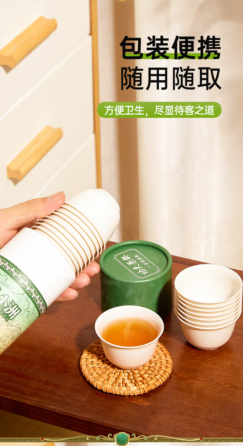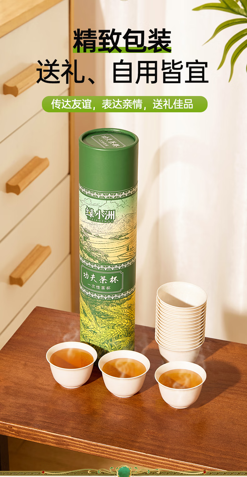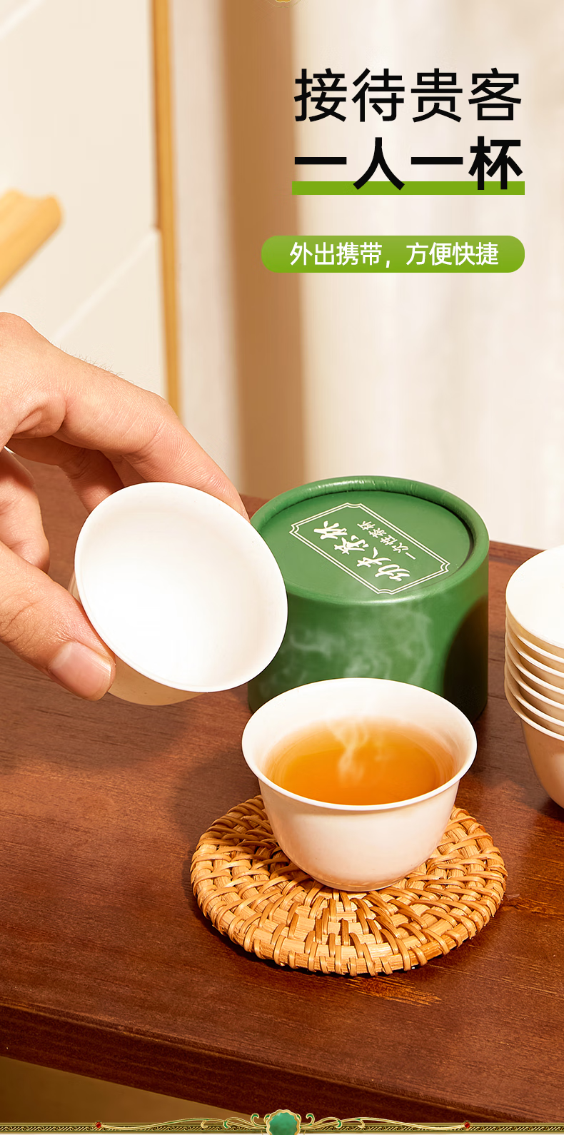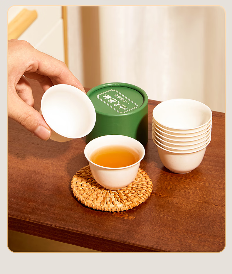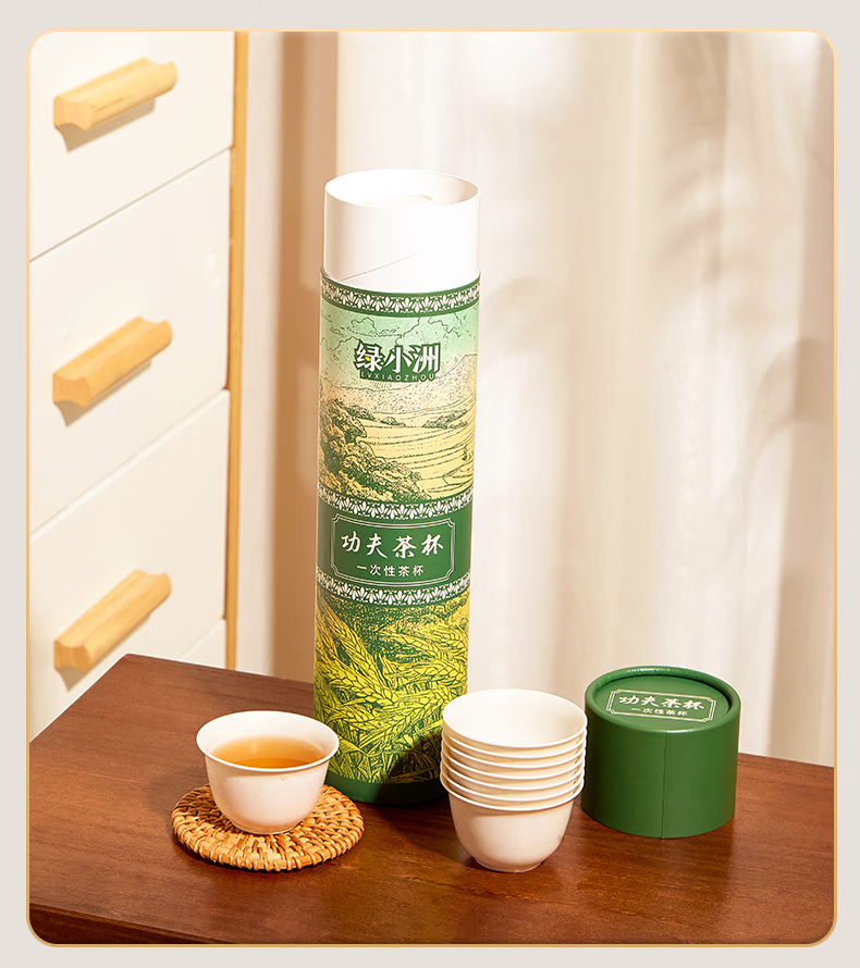 Green Xiaozhou rice husk disposable kung fu tea cup barrel 60ML outdoor portable tea set barbecue picnic camping trip four barrels 200 pieces in total