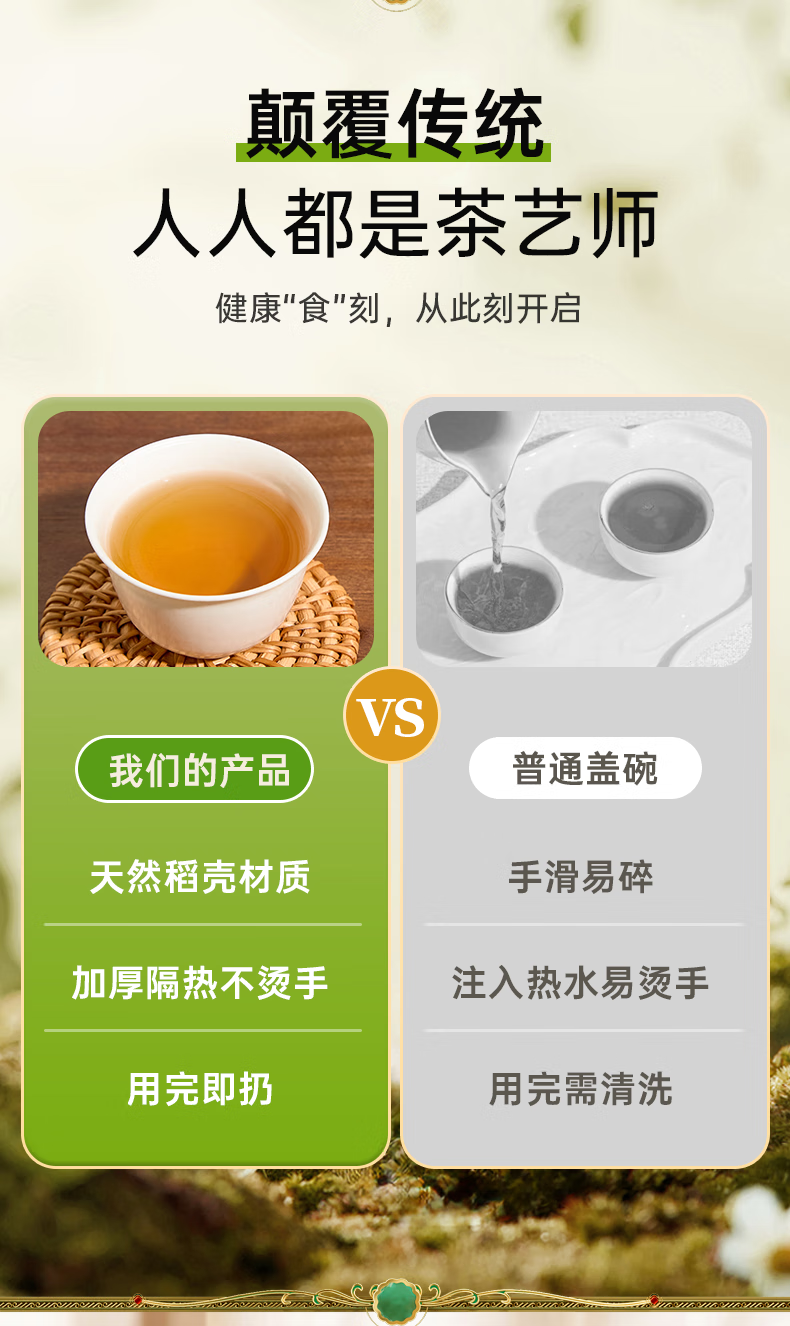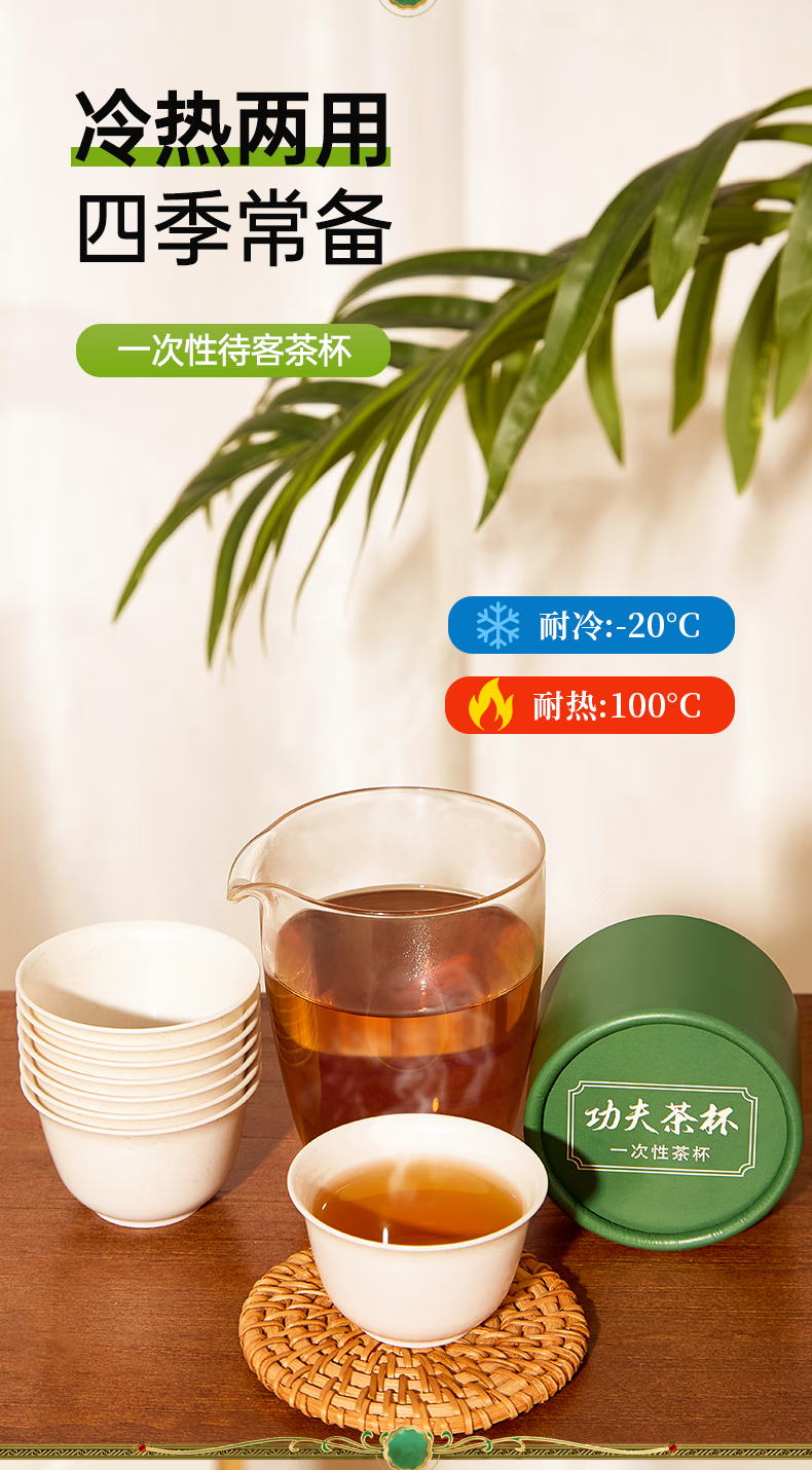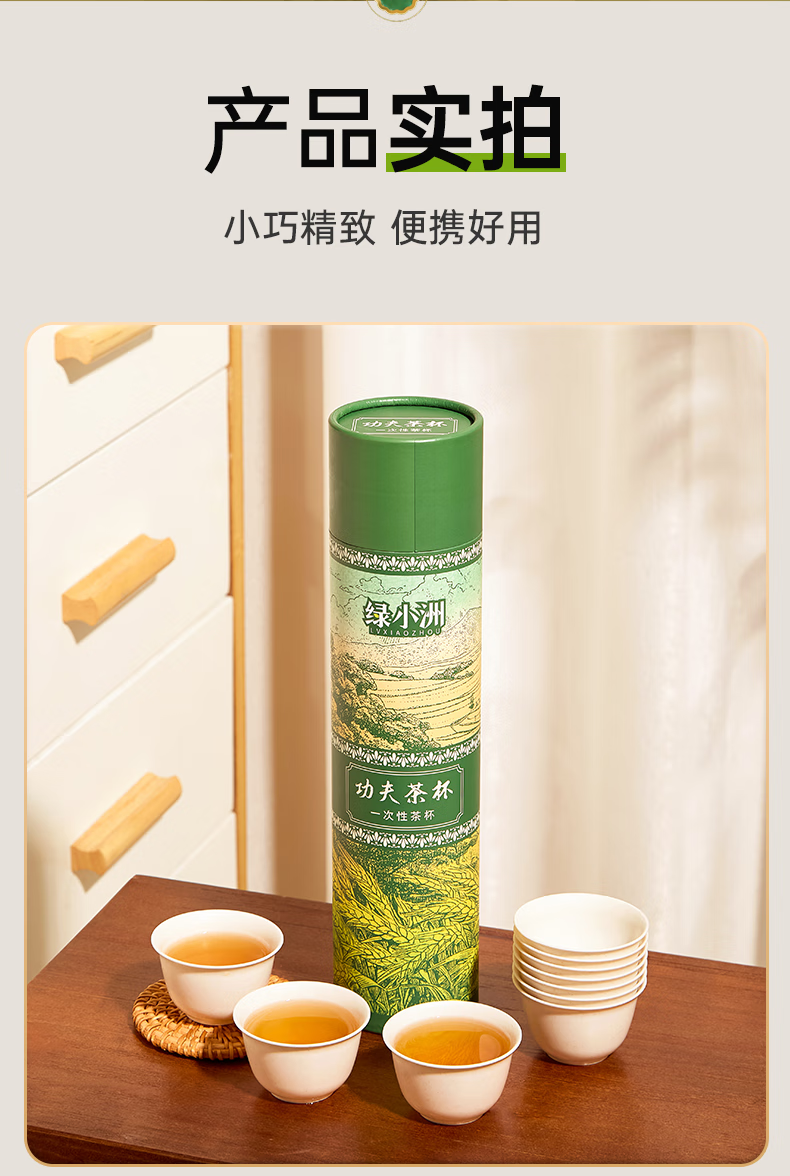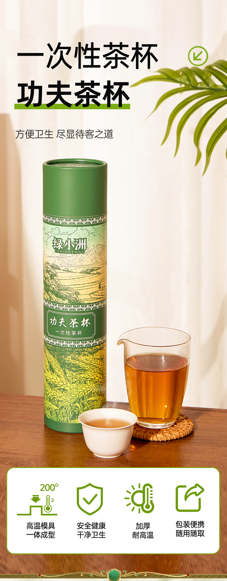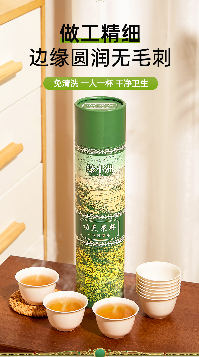 Green Xiaozhou rice husk disposable kung fu tea cup barrel 60ML outdoor portable tea set barbecue picnic camping trip four barrels 200 pieces in total