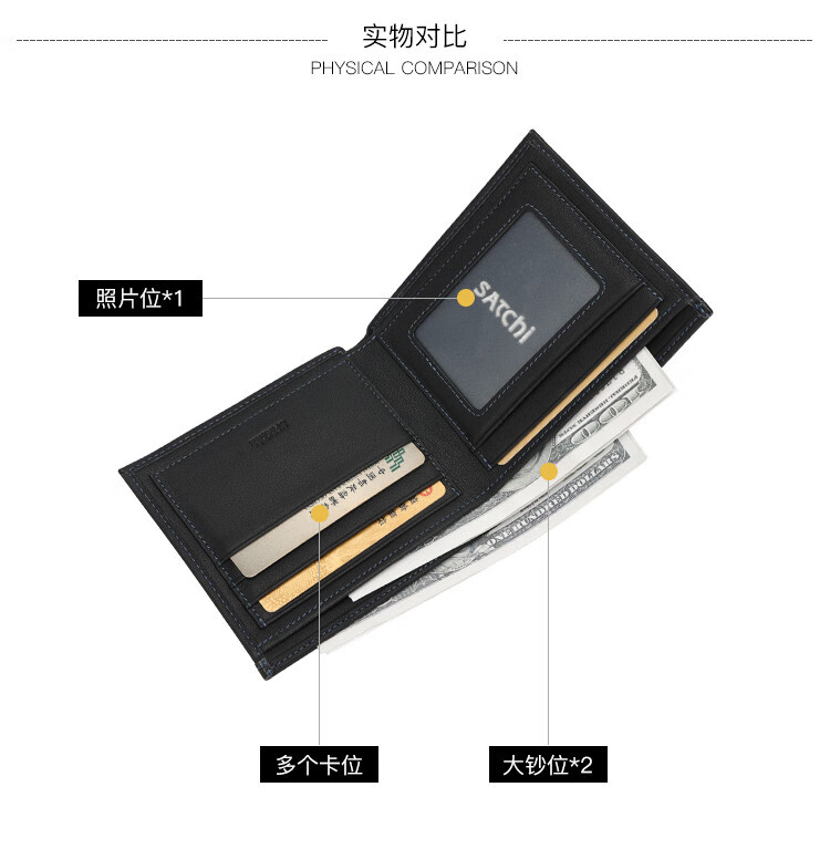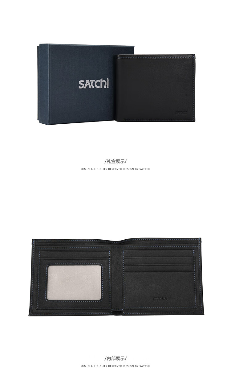 Sachi Men's Ticket Clip Genuine Leather Short Wallet for Boyfriend Black One Size
