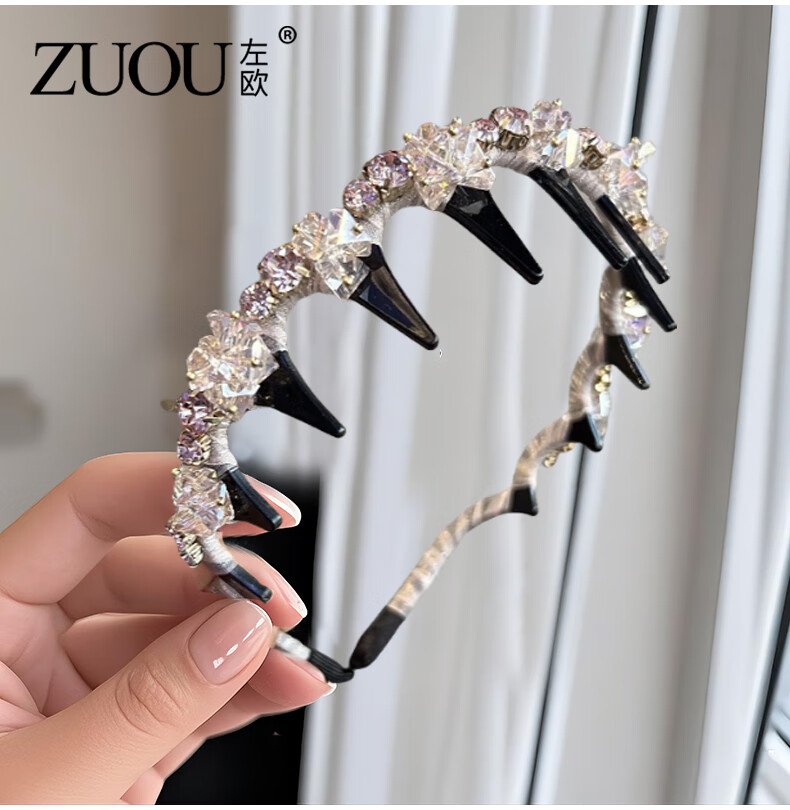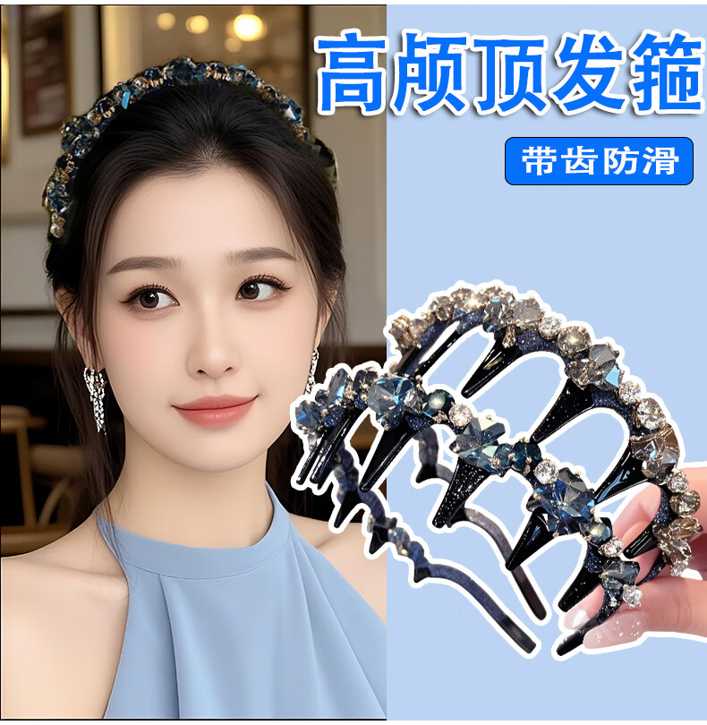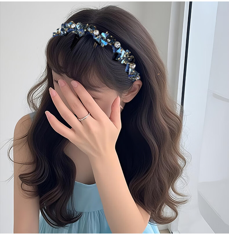 Zuoou blue high skull top beautiful hairband heavy industry crystal rhinestone hairpin wavy toothed fluffy face small headband hair bundle light purple