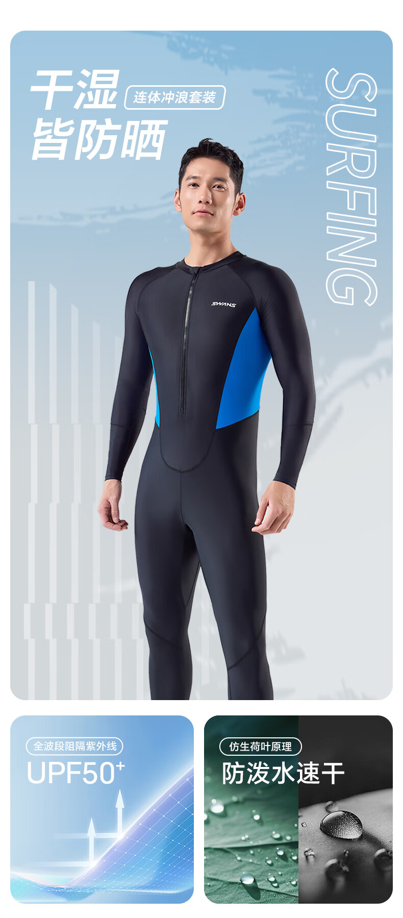SWANS swimsuit boys' one-piece quick-drying snorkeling surf suit sun protection long-sleeved trousers jellyfish suit black M Height 165-170cm Weight 55-