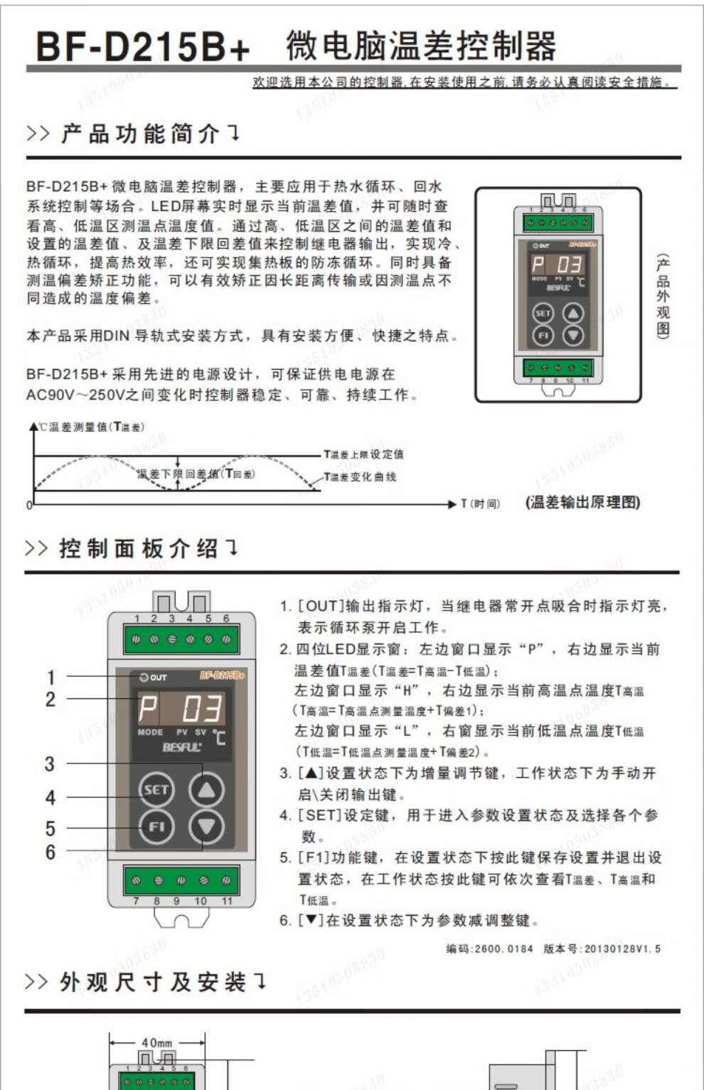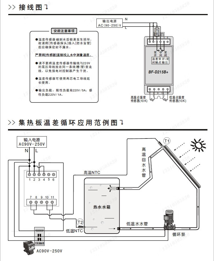 Bihe BF-D215B+ guide rail temperature difference controller solar collector plate hot water circulation temperature difference controller official standard