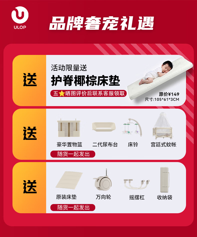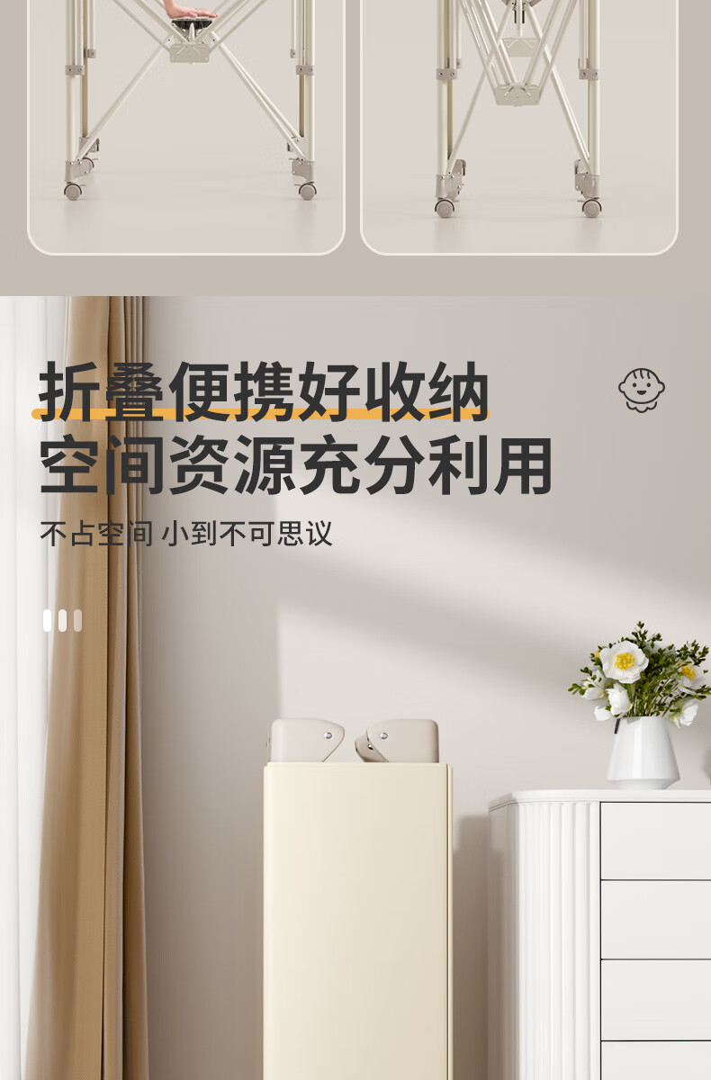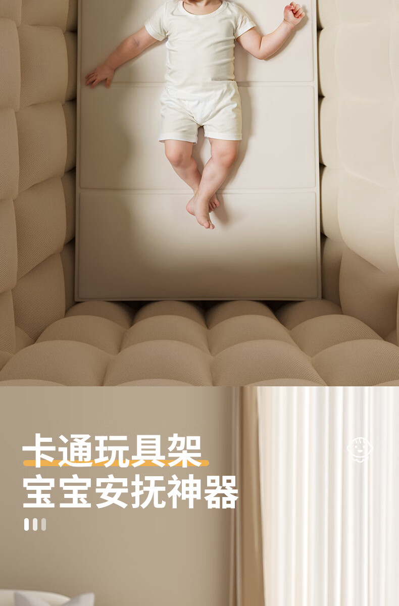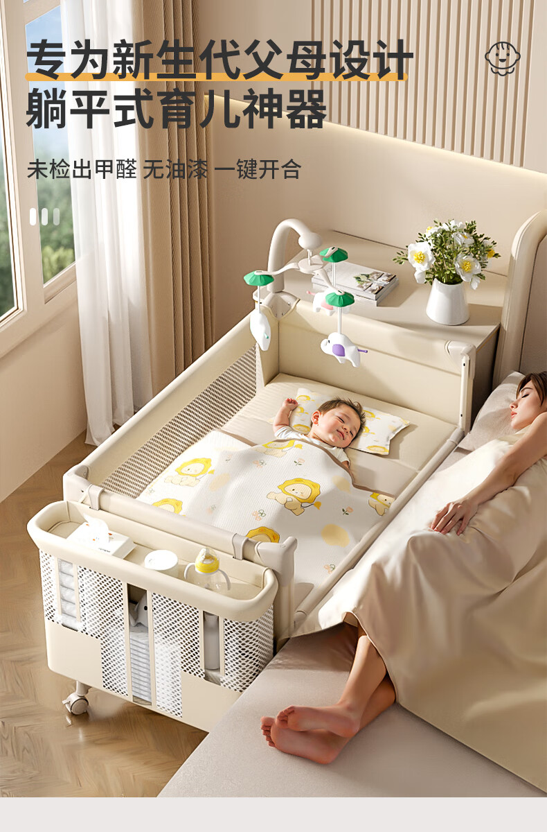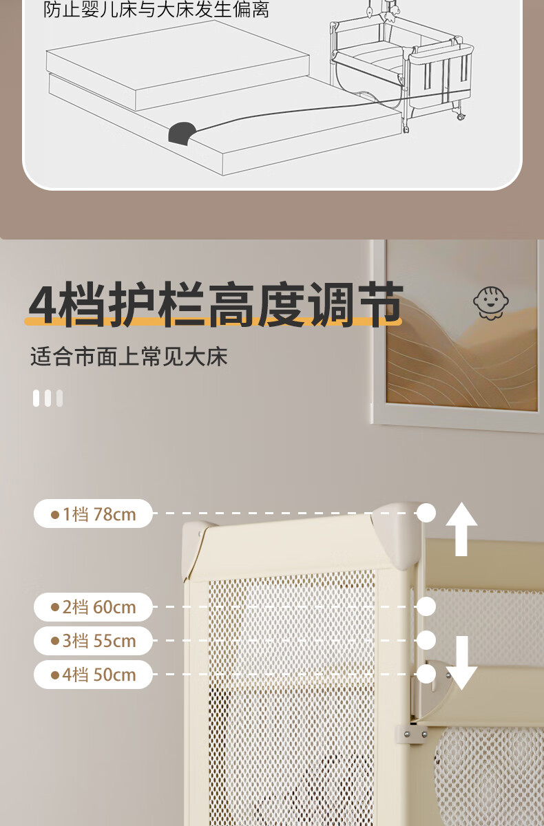 ULOP crib removable splicing crib multifunctional portable foldable baby bed with changing table mosquito net Yunmeng one-click folding baby rocking bed - light khaki baby supplies baby sleeping artifact