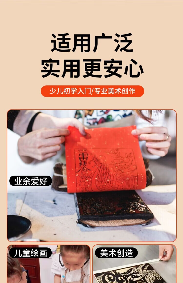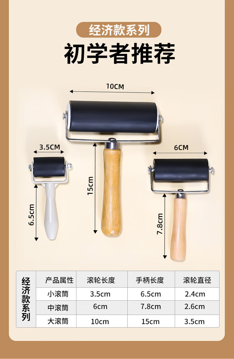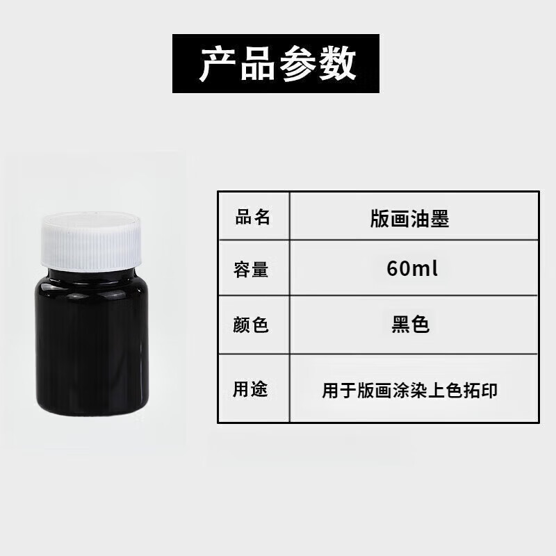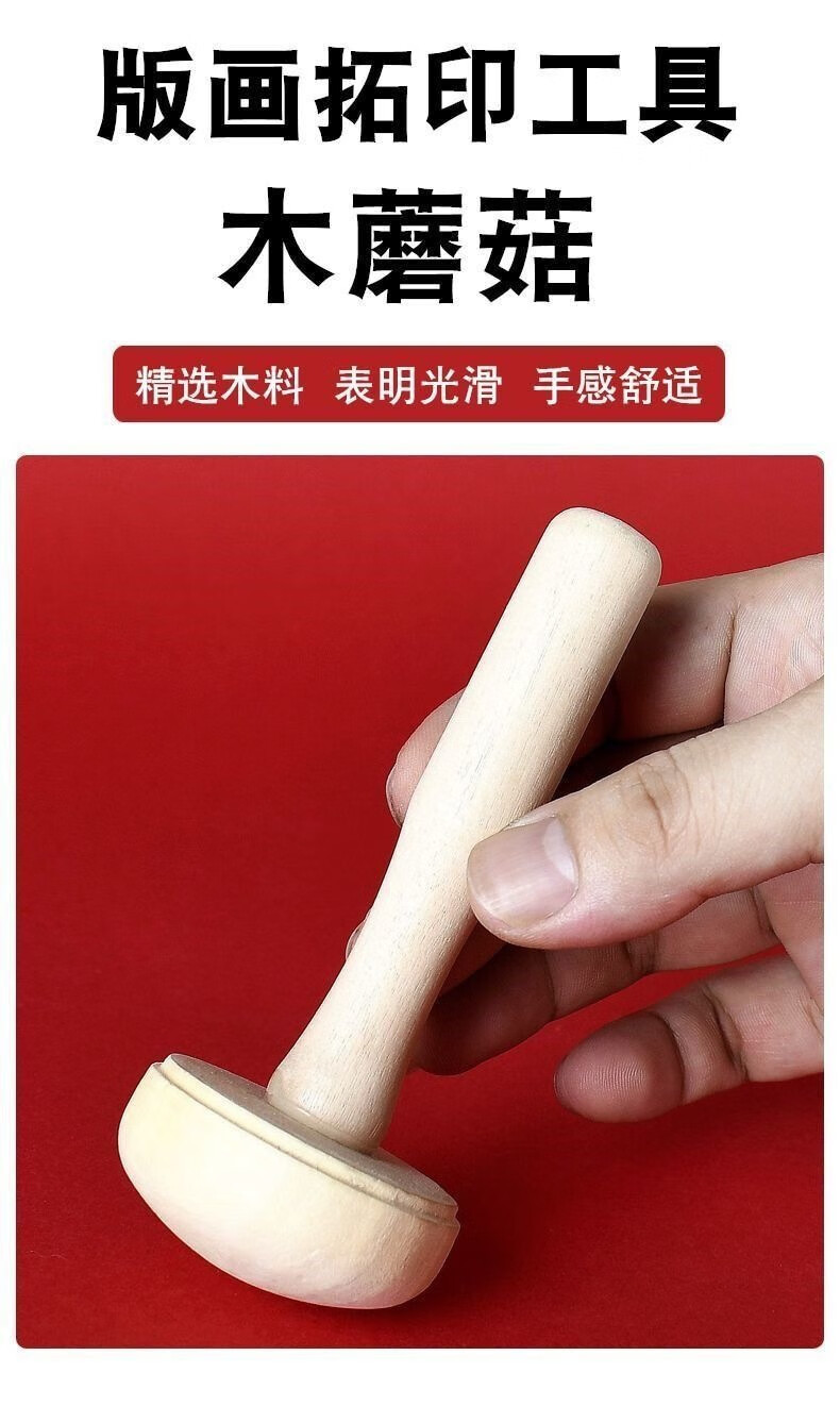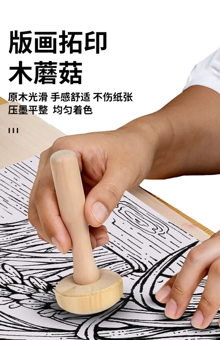 Janes children's printmaking tools rubber roller rubber roller brush embossing rubber roller printmaking tool roller rubbing ink rubber roller wooden handle art rubber roller wood mushroom Malian wood board painting special ink for printmaking black 60ml 1 bottle
