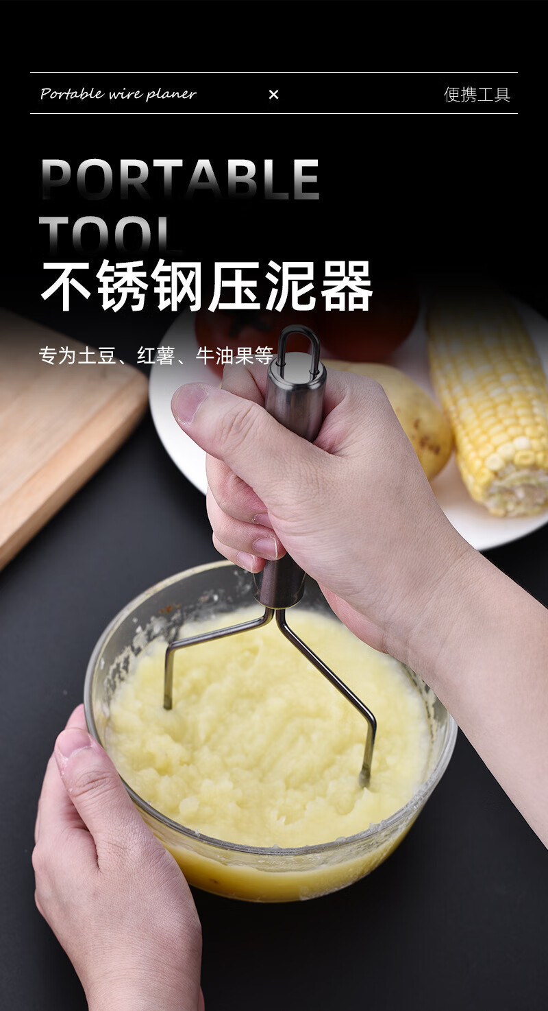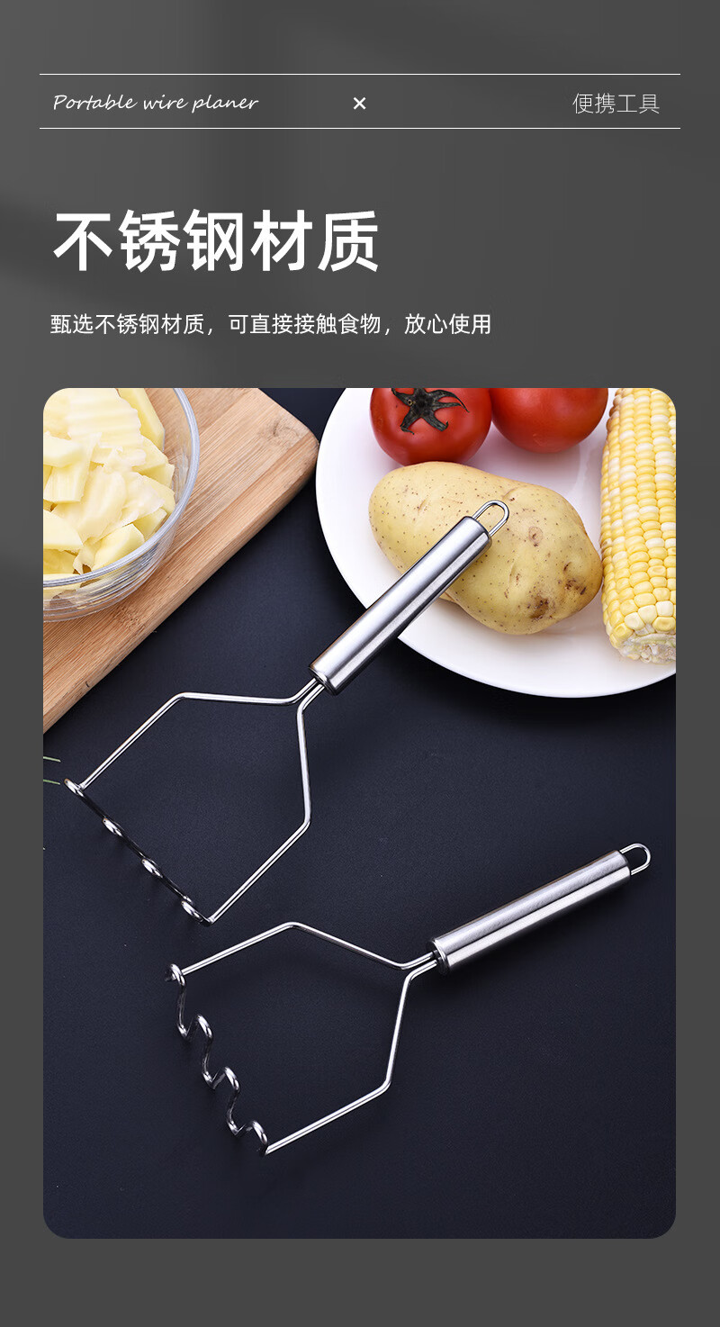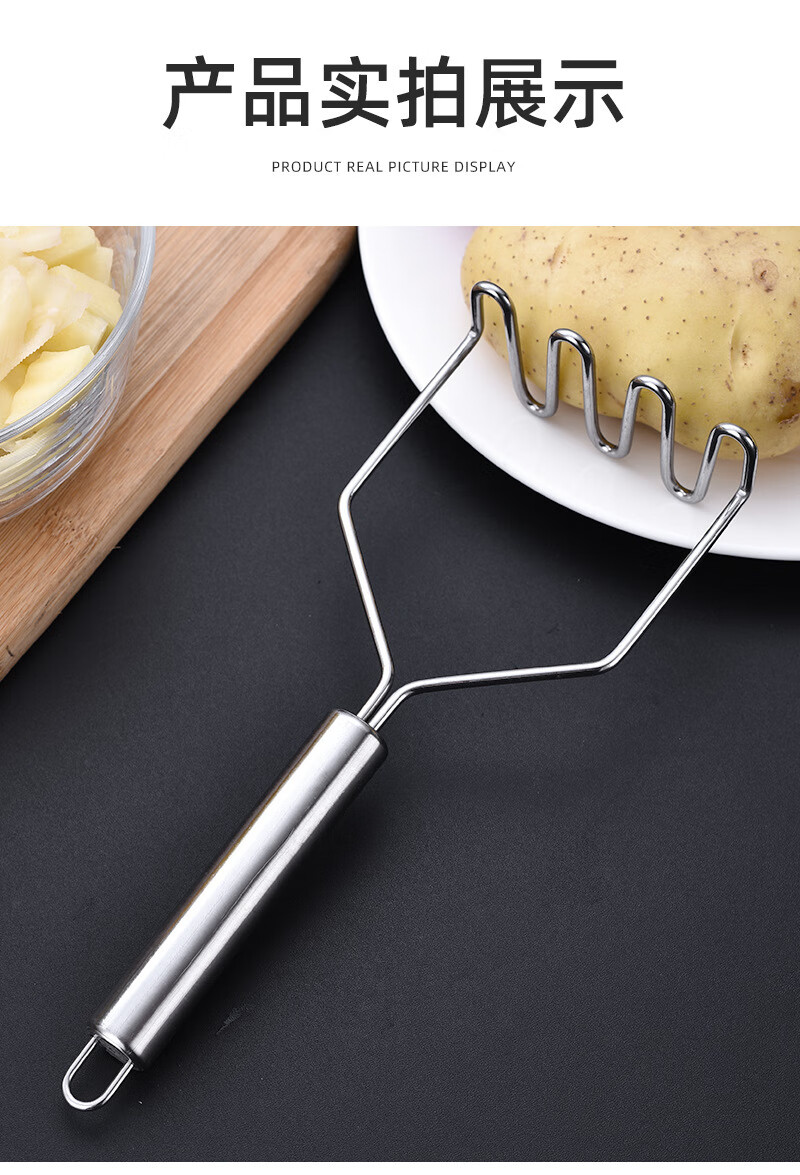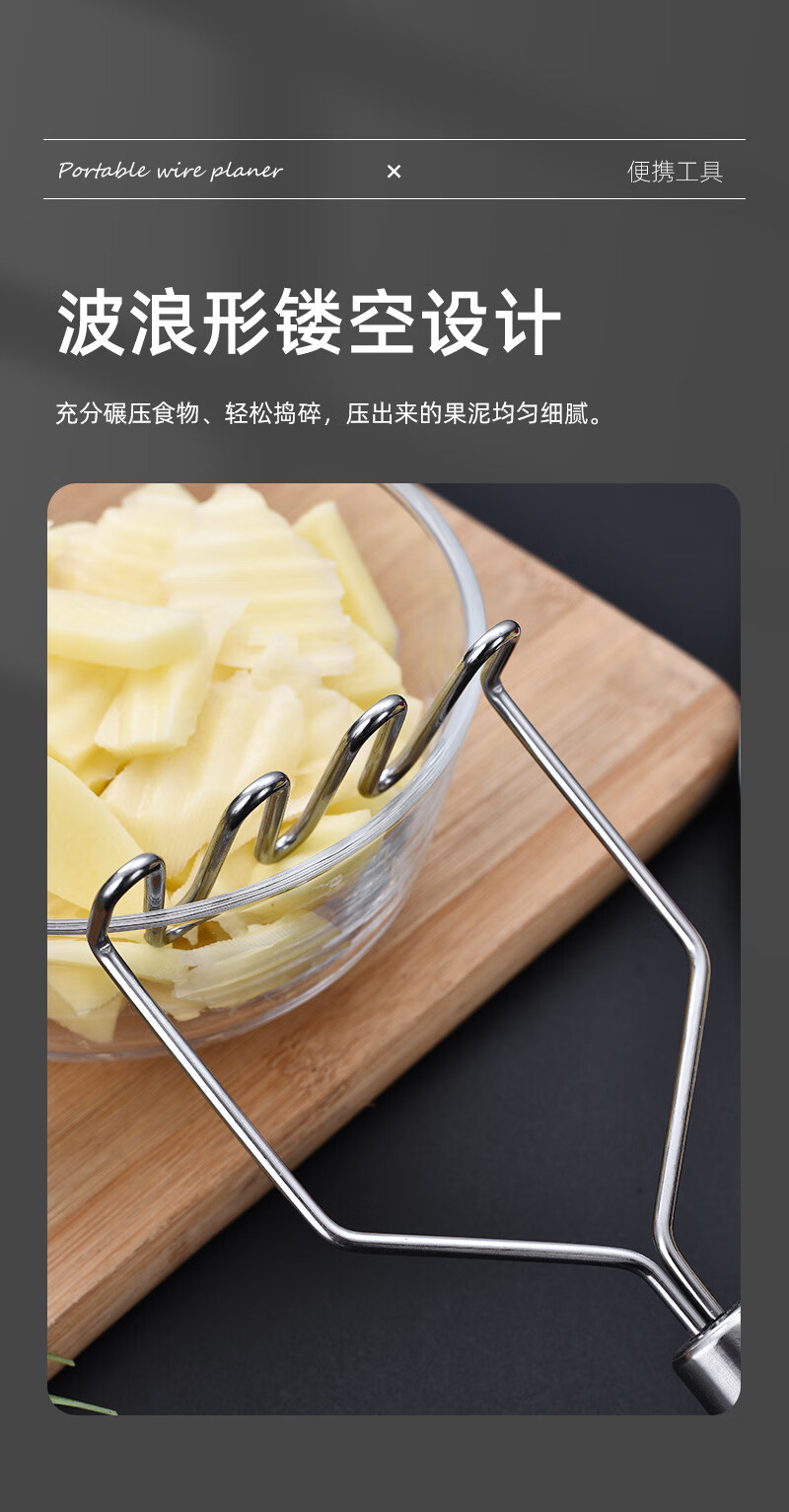 Stainless steel masher, potato masher, taro masher, baby food supplement, avocado masher, kitchen food crusher, potato masher - wavy type 1 piece