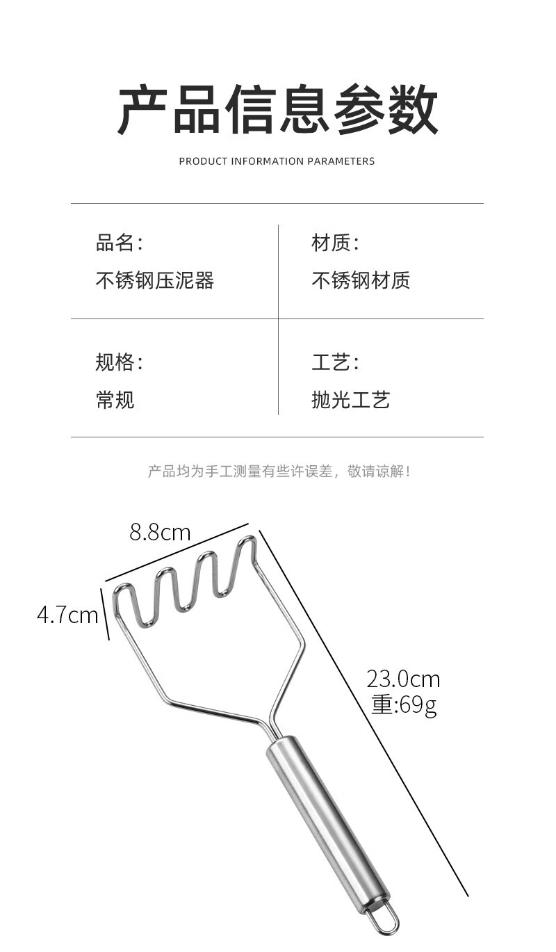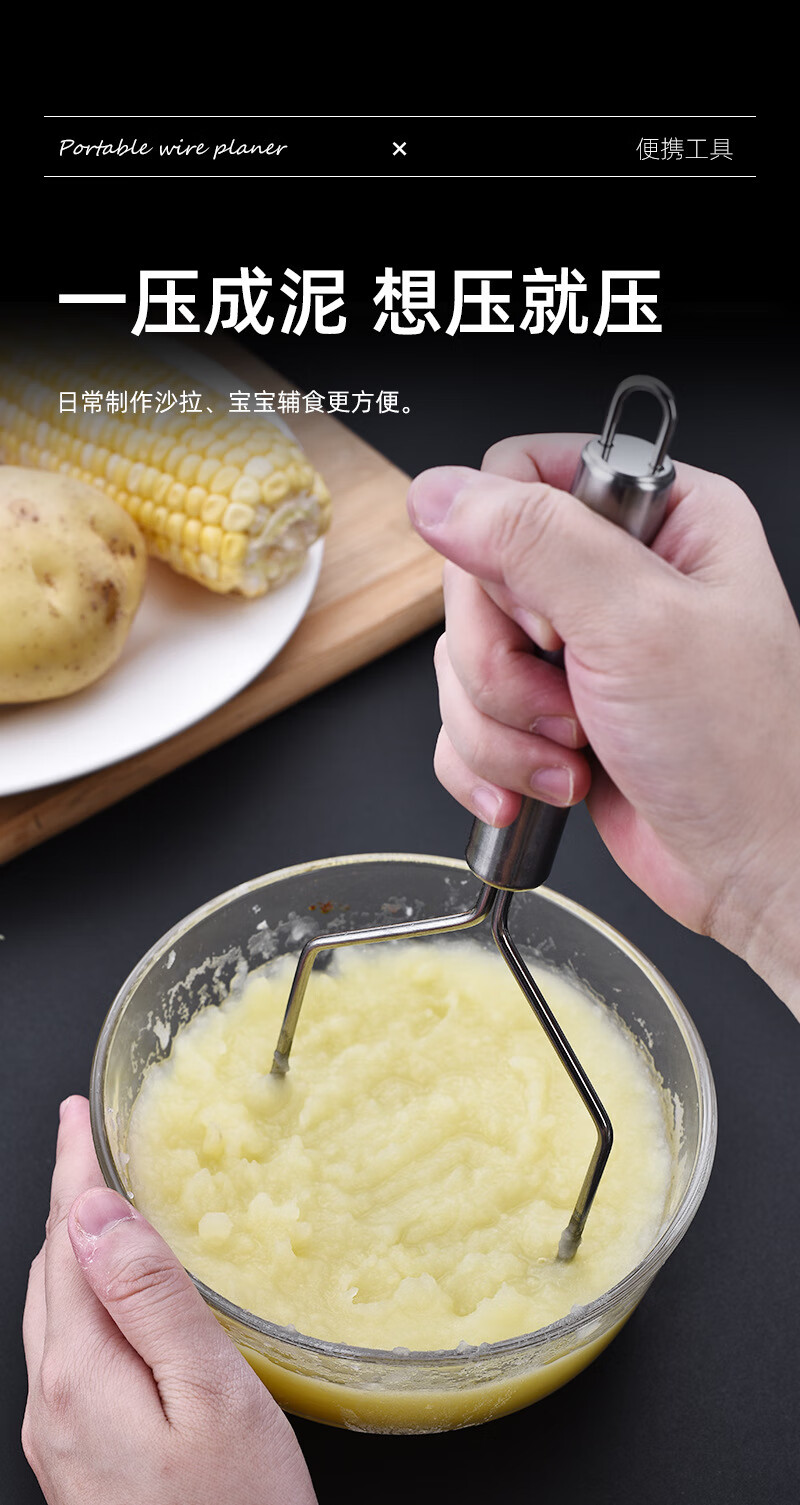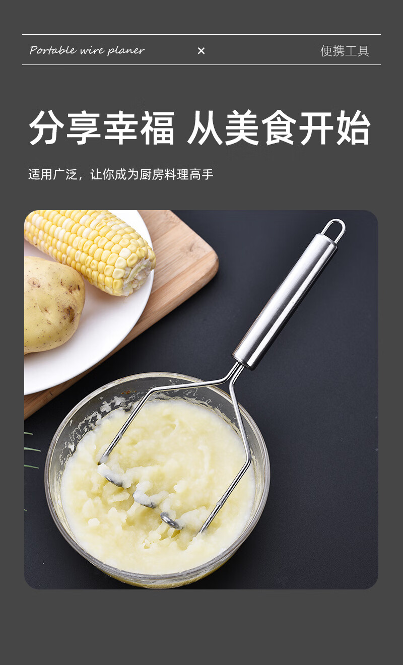 Stainless steel masher, potato masher, taro masher, baby food supplement, avocado masher, kitchen food crusher, potato masher - wavy type 1 piece