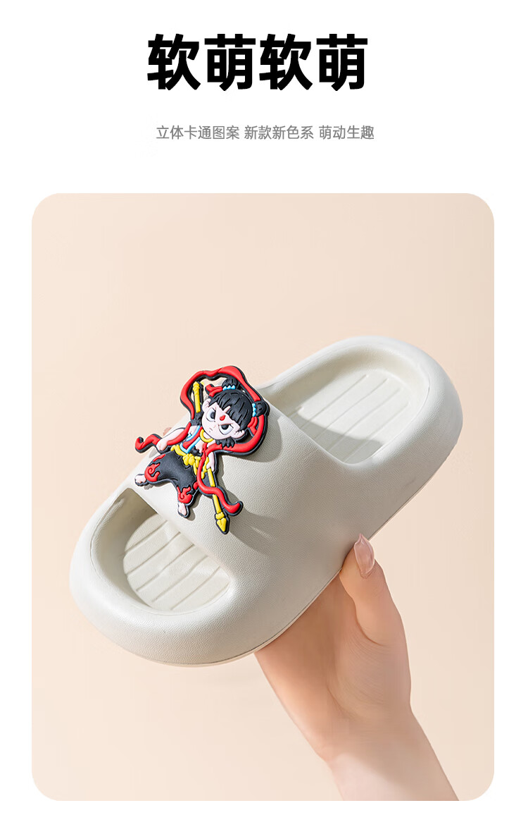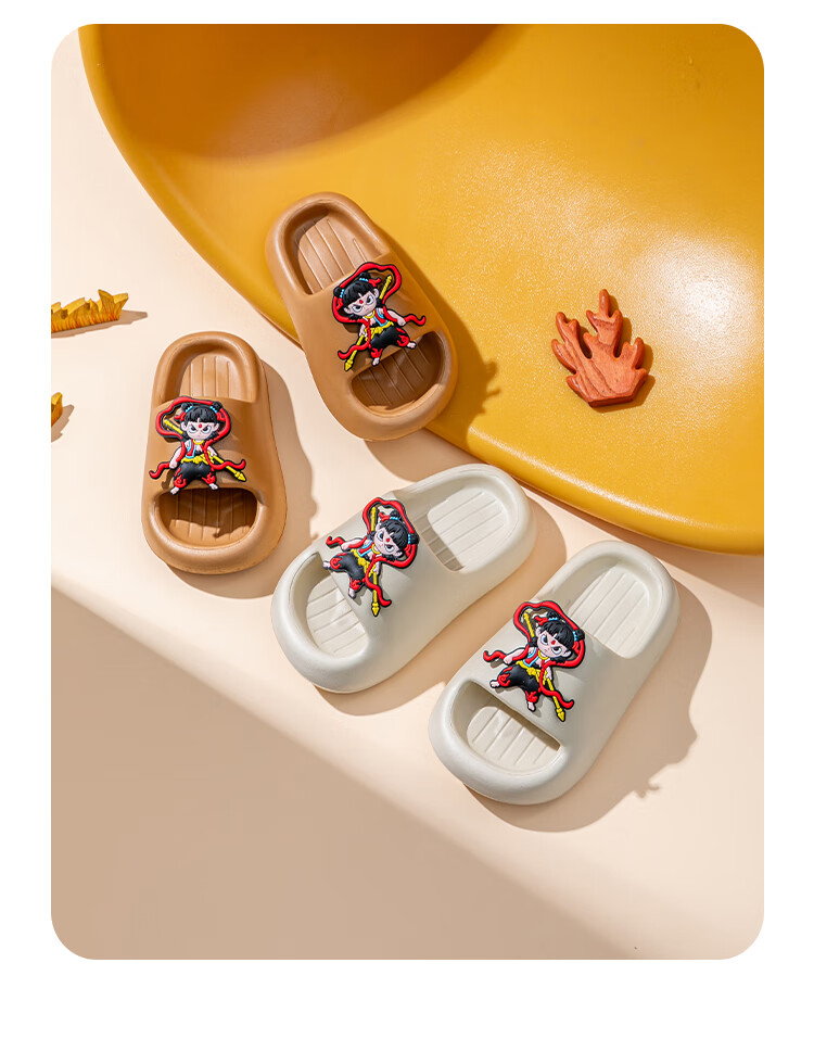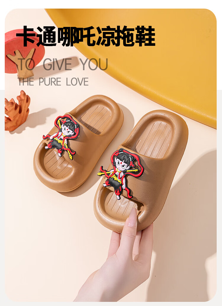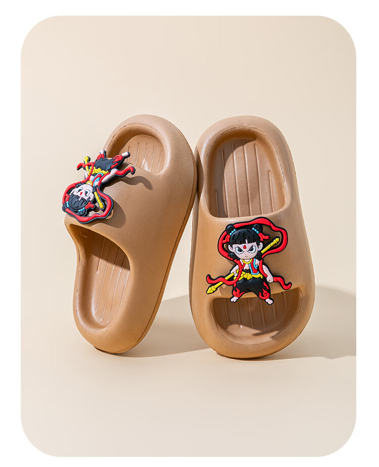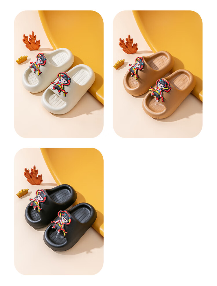 Nezha EVA children's slippers for boys and girls in summer cartoon bathing home bathroom non-slip outdoor baby sandals EVA environmentally friendly soft upgraded version Khaki 36 inner length 20.5cm/small size
