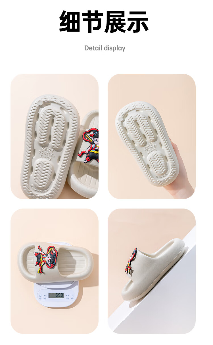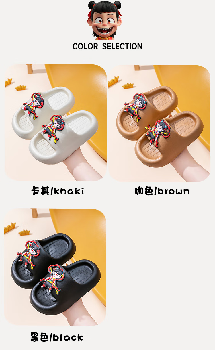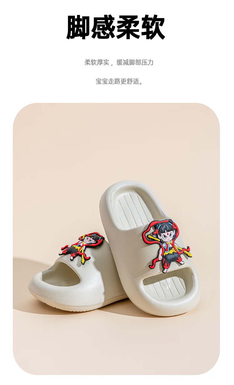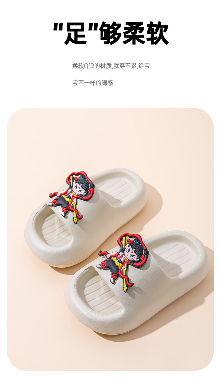 Nezha EVA children's slippers for boys and girls in summer cartoon bathing home bathroom non-slip outdoor baby sandals EVA environmentally friendly soft upgraded version Khaki 36 inner length 20.5cm/small size