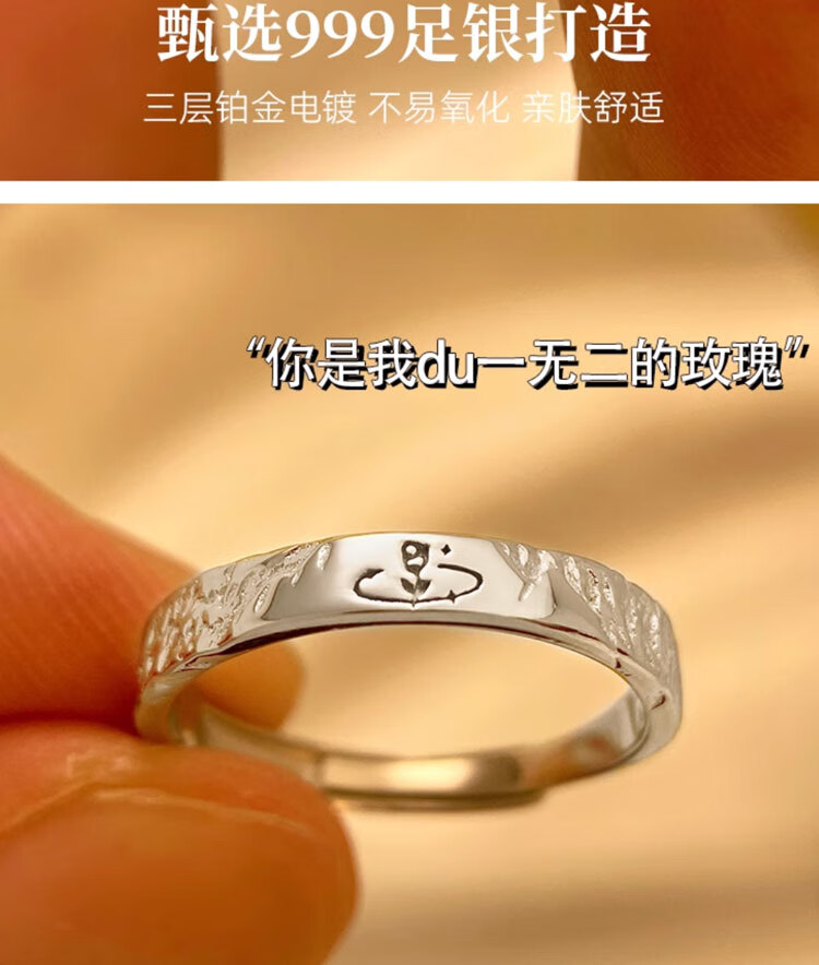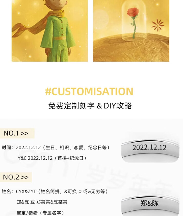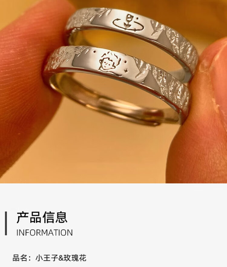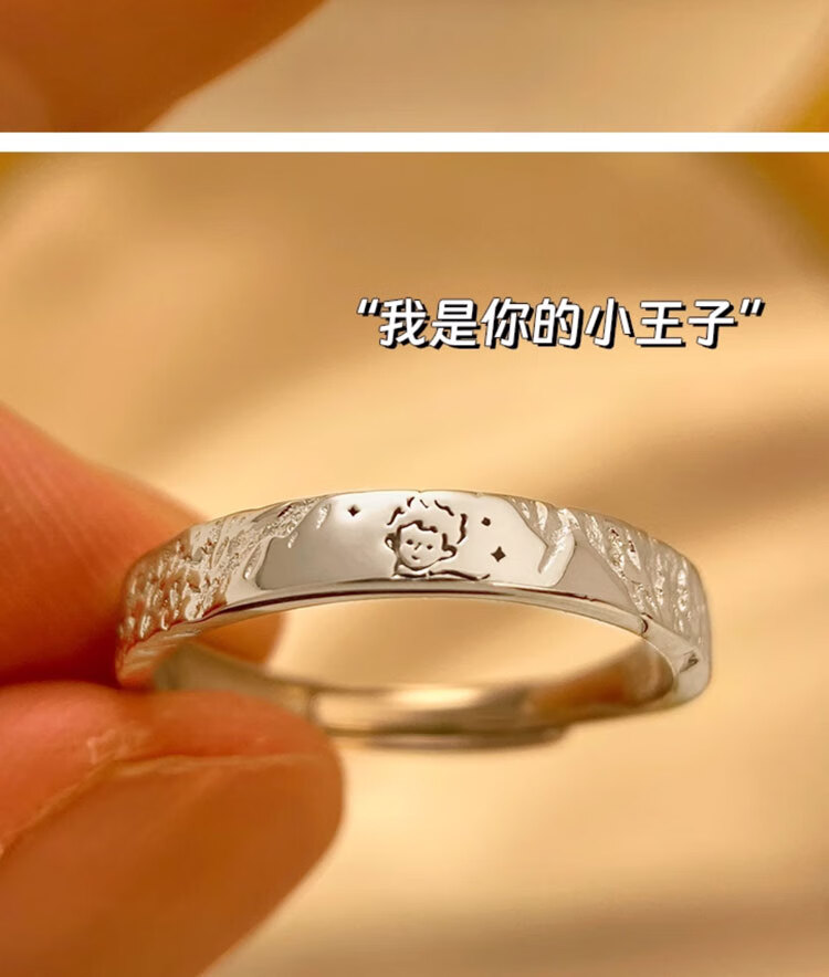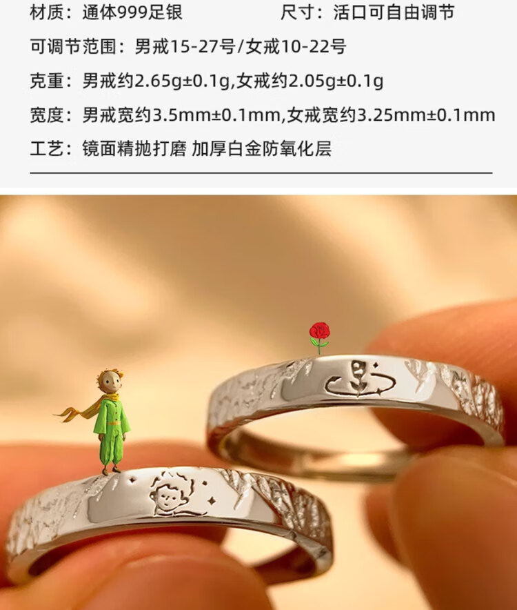 Mansheng Little Prince and Rose 999 sterling silver pair of rings for men and women, birthday and Valentine's Day gifts for girlfriend, couple, exquisite gift box