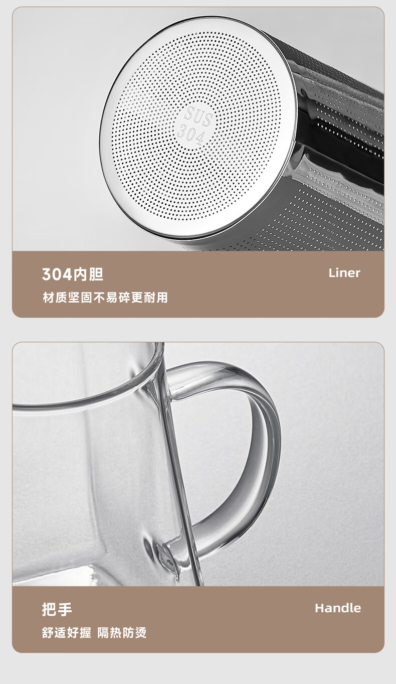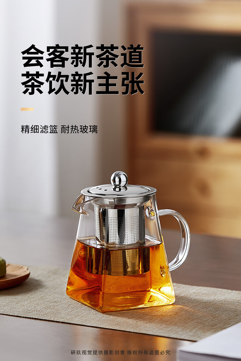 YIHUTEA glass teapot thickened high temperature resistant household stainless steel gallbladder teapot scented tea heatable teapot tea set 304 stainless steel liner teapot 500ml