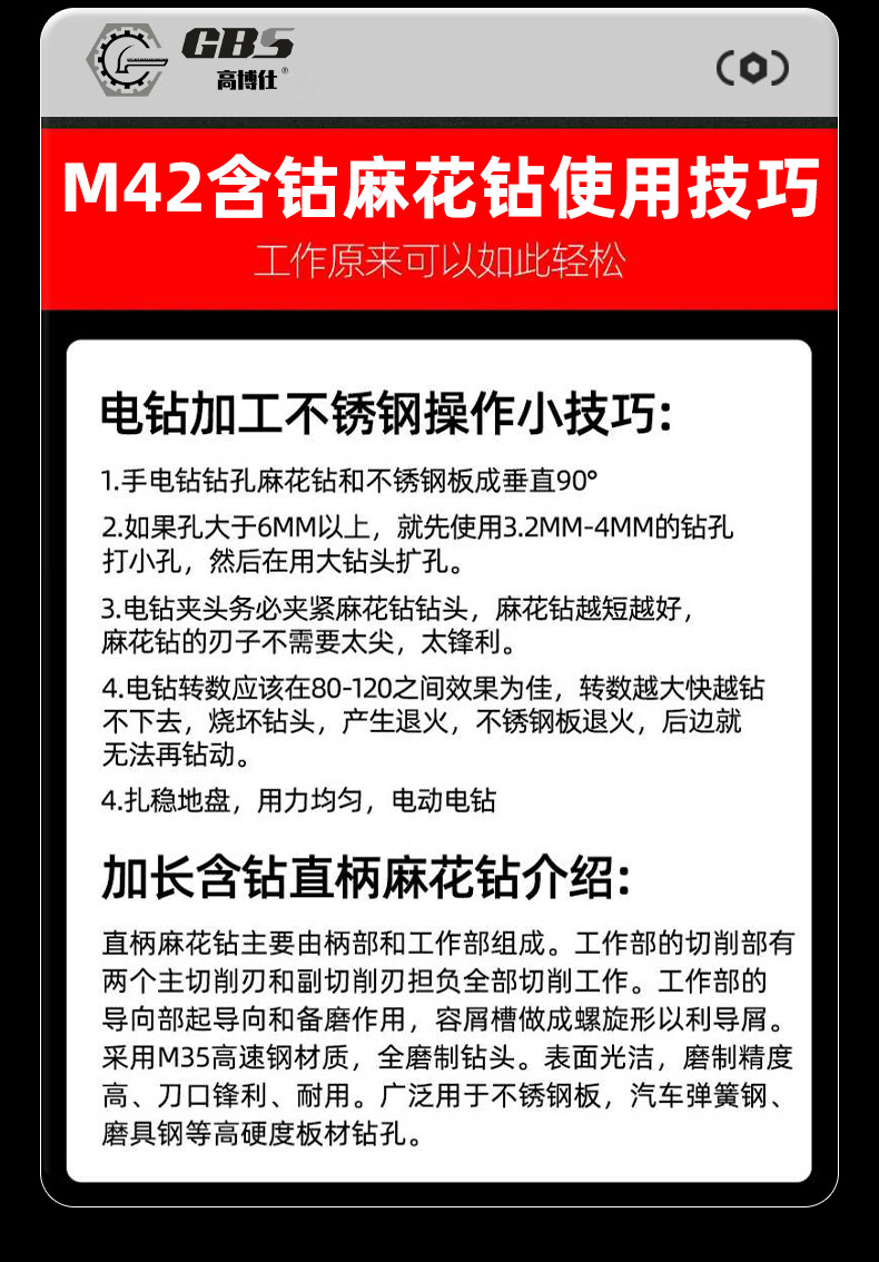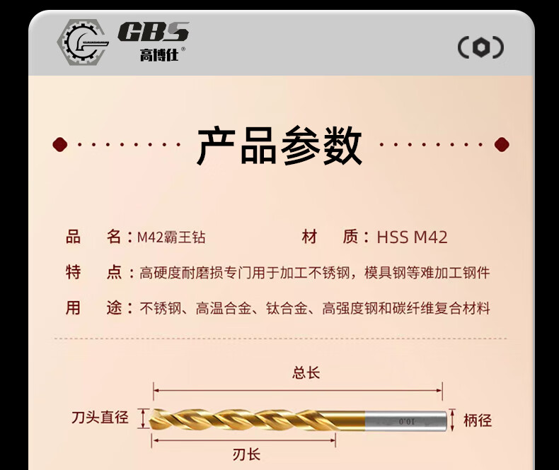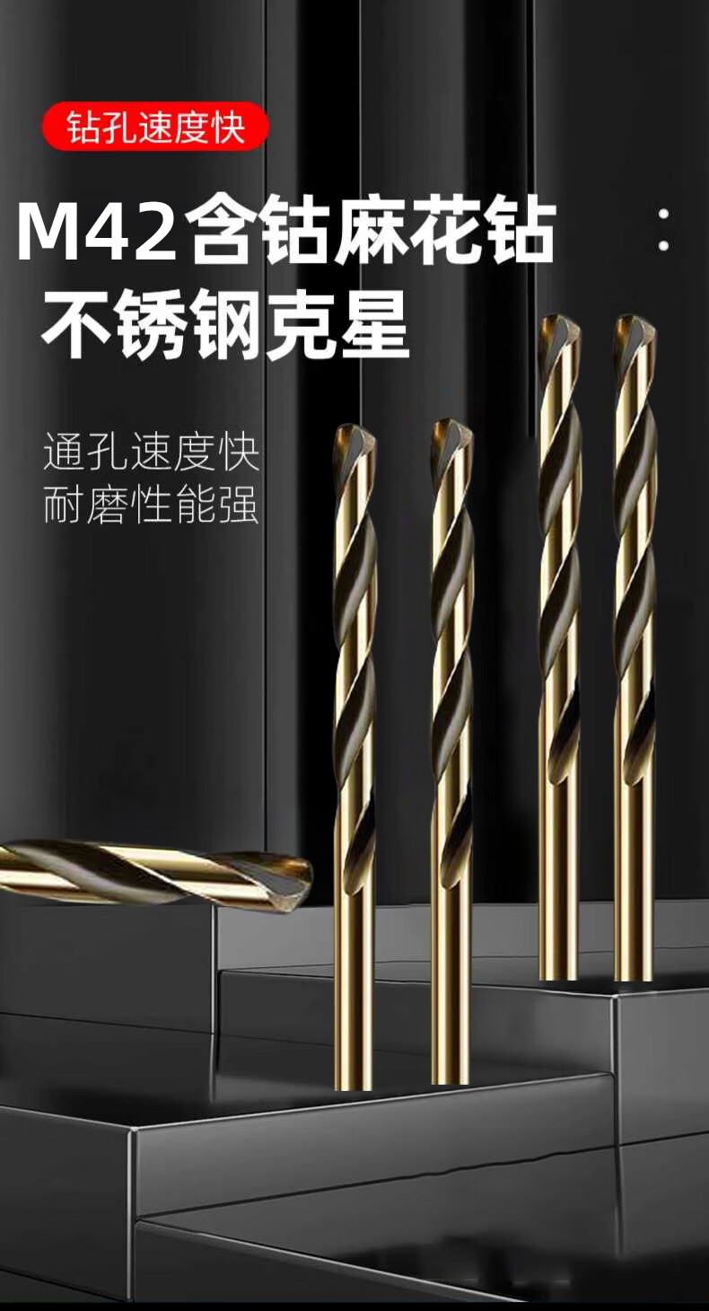 Gobos M42 high cobalt drill bit, extra hard stainless steel 304 special electric drill to punch aluminum steel plate ferroalloy set M42 aviation hard grade 4.2mm*10 pieces in box