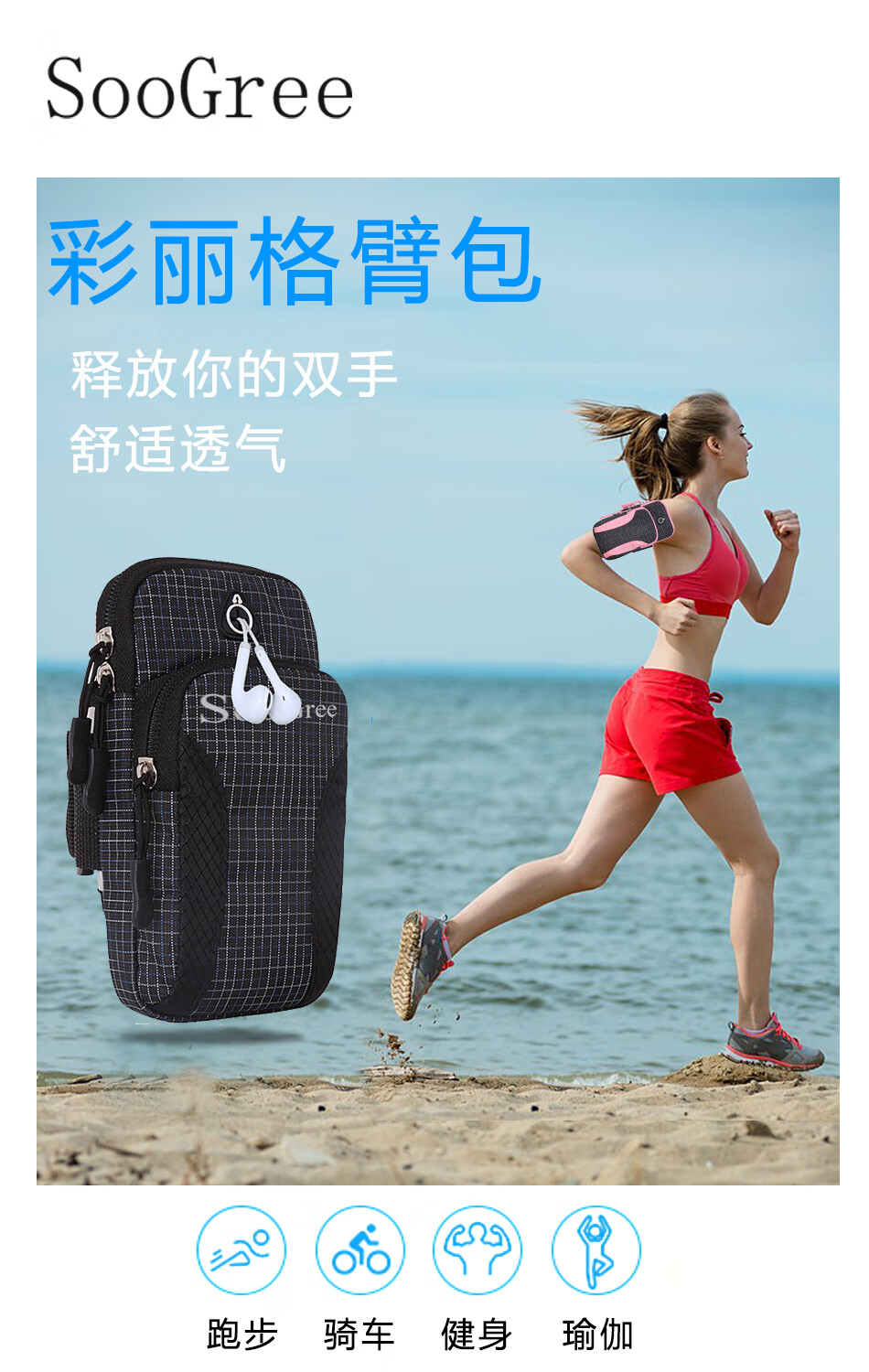 SooGree sports waist bag, running mobile phone arm bag, adjustable for men and women, outdoor cycling, waterproof, breathable, comfortable and wear-resistant GTM1085 black