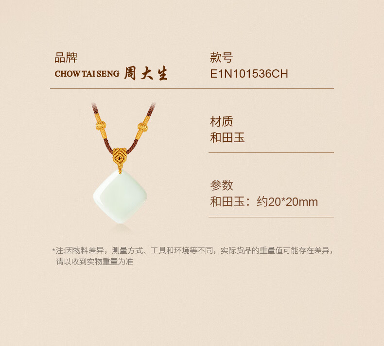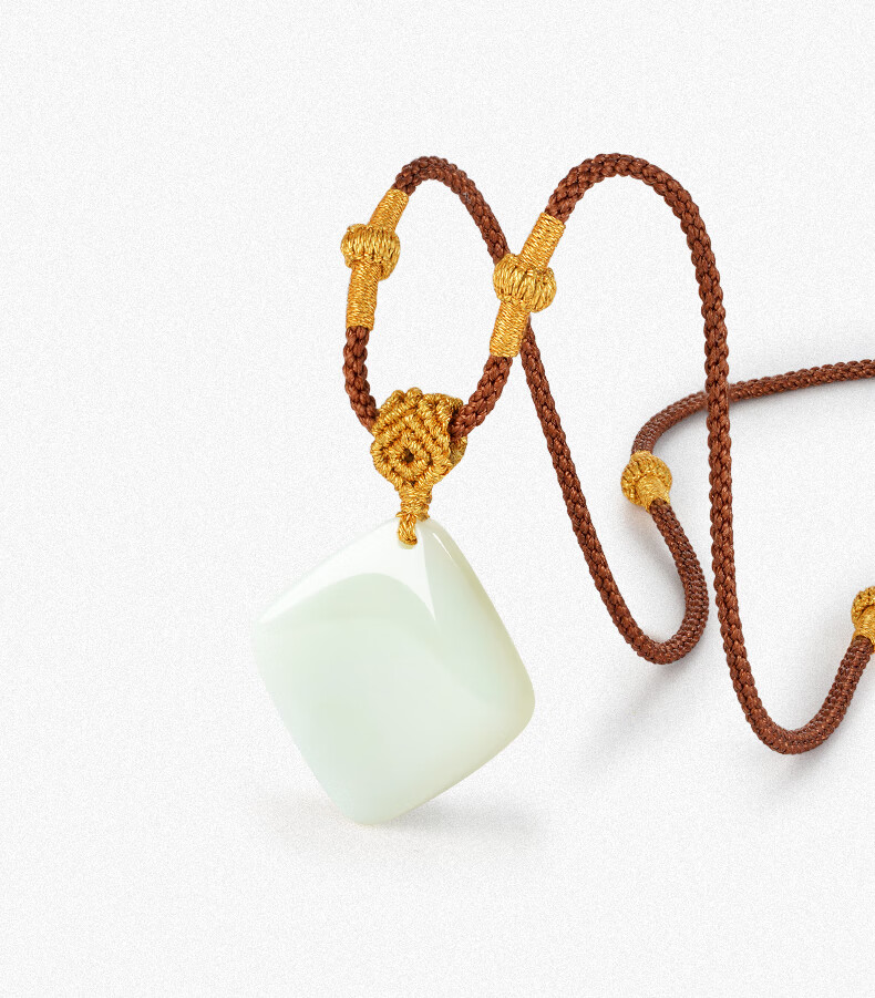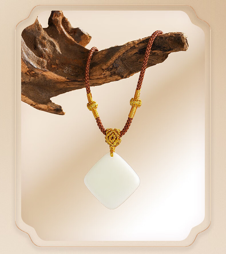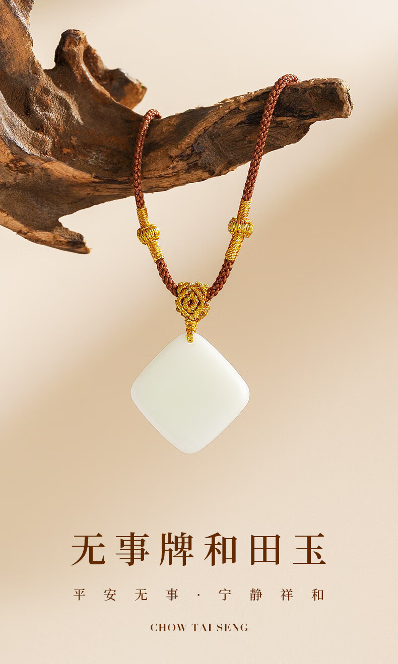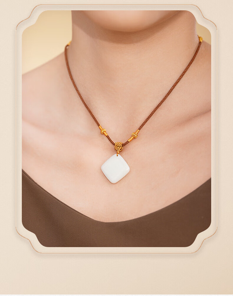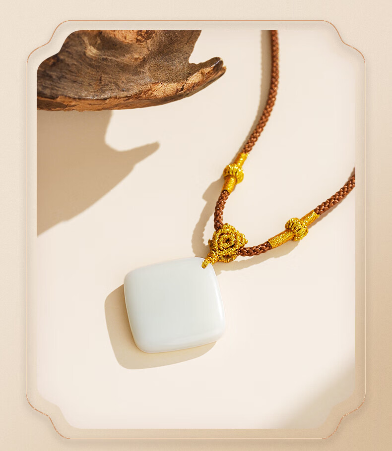 Zhou Taisheng Hetian Jade Ping An Wu Shi Brand Pendant White Jade Small Sugar Cube Hand-woven Necklace as a birthday gift for his girlfriend Hetian Jade Ping An Wu Shi Brand