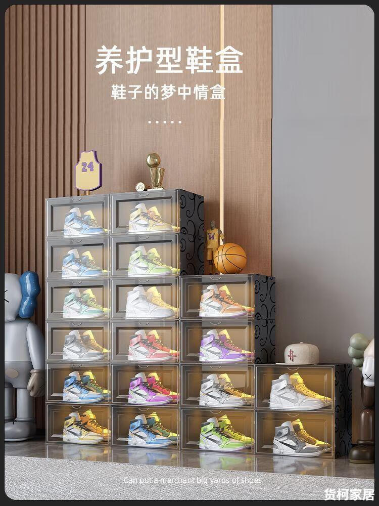 Raft core shoe cabinet transparent display cabinet side opening shoe box plastic internet celebrity shoe rack simple bedroom large capacity storage box dormitory proof transparent frame transparent model enlarged thickened side opening model 2 pcs