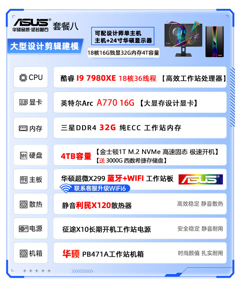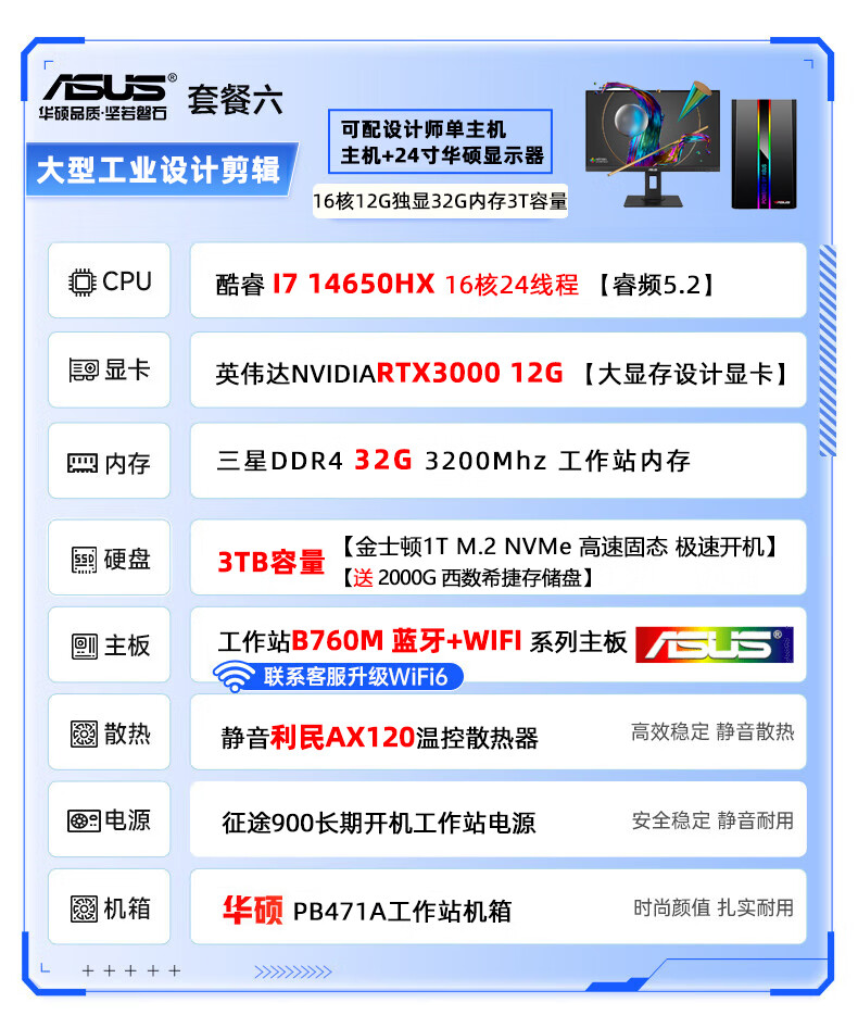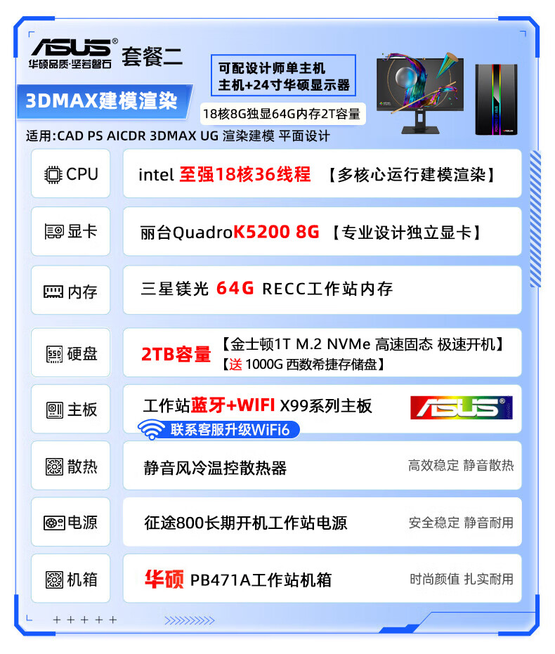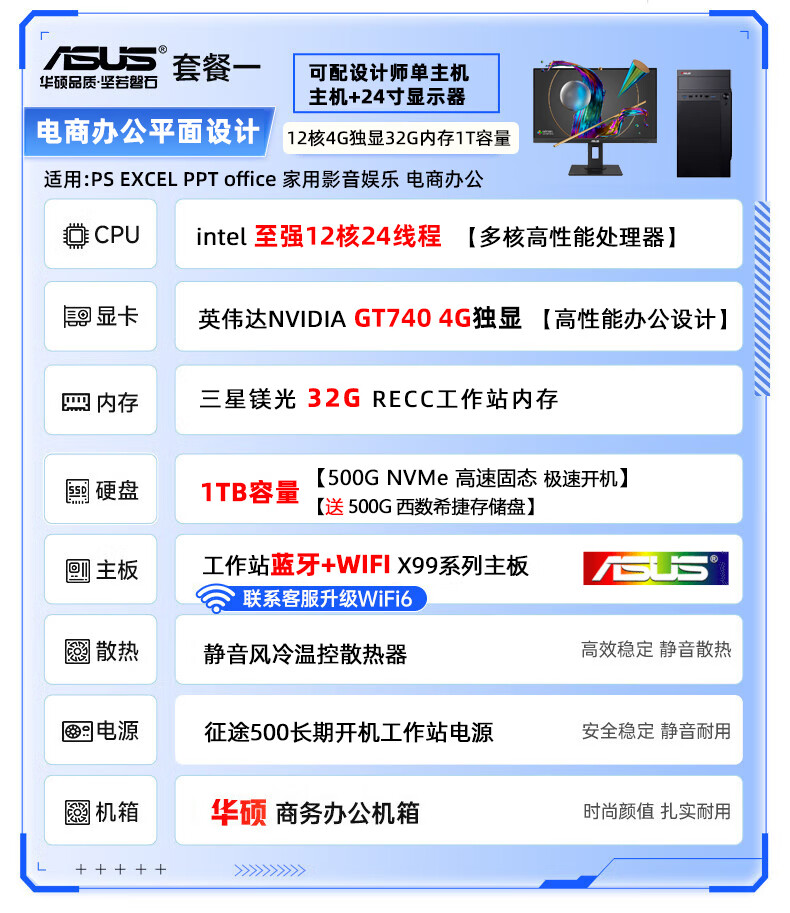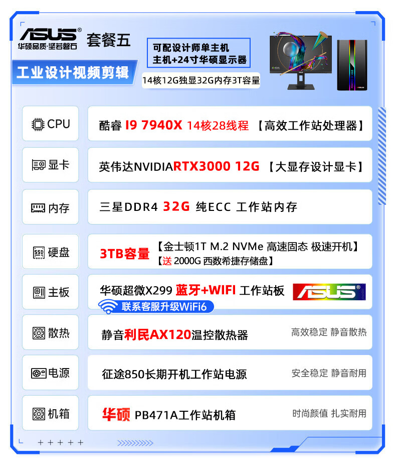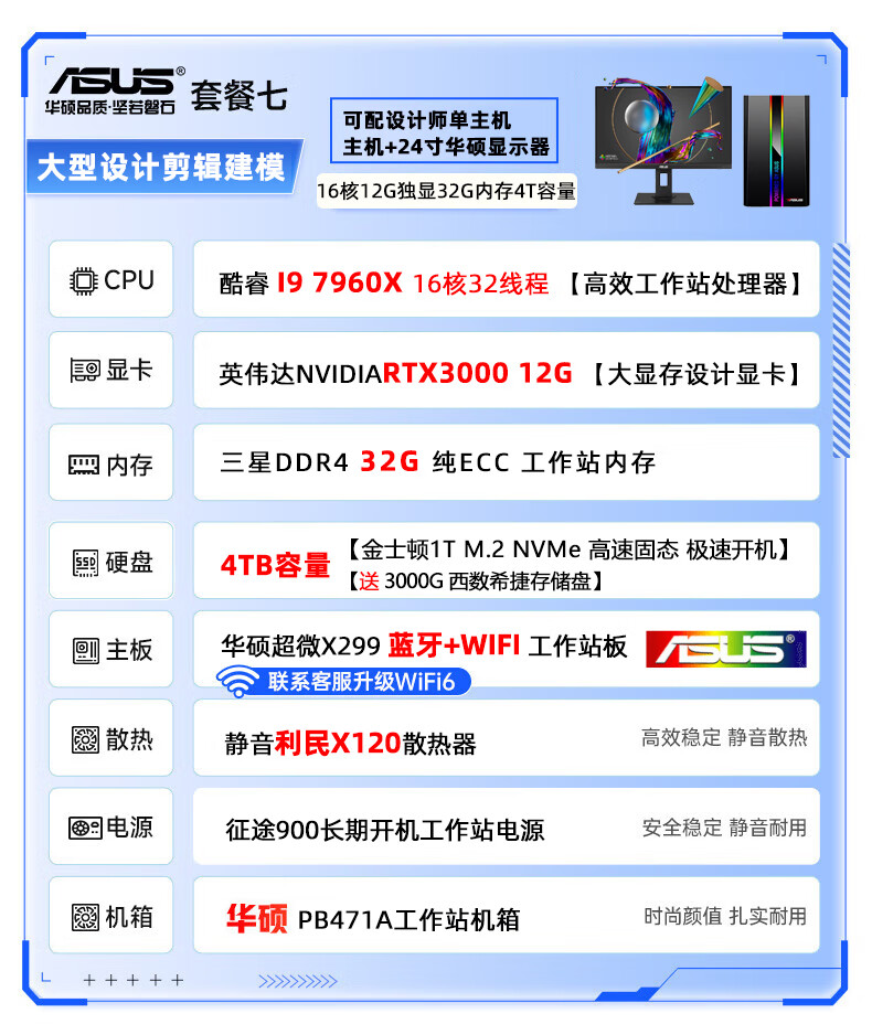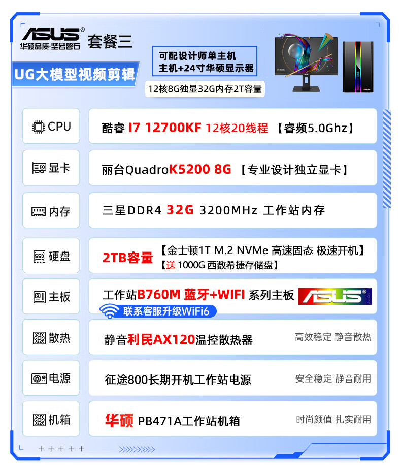 ASUS UG programming 3DMAX rendering CAD drawing PS graphic designer 3D SW drawing assembly computer desktop host full set of designer host + ASUS monitor three i7 12700KF+2T+32G+8G independent display