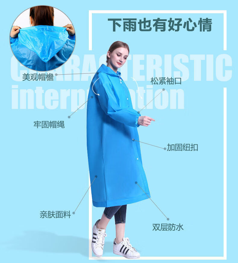 Non-disposable raincoat long breathable heavy rain men's and women's adult outdoor hiking travel portable one-piece raincoat adult raincoat blue 1 piece