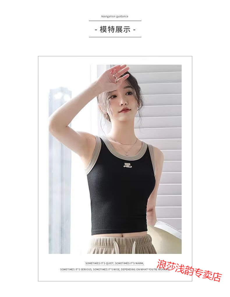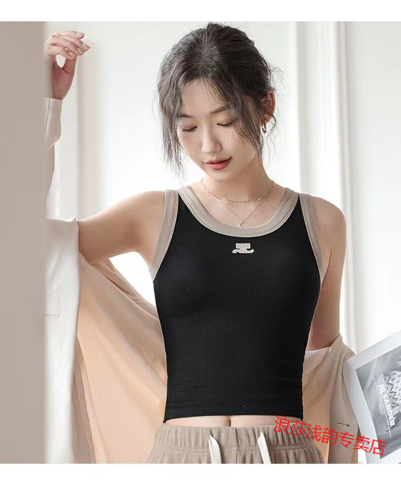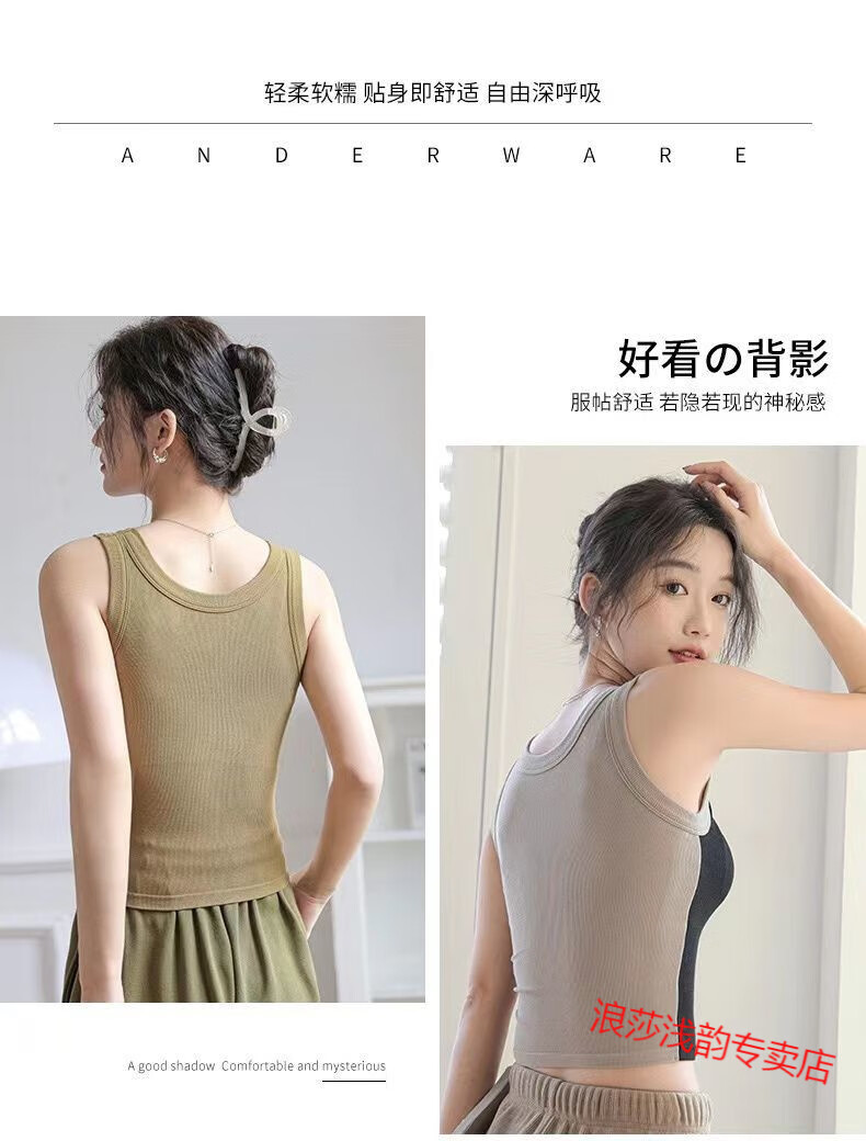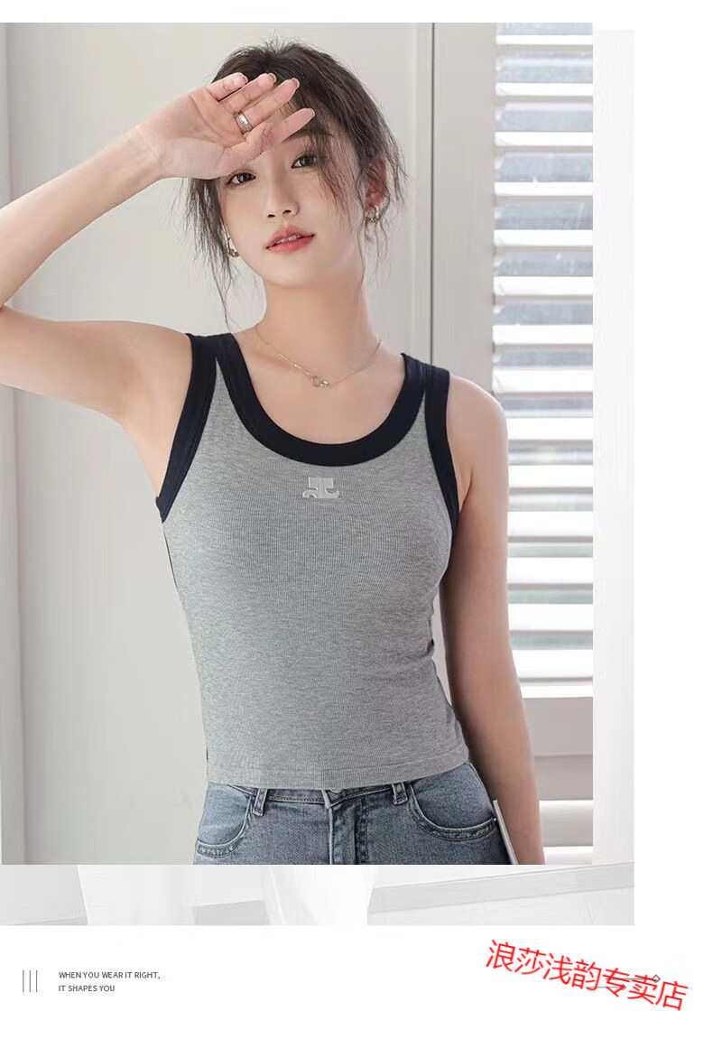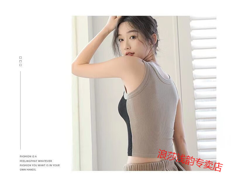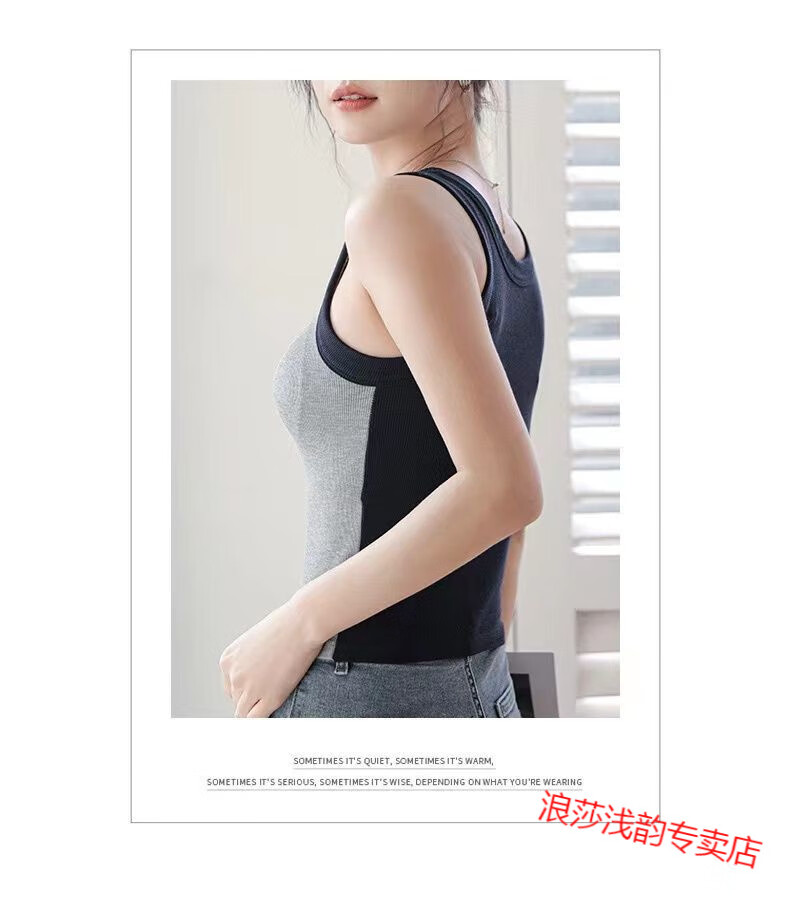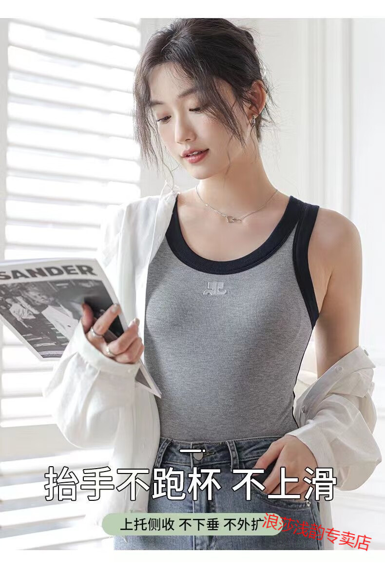 LangSha (LangSha) pure cotton with chest pad all-in-one color-blocking vest suspender, versatile summer women's inner wear and outer wear bottoming top, gray fixed one-piece cup L 110-140Jin Jin equals 0.5 kg