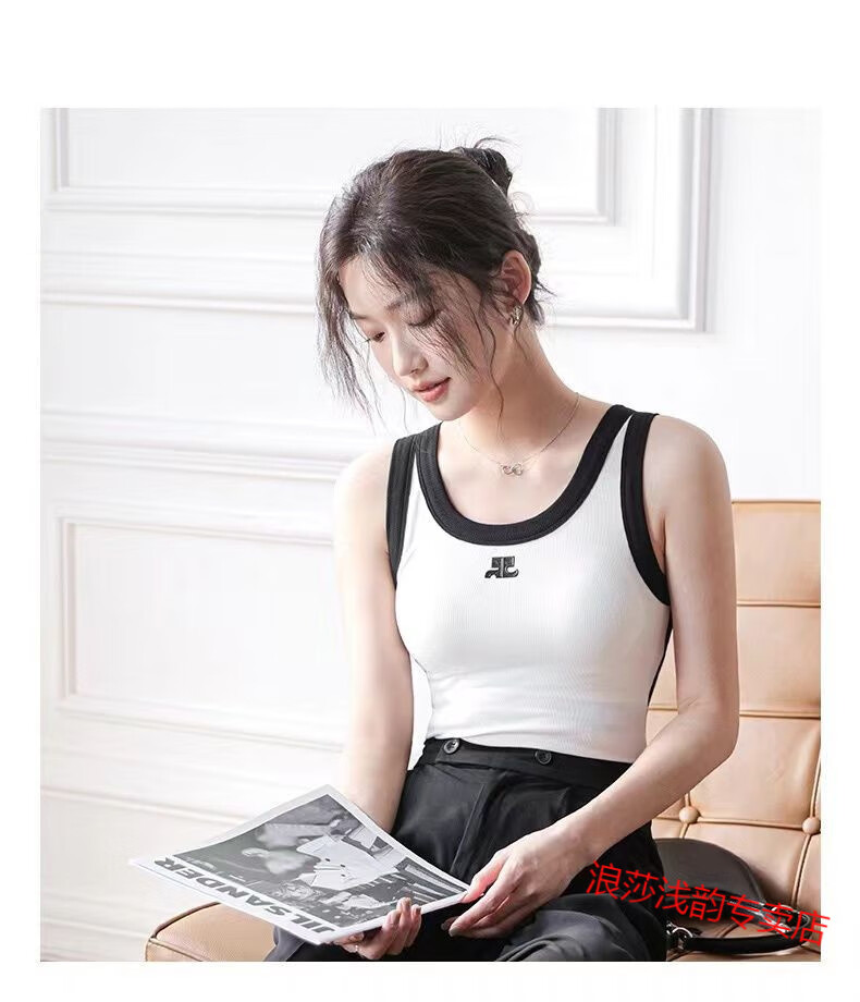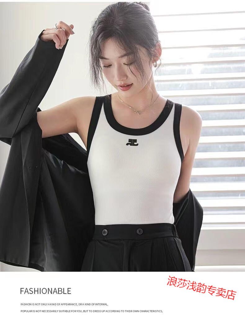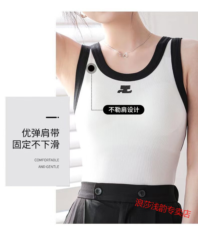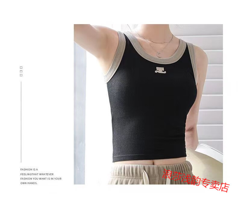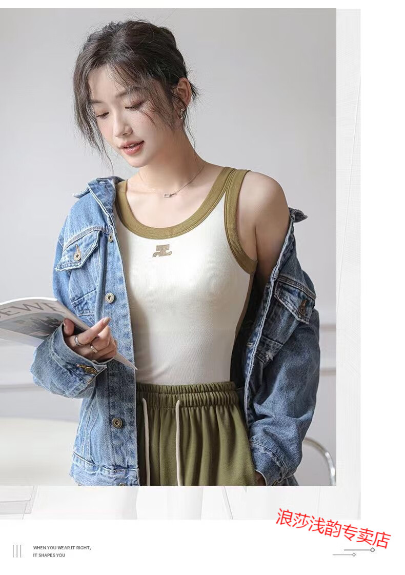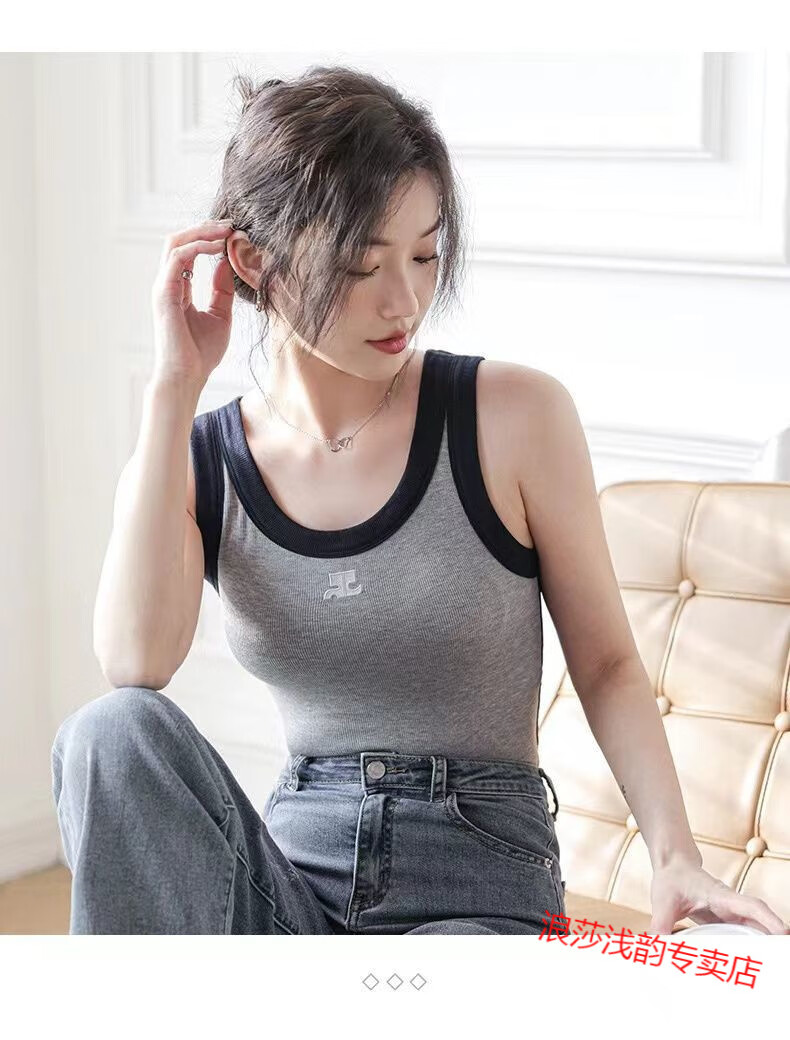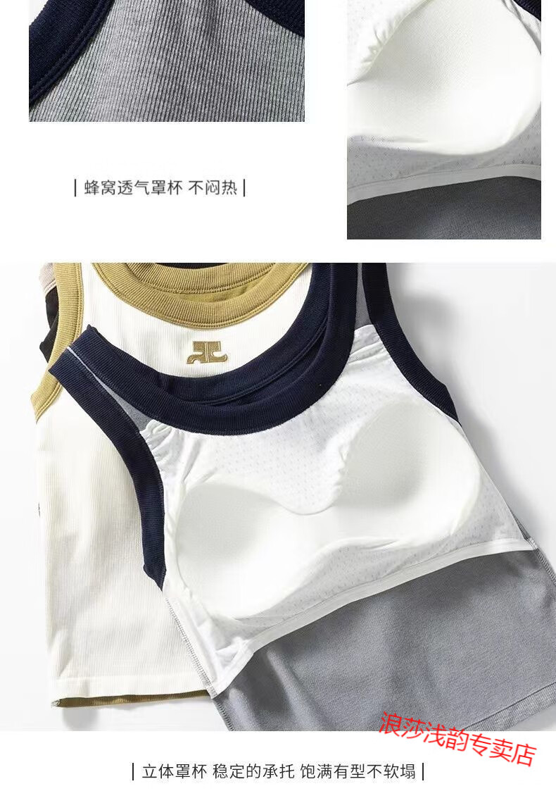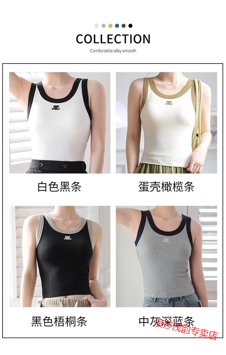 LangSha (LangSha) pure cotton with chest pad all-in-one color-blocking vest suspender, versatile summer women's inner wear and outer wear bottoming top, gray fixed one-piece cup L 110-140Jin Jin equals 0.5 kg