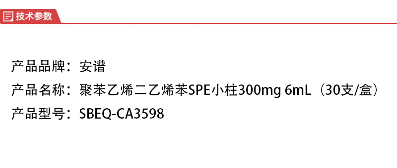 Anpu Laboratory Reagent Polystyrene Divinyl Benzene SPE Cartridge 300mg 6mL (30 pieces/box) SBEQ-CA3598
