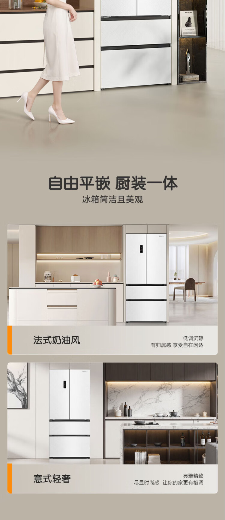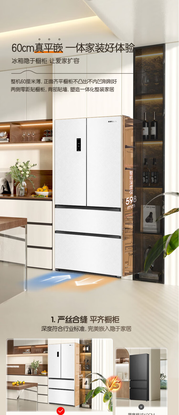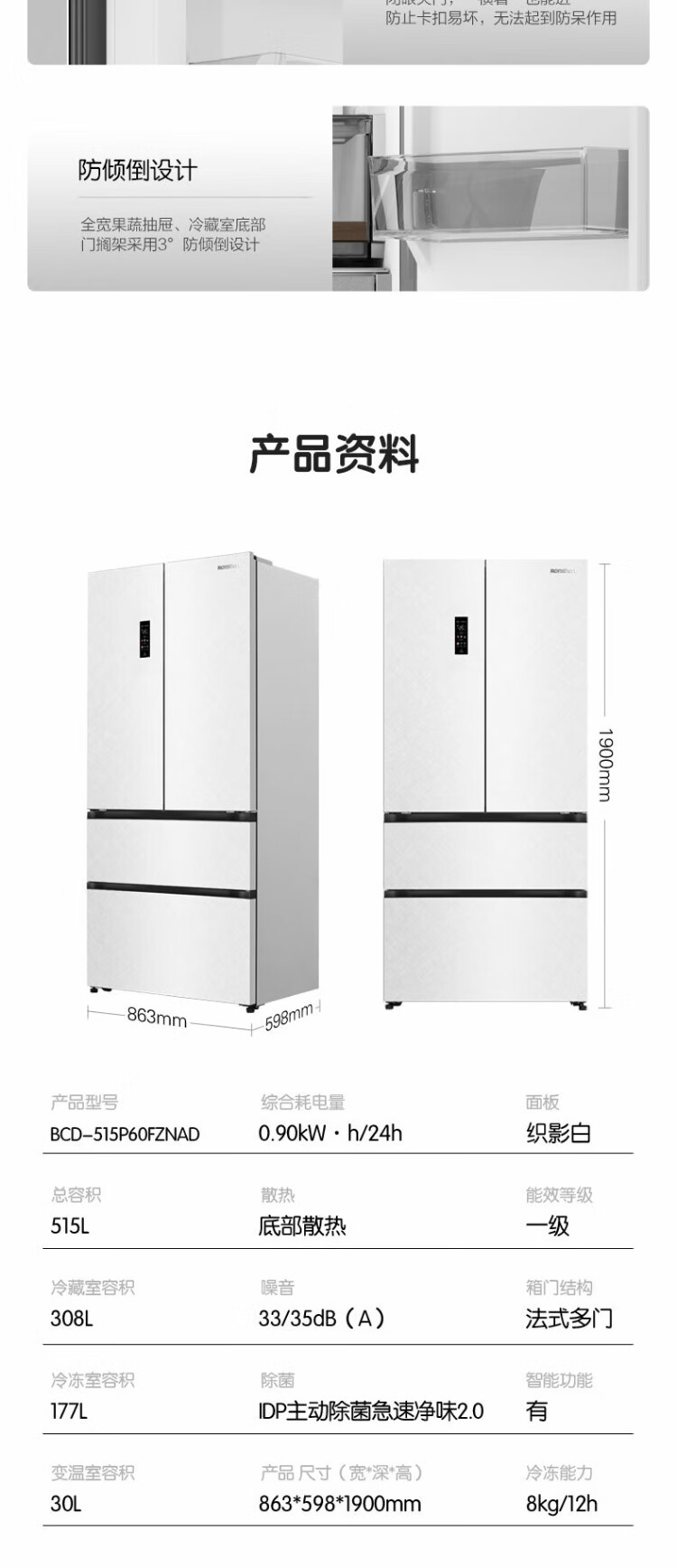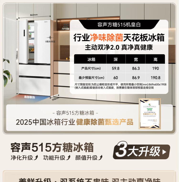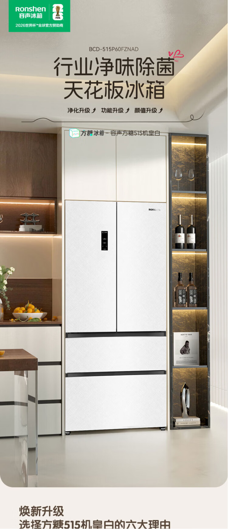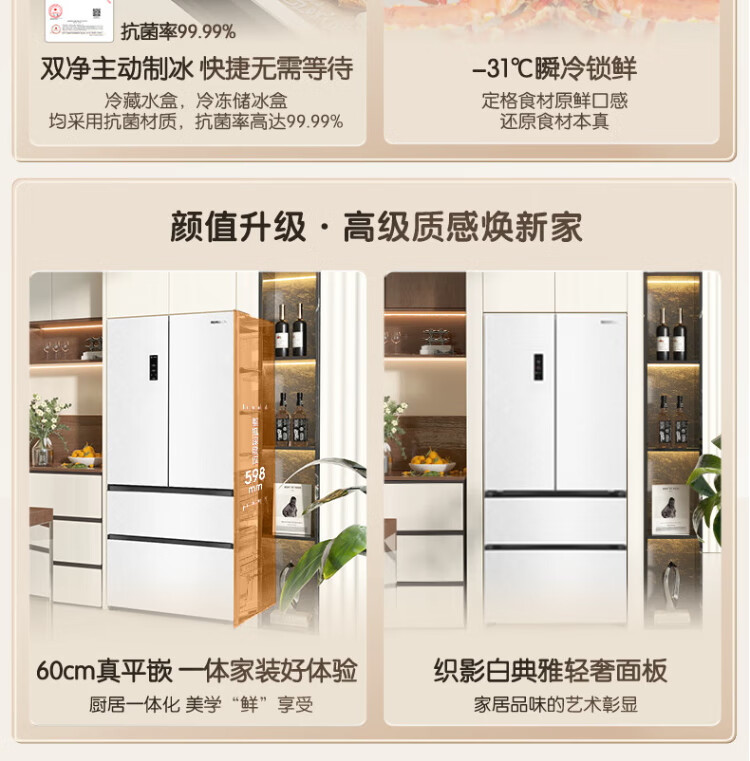 Rongsheng Cube Sugar 515L French-style multi-door refrigerator dual-system ultra-thin zero-embedded first-class energy efficiency automatic ice making World Cup customized refrigerator national subsidy BCD-515P60FZNAD Weaver White