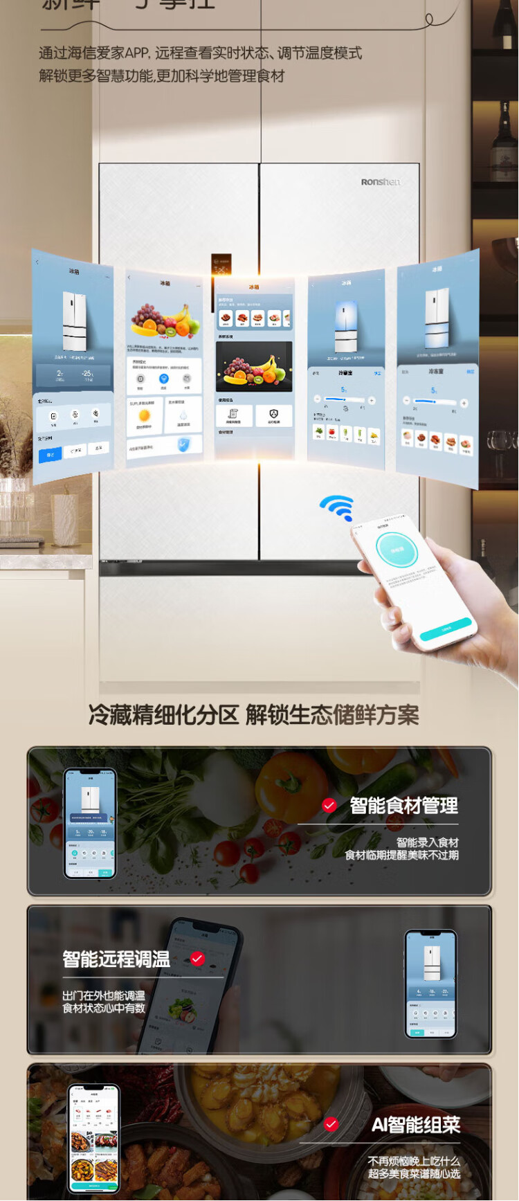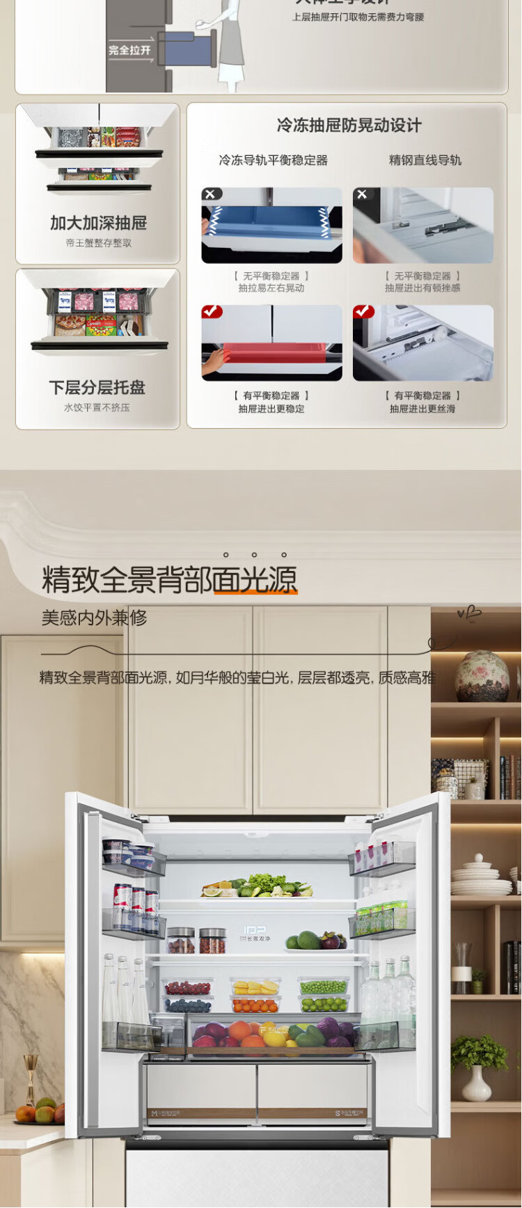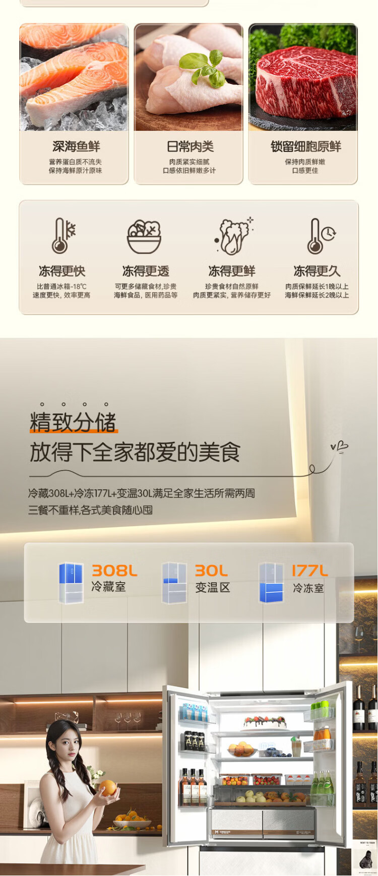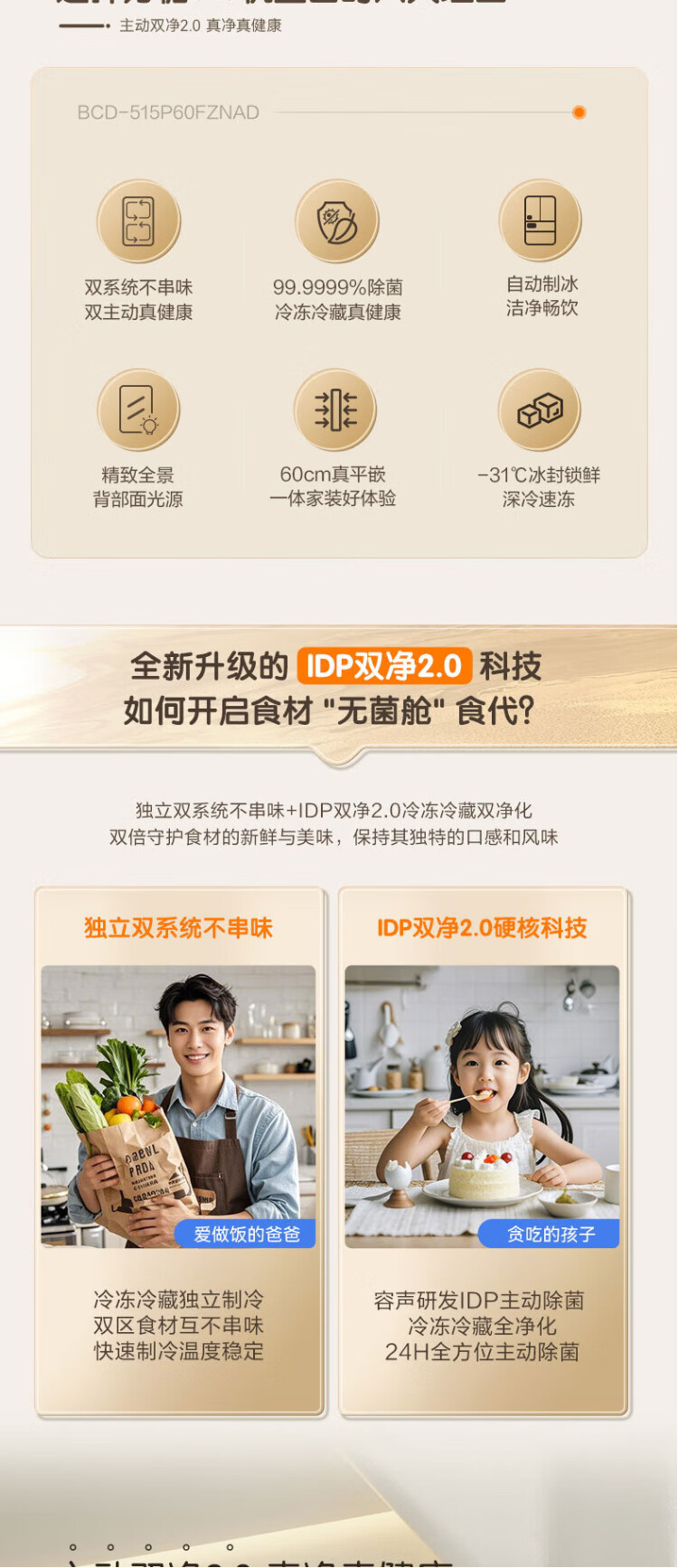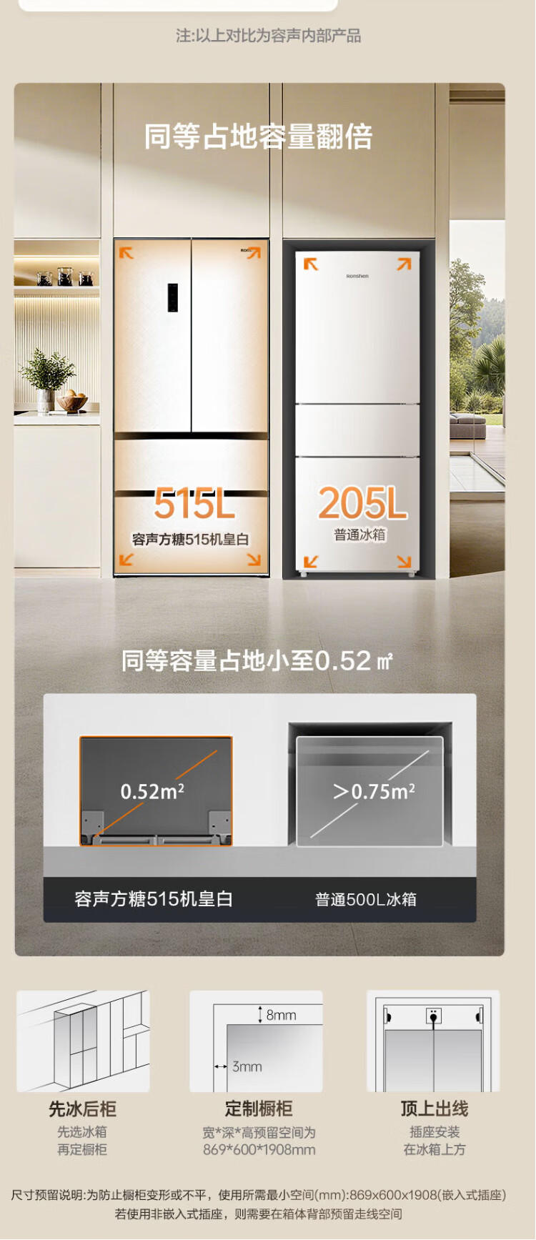 Rongsheng Cube Sugar 515L French-style multi-door refrigerator dual-system ultra-thin zero-embedded first-class energy efficiency automatic ice making World Cup customized refrigerator national subsidy BCD-515P60FZNAD Weaver White