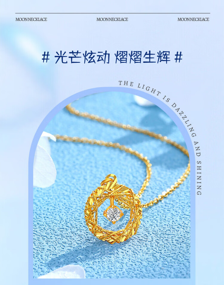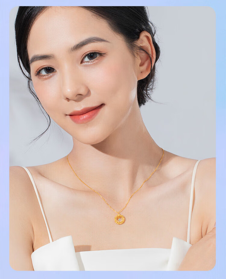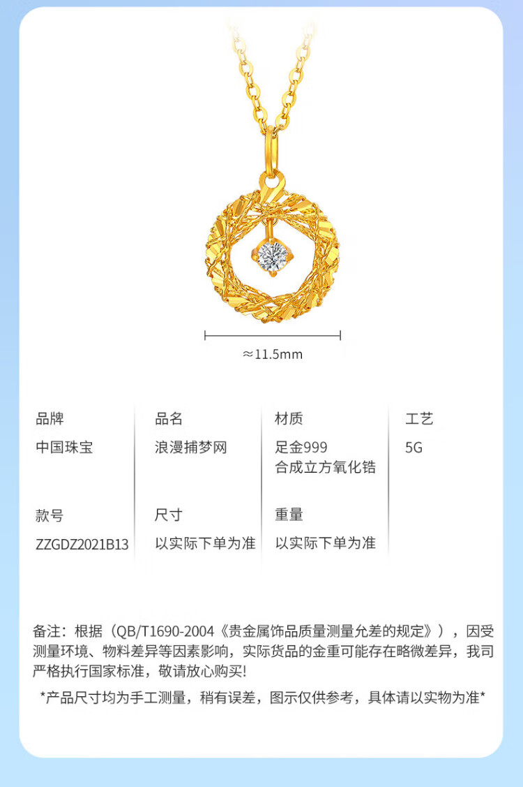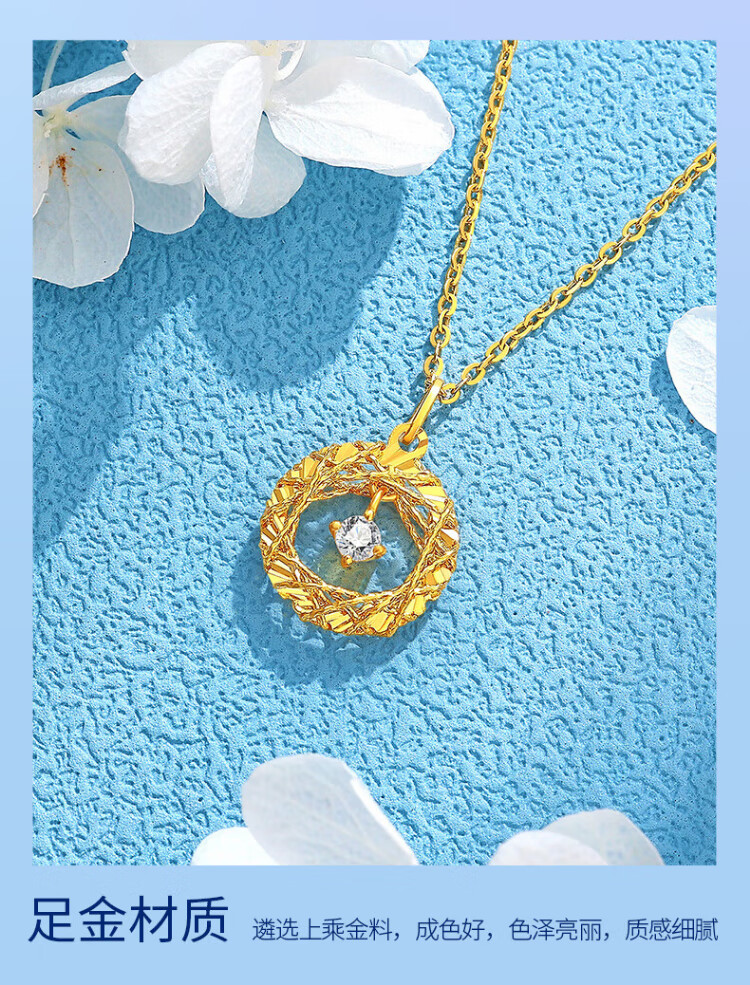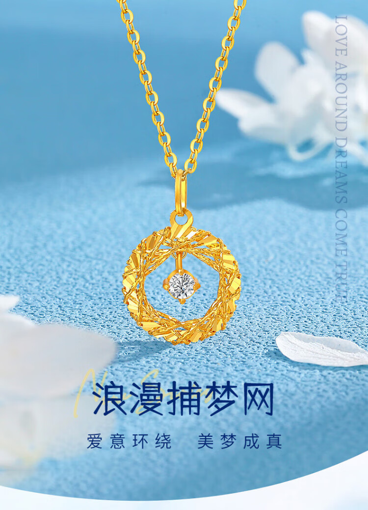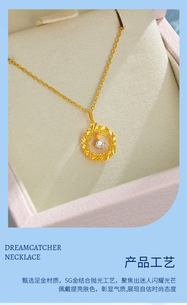 Chinese Jewelry Gold Necklace Women's Moebius Dream Weaver Pure Gold 999 Pendant Set Chain Dream Catcher Birthday Gift for Girlfriend About 0.90g Rose Gift Box