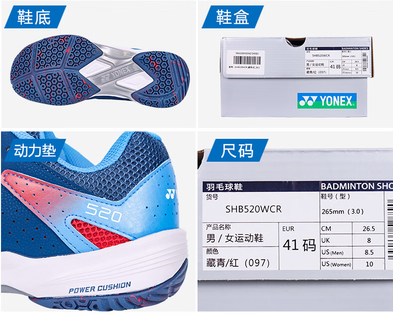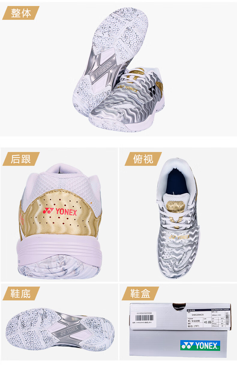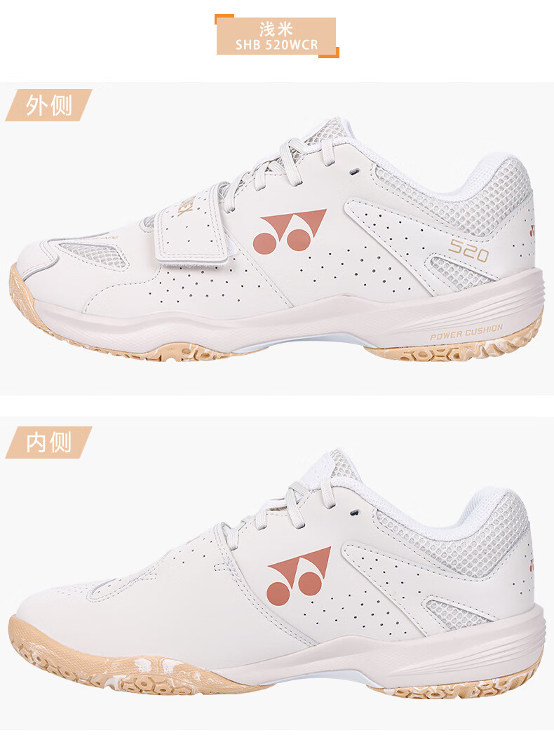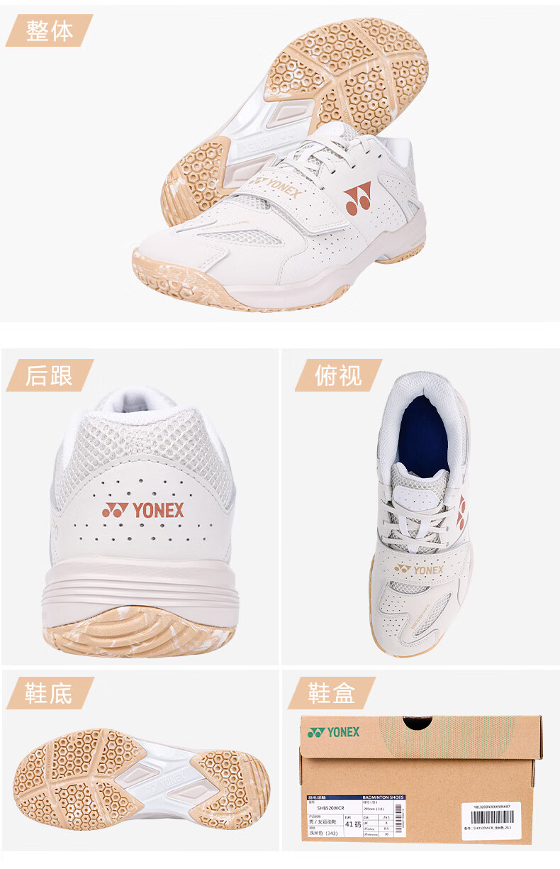 Yonex's new YONEX YY badminton shoes SHB520WCR men's and women's professional sports shoes training SHB520WCR light beige 41 (265mm)