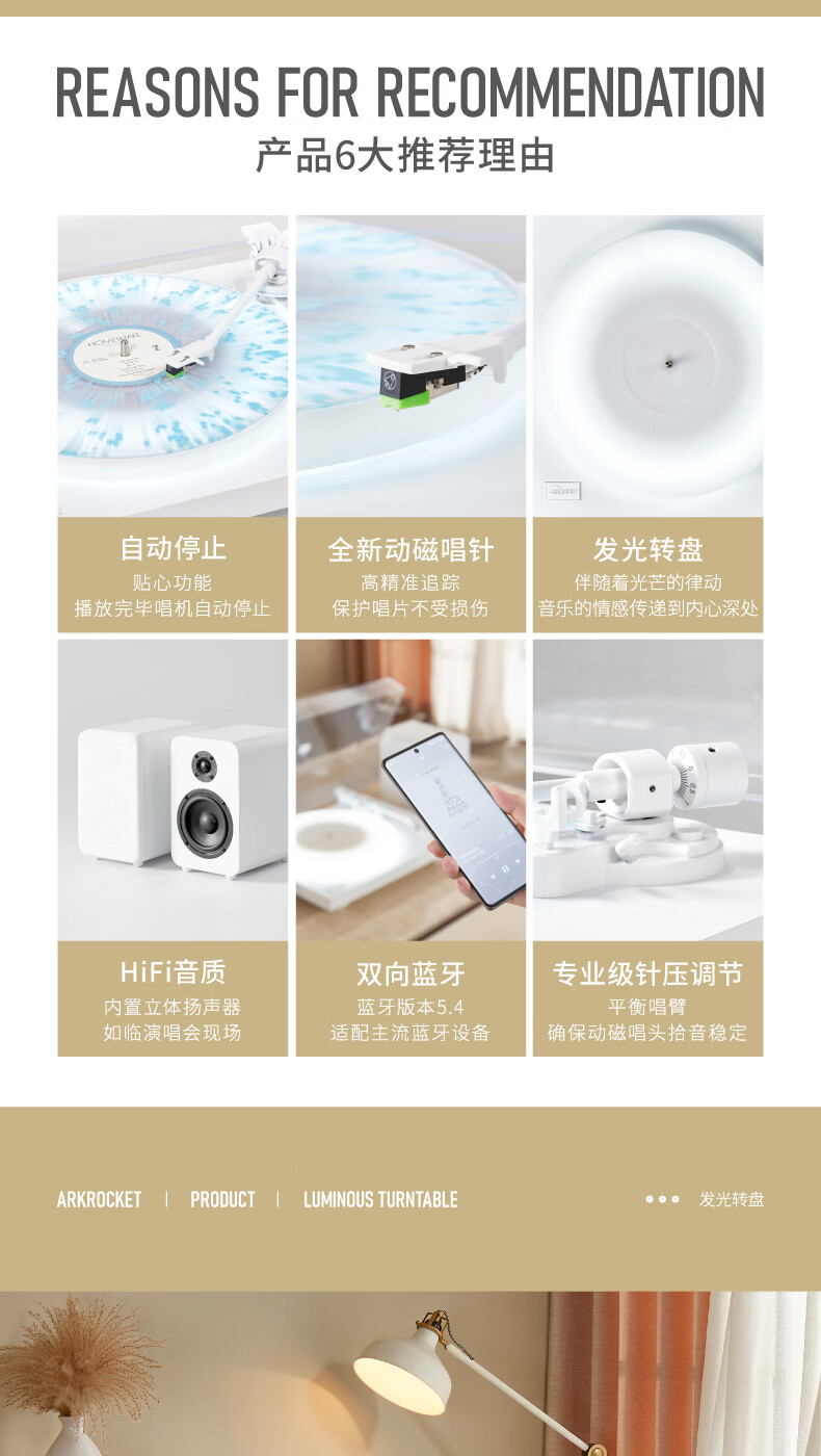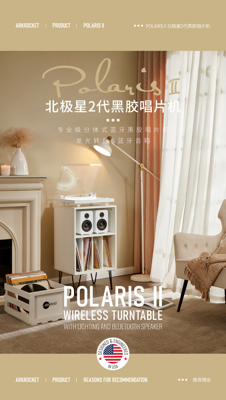 ARKROCKET retro vinyl record player Polaris Polaris second generation luminous turntable split lp gramophone Bluetooth audio living room ornaments Chinese Valentine's Day birthday gift Polaris set (including audio)