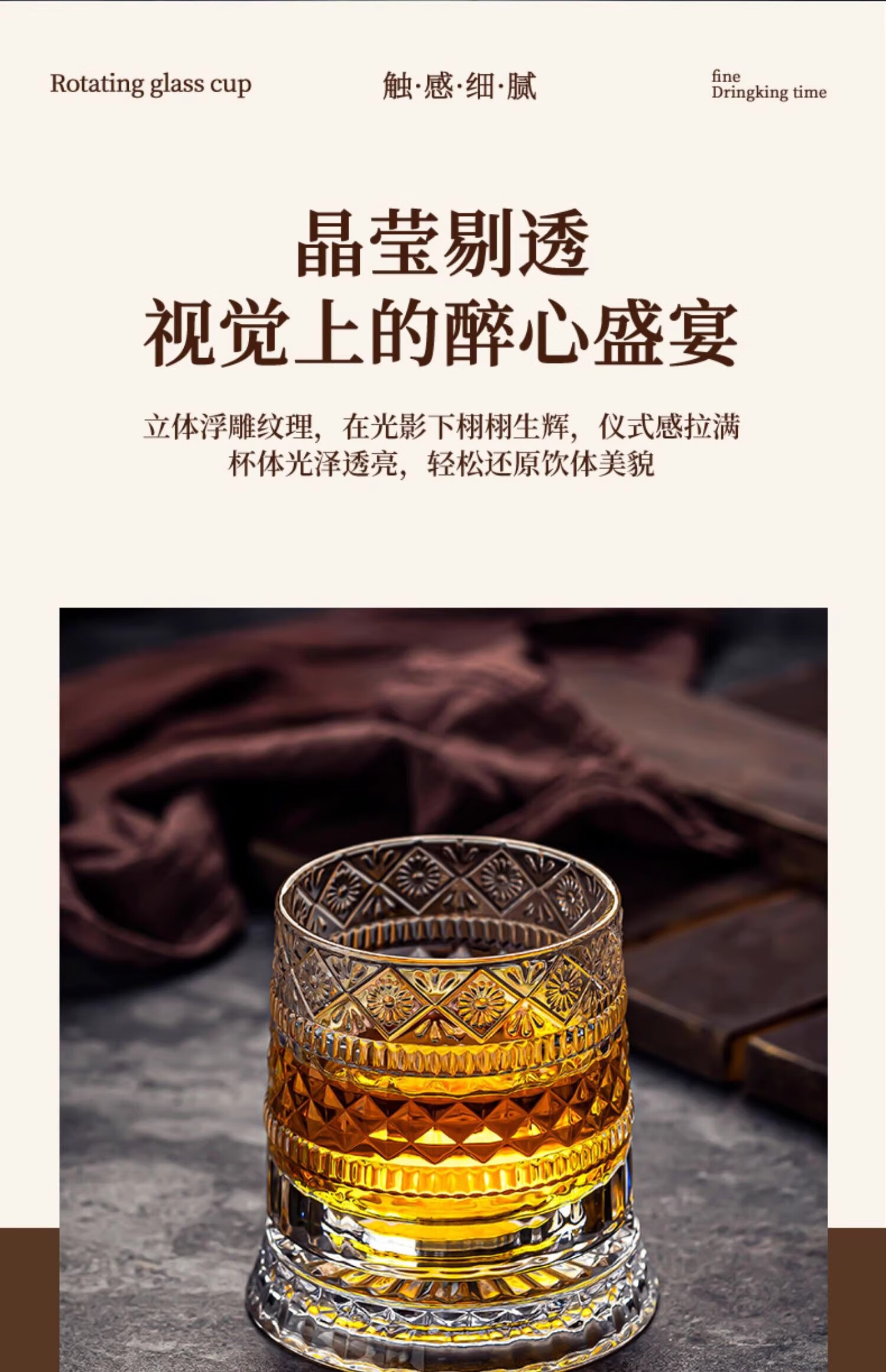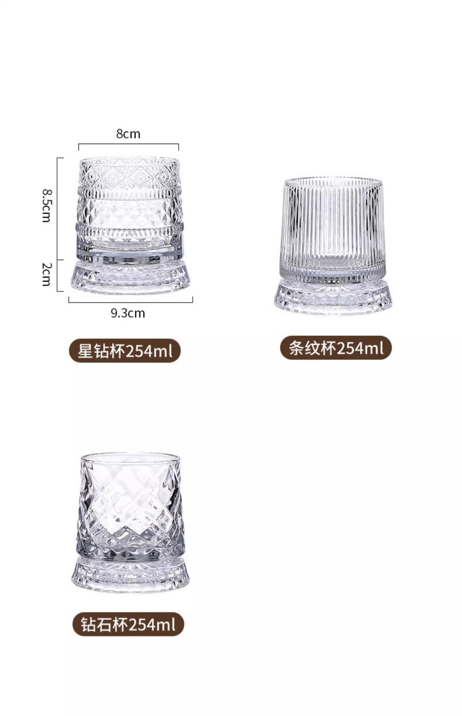 Depinte decompression fun luminous rotating whiskey cup foreign wine rotating cup crystal glass household beer glass water cup star diamond cup 254ml 1 piece