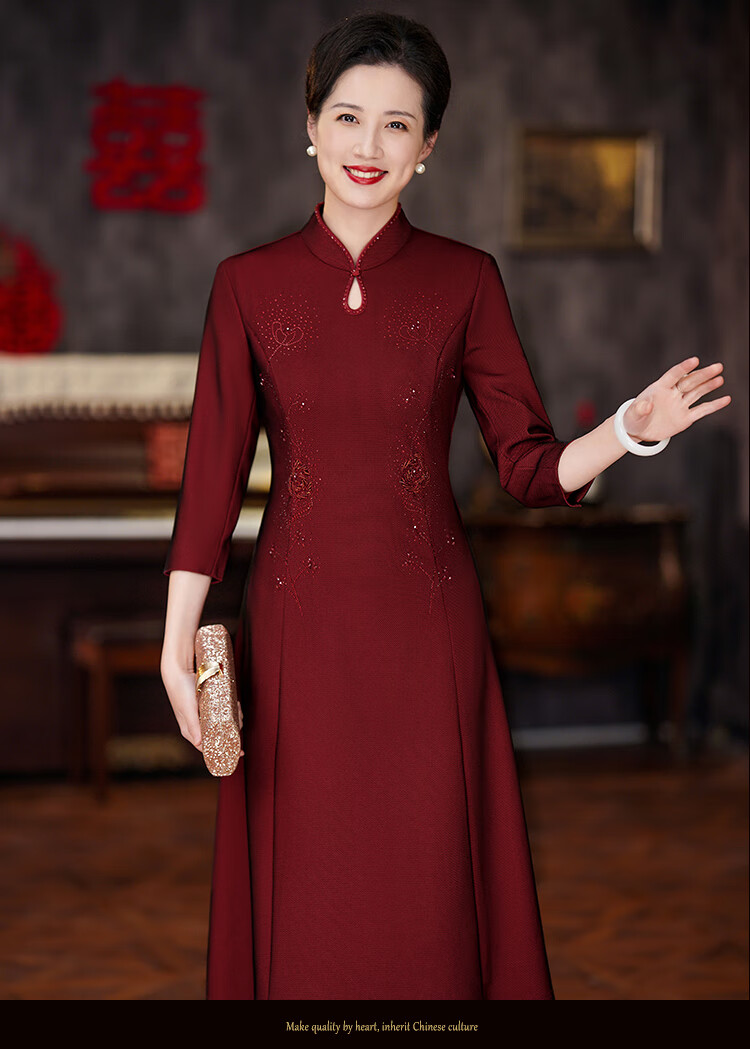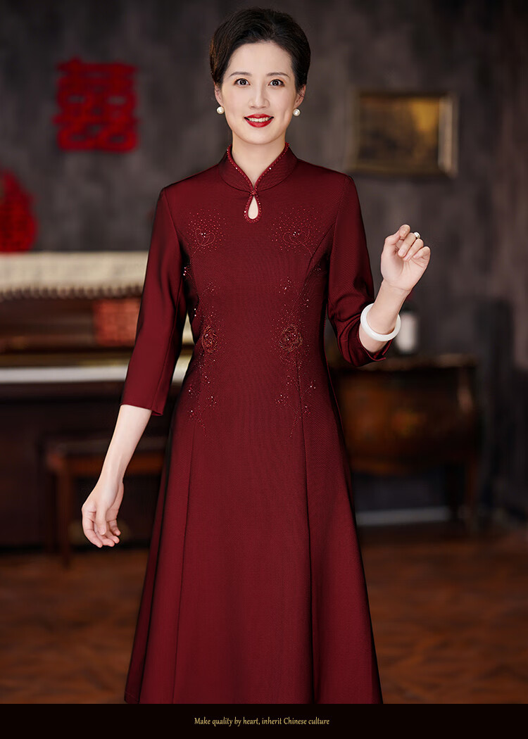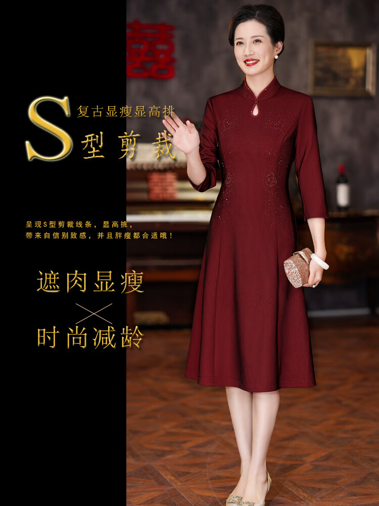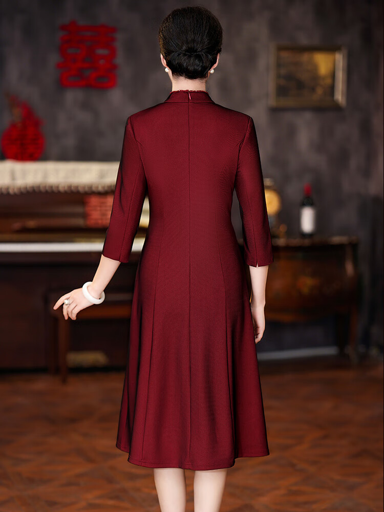 The festive suit worn by the mother on the day of departure for her son’s wedding. The wedding dress for the mother-in-law can be worn at ordinary times. The new style of the mother’s wedding dress. Burgundy 2XL (120-130 Jin Jin is equal to 0.5 kg) One size fits all