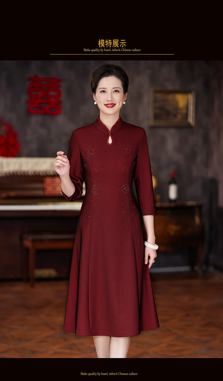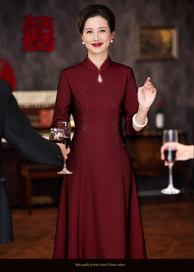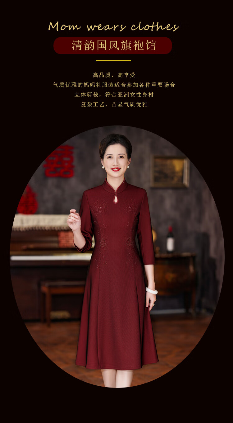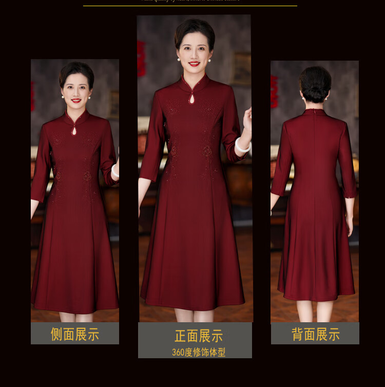 The festive suit worn by the mother on the day of departure for her son’s wedding. The wedding dress for the mother-in-law can be worn at ordinary times. The new style of the mother’s wedding dress. Burgundy 2XL (120-130 Jin Jin is equal to 0.5 kg) One size fits all